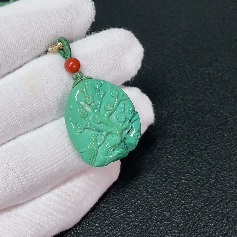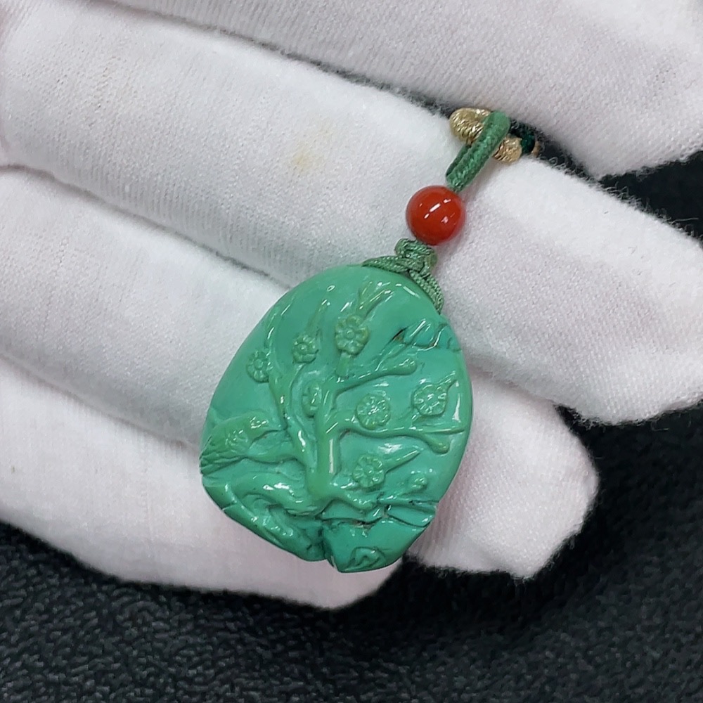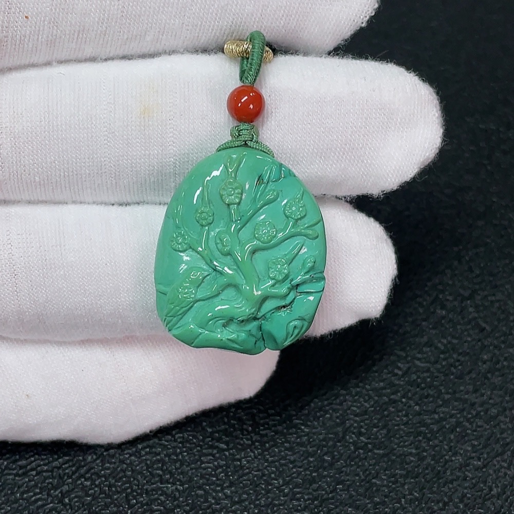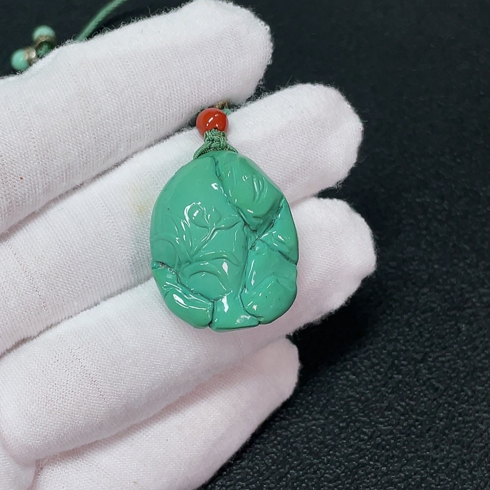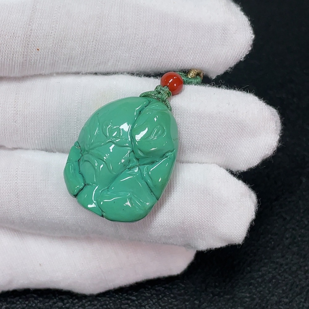 Turquoise Pendant with Southern Red Agate (Total Weight Including Rope: Approx. 11.25g)