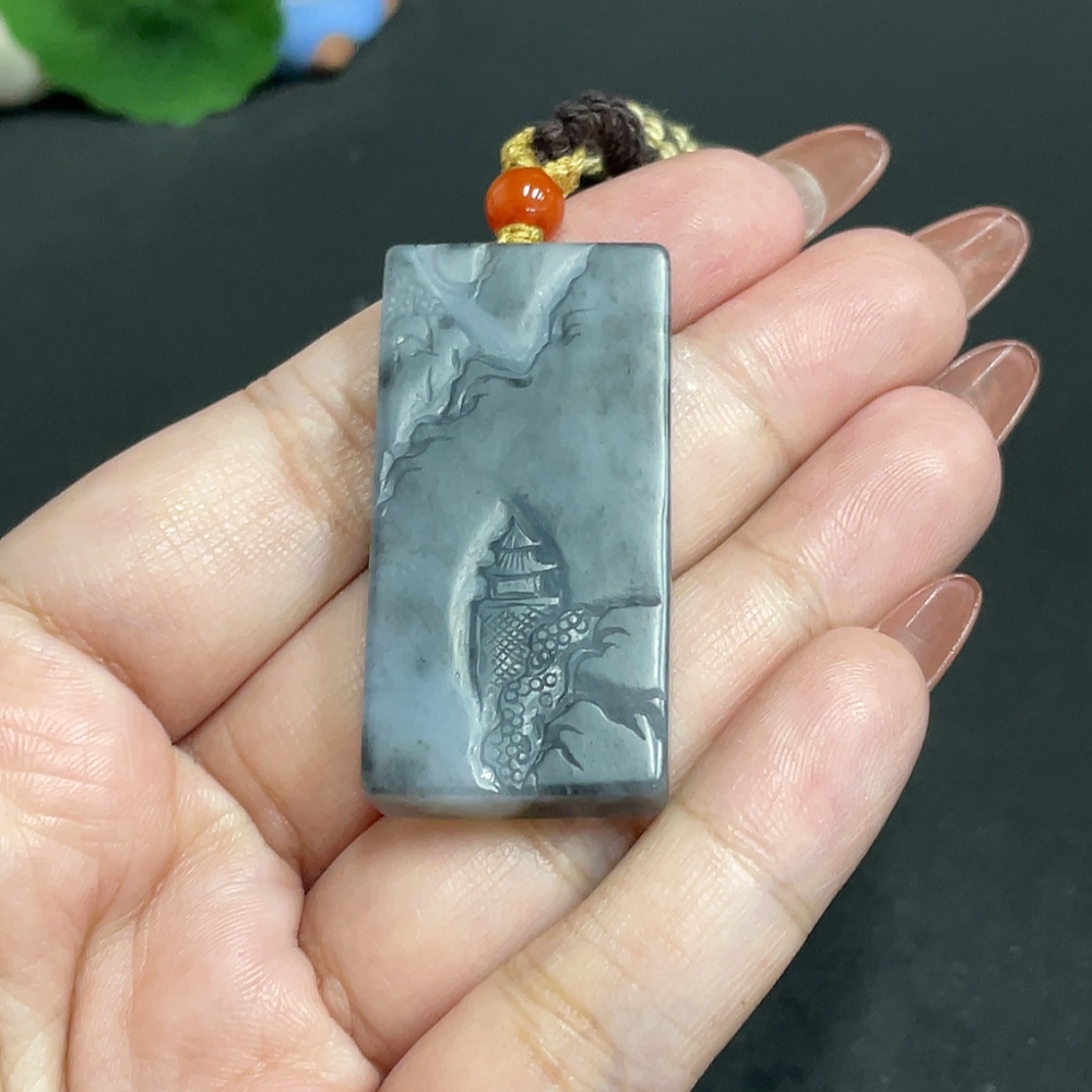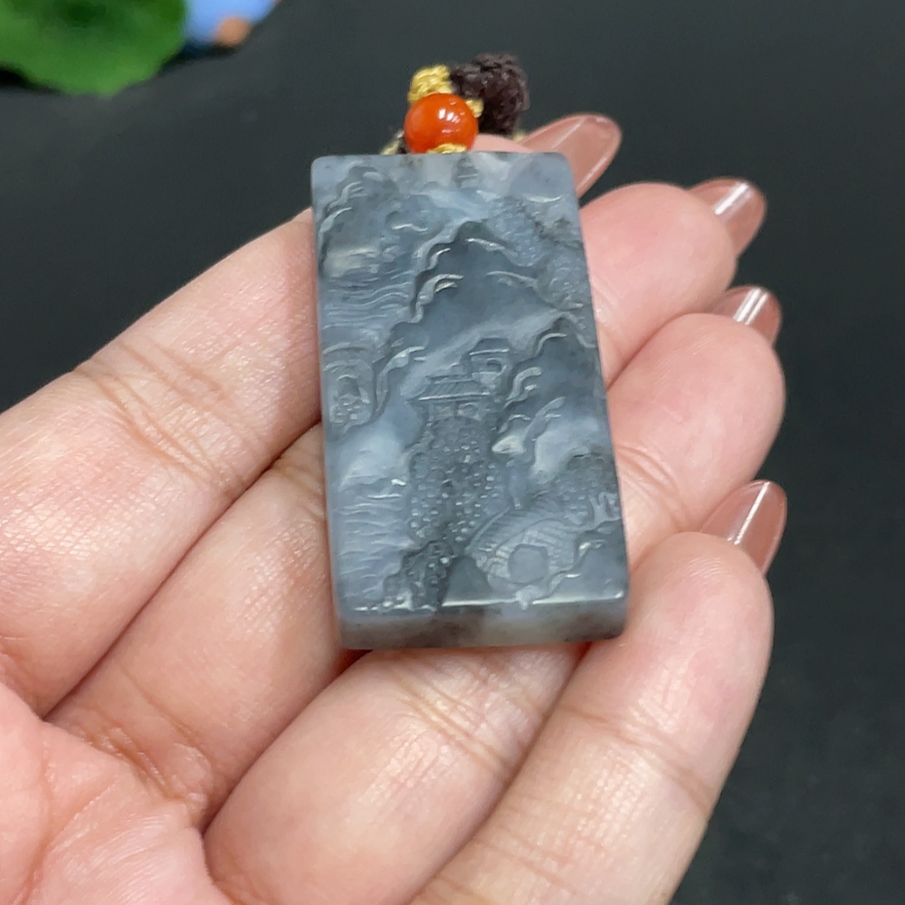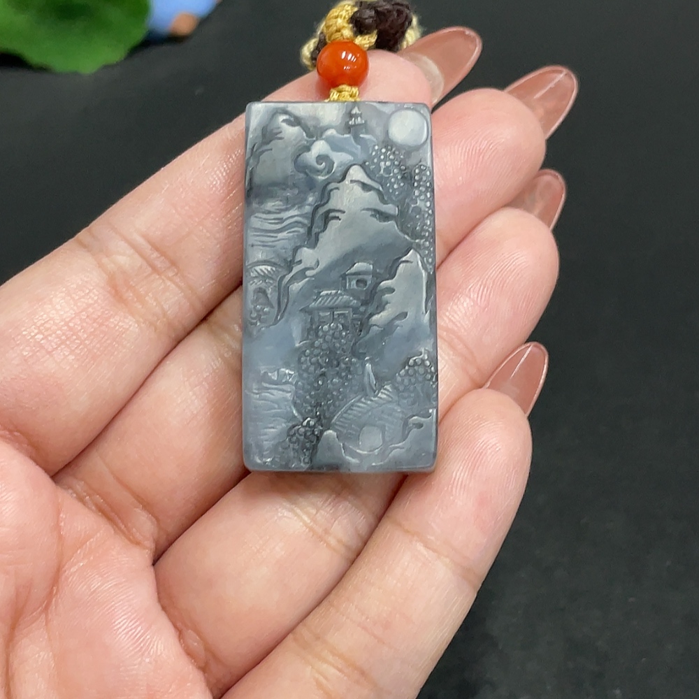 Hetian Jade Pendant Landscape Total Weight Approx. [with Rope] 21.7g
