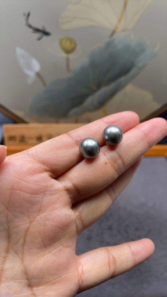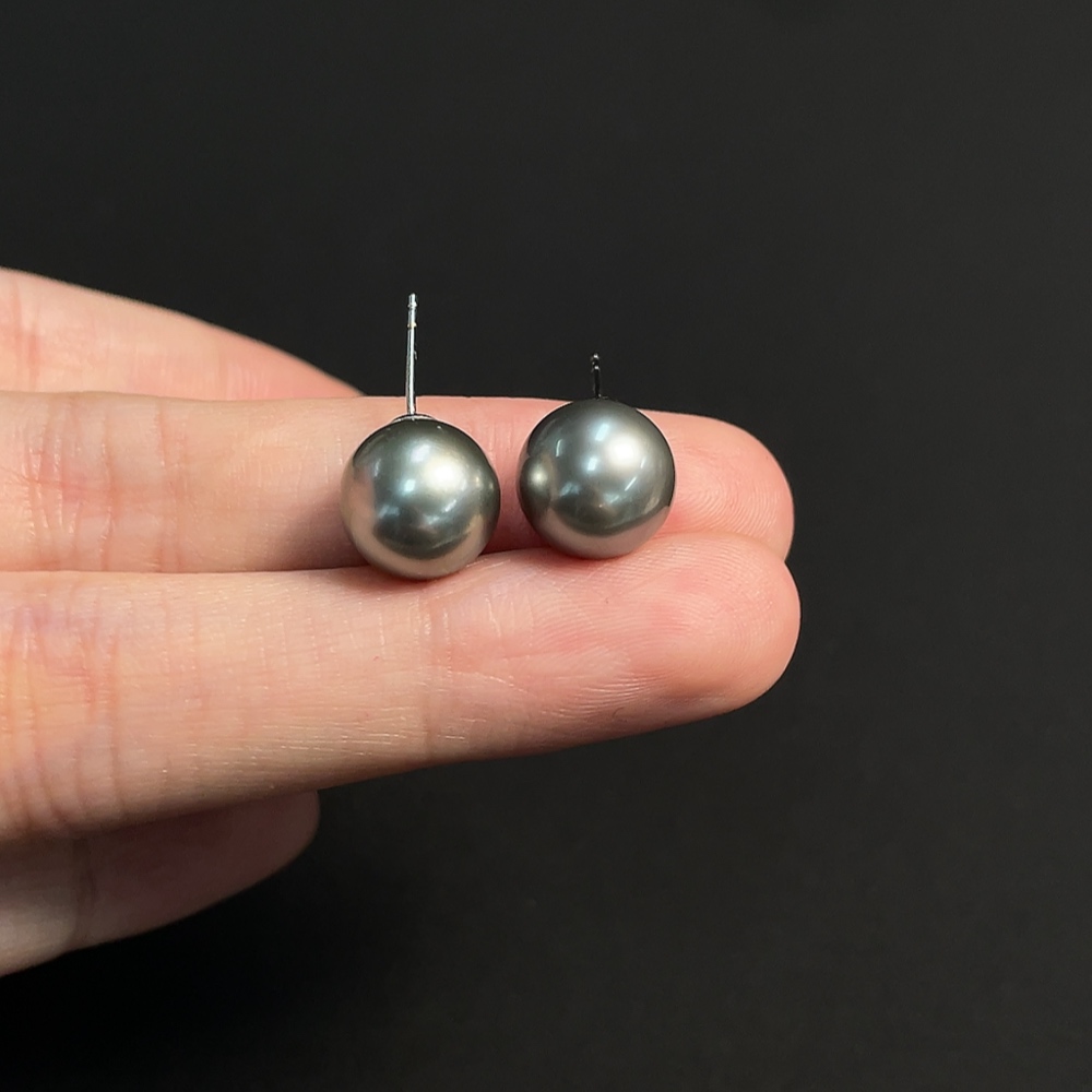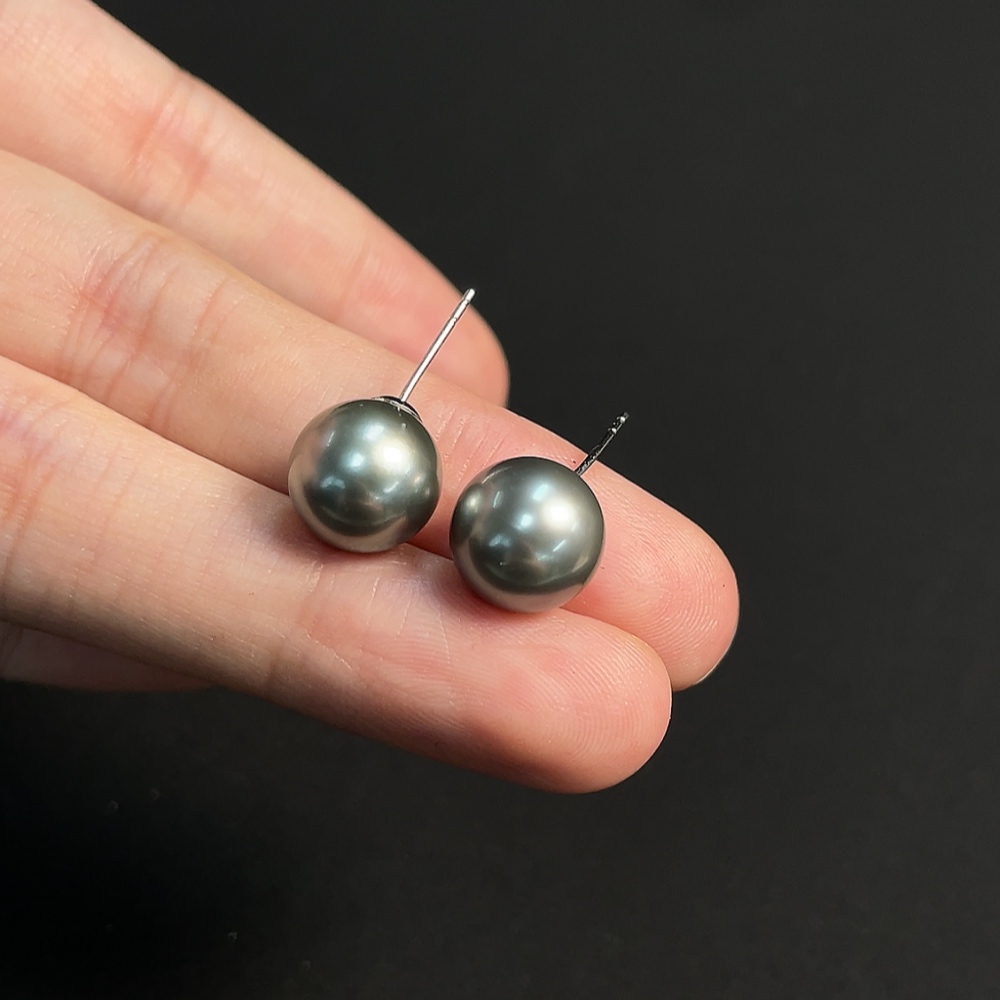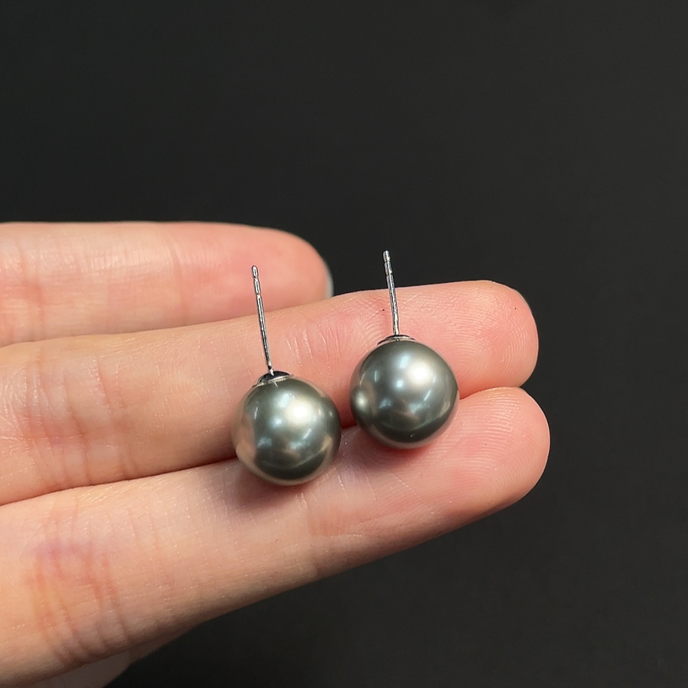 18k seawater pearl earrings, color origin undetermined, total weight approximately 3.21g, size around 10mm