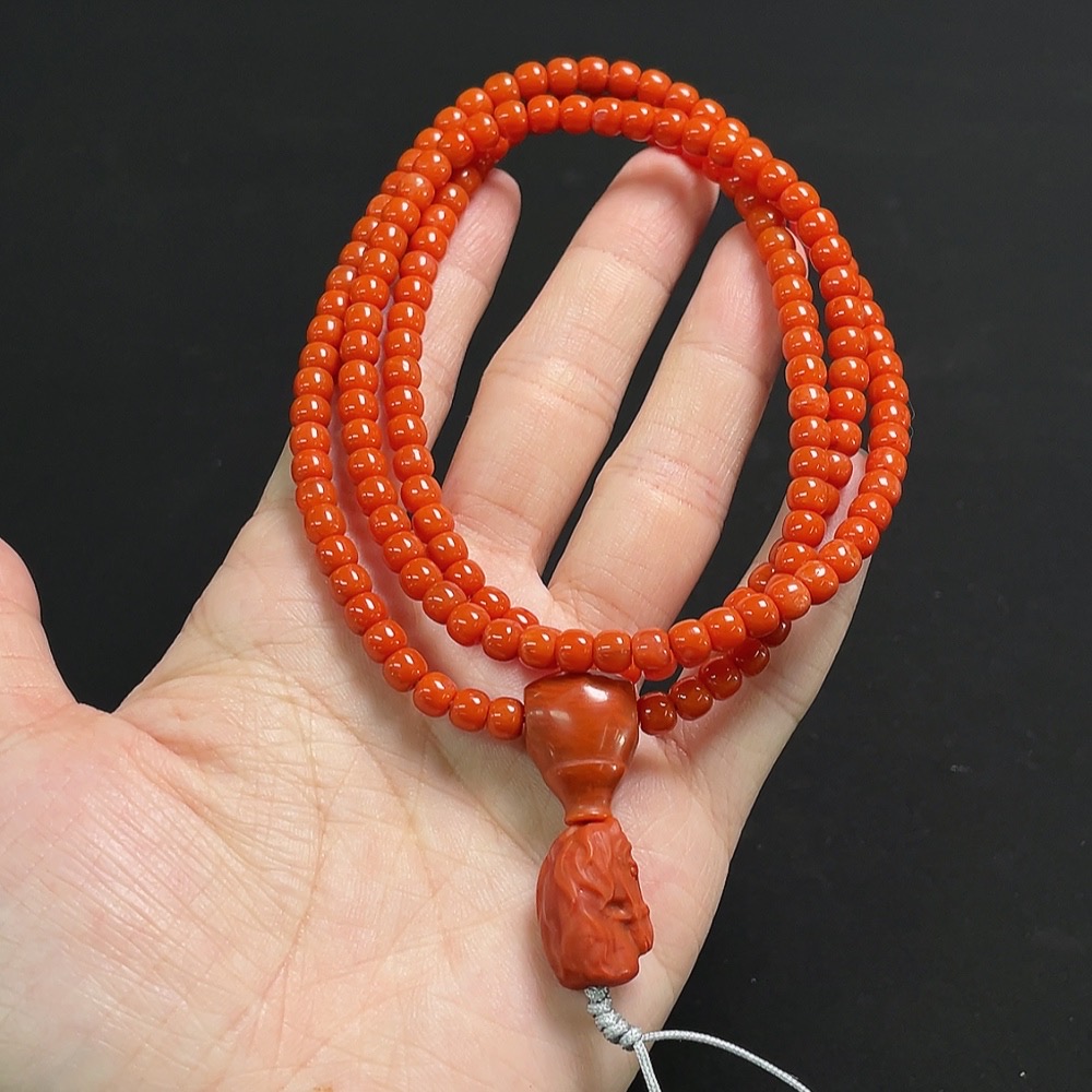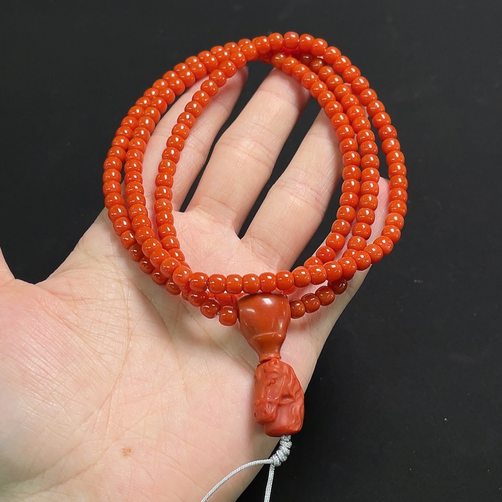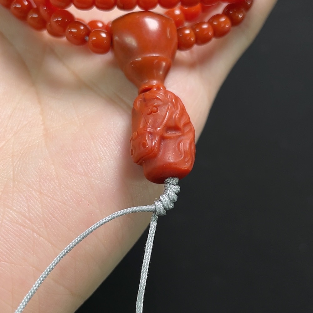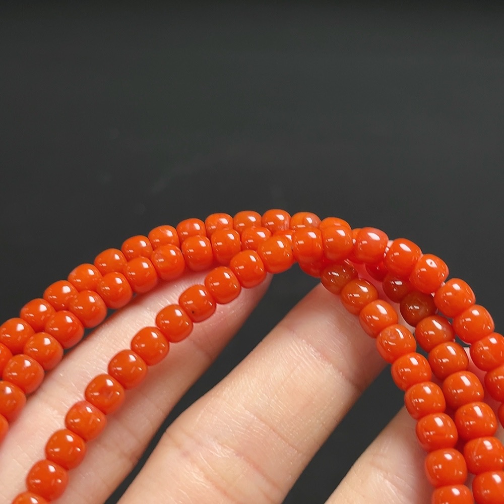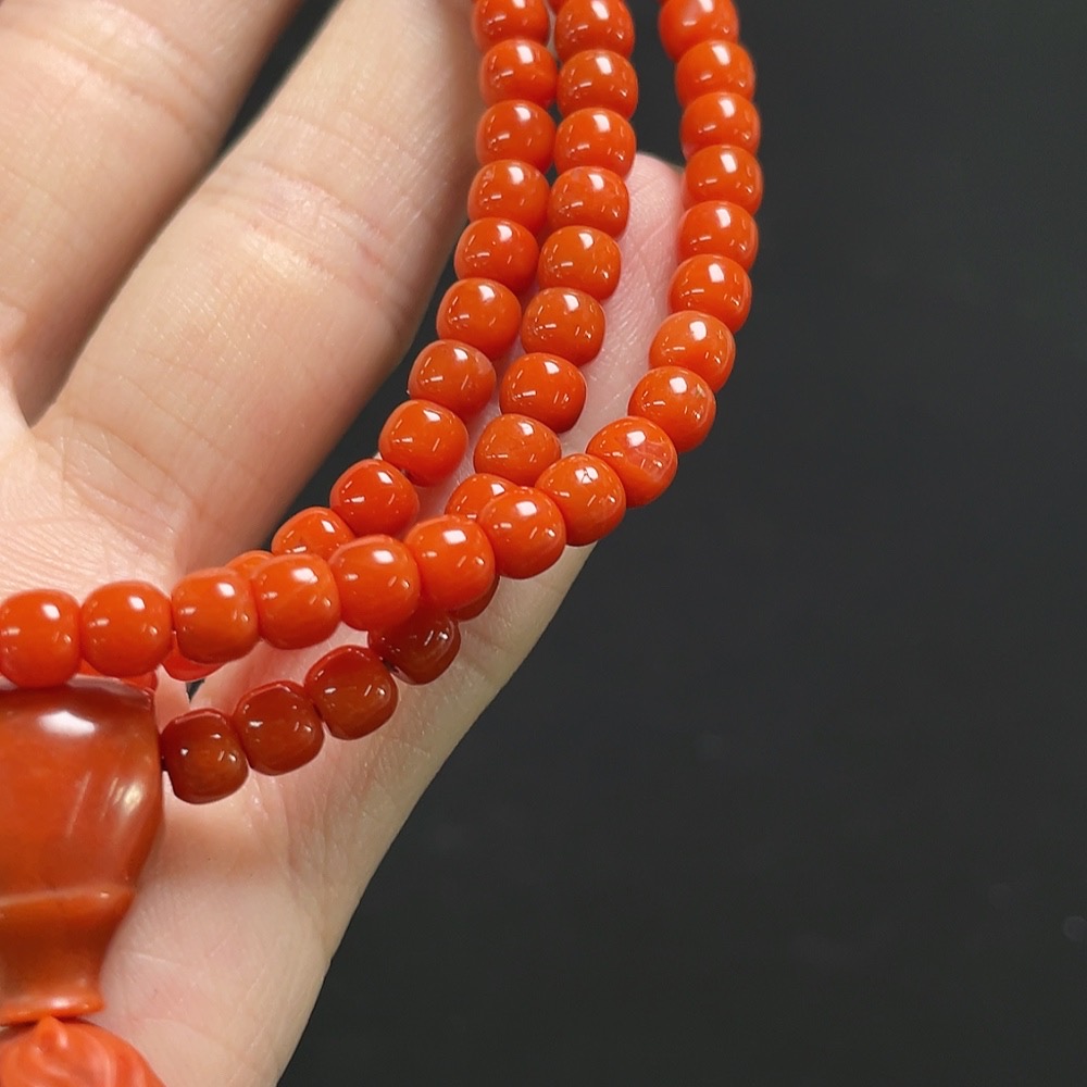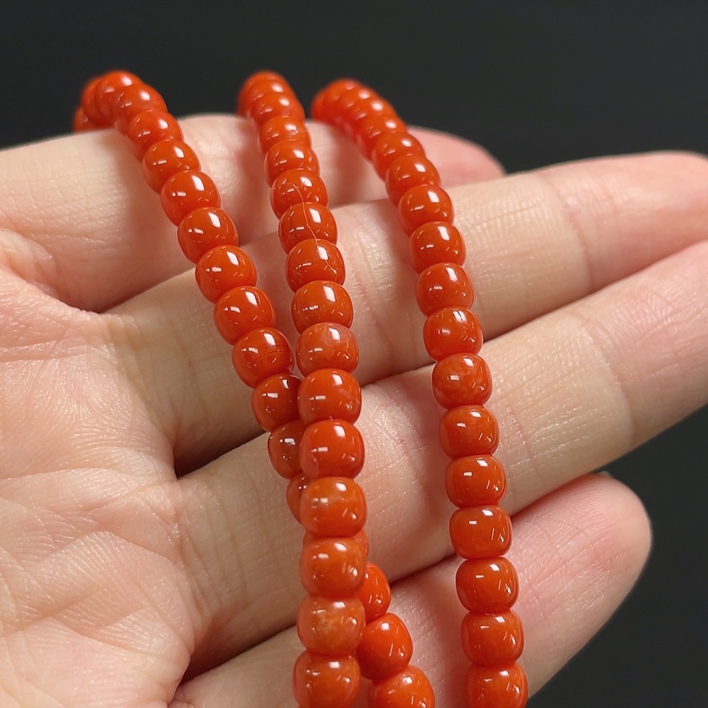 South Red Agate Bead Necklace with Visible Organic Matter, Total Weight Approx. 29.3g, Bead Size Around 4.7mm