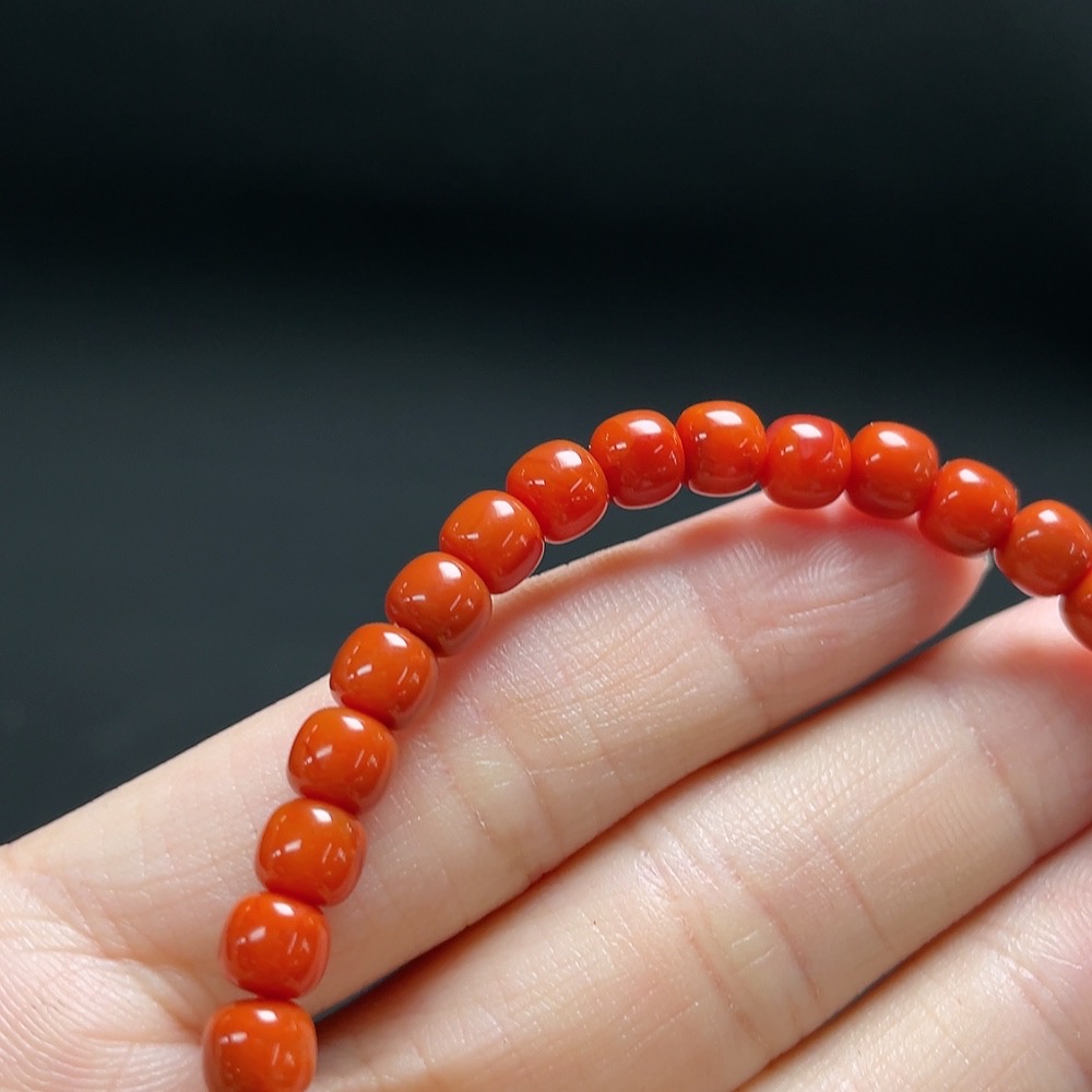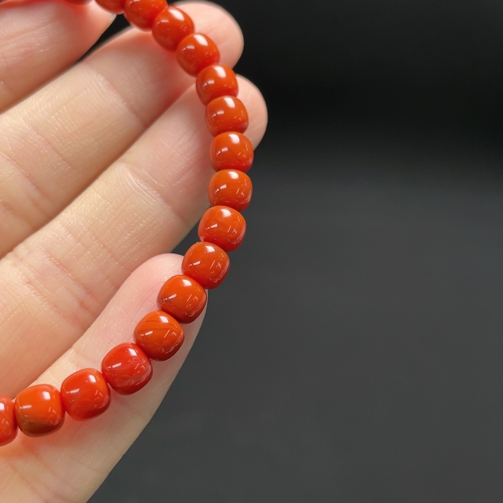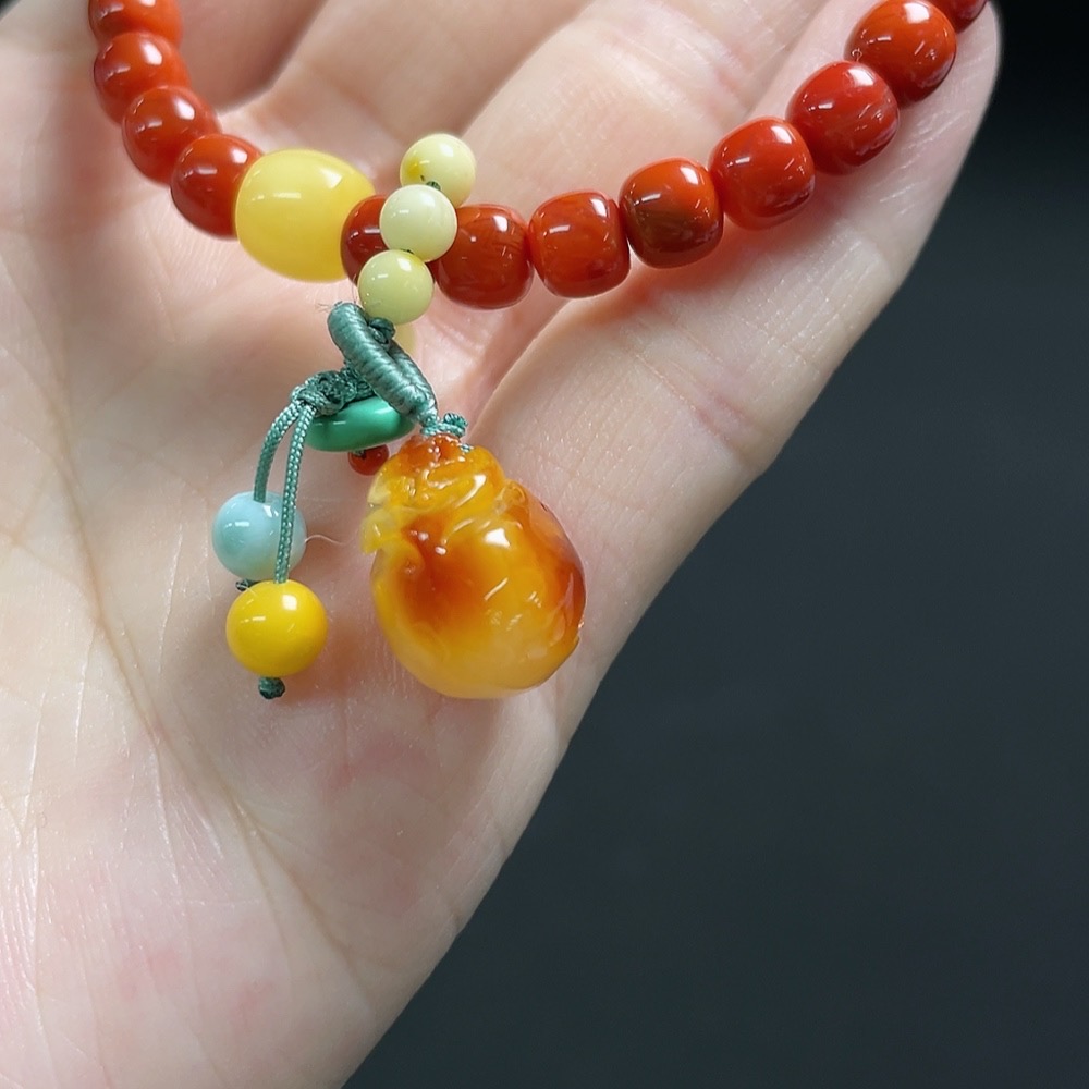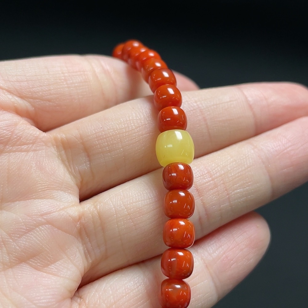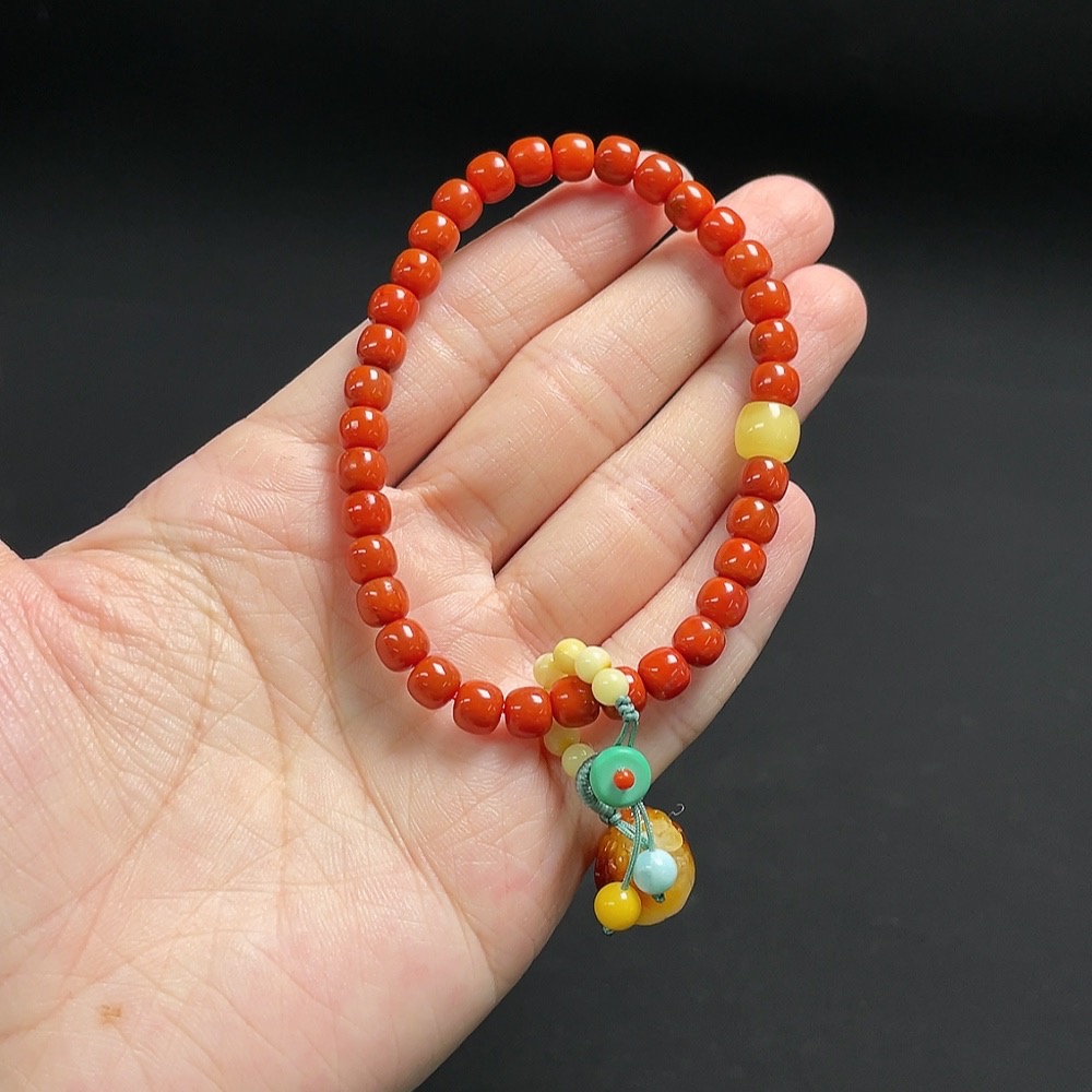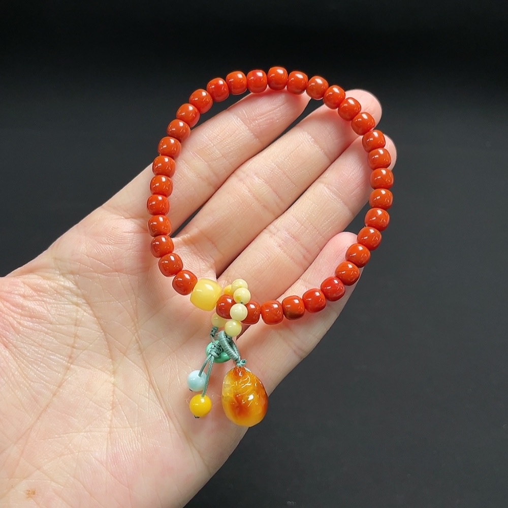 Red Agate Bracelet with Amber and Larimar (Coated), Visible Organic Matter, Consider Non-Natural Accent Stones, Total Weight Approx. 9.9g, Size About 5.4mm