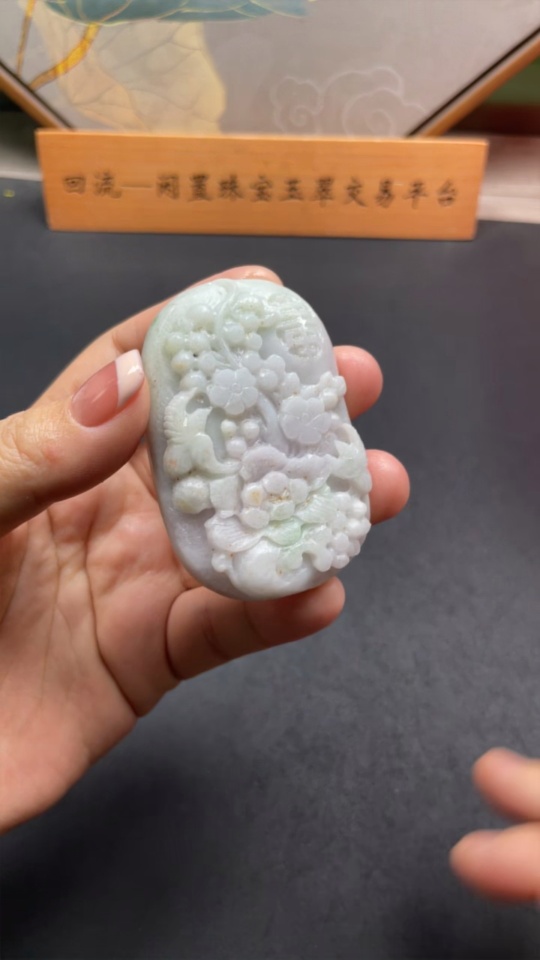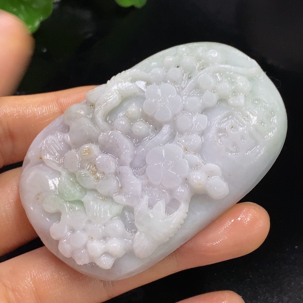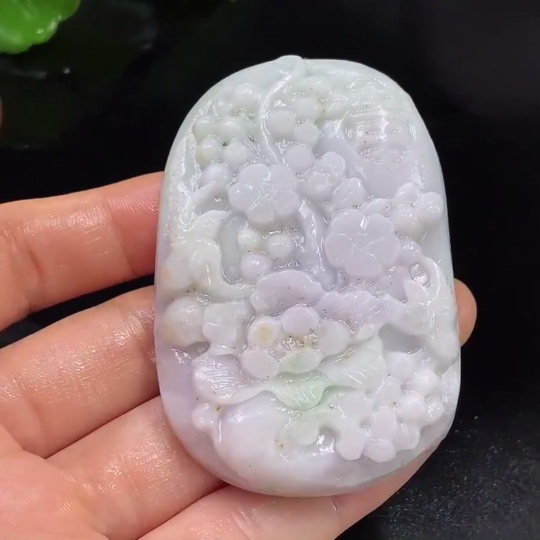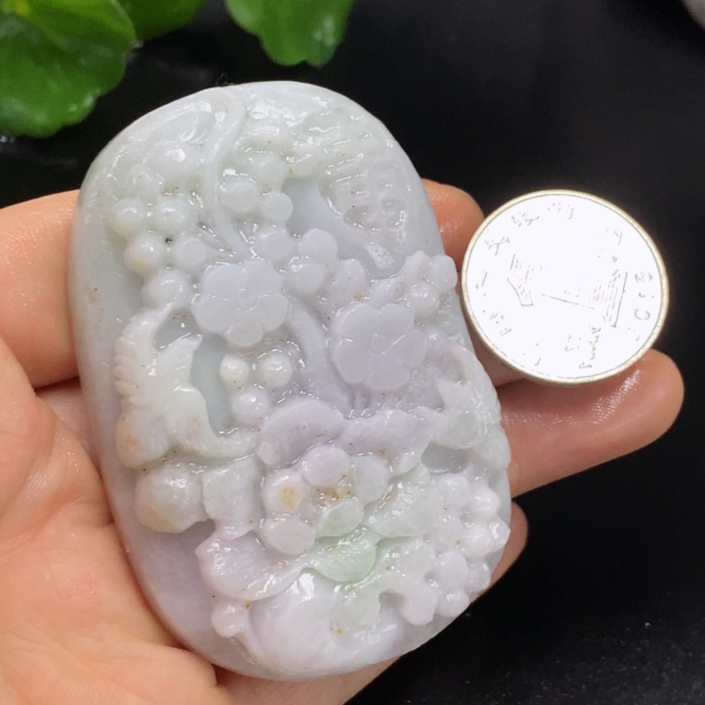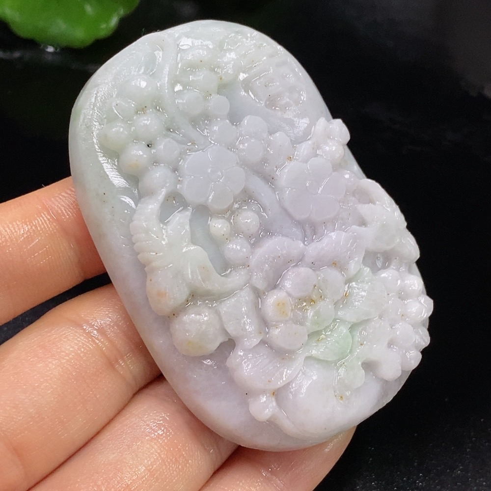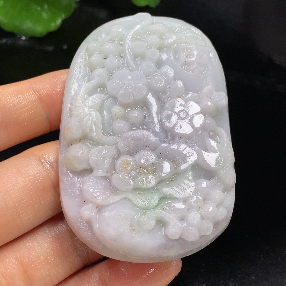 Jadeite Rough Pendant Floral Prosperity Total Weight Approx. 94.23g