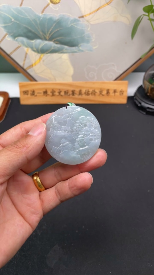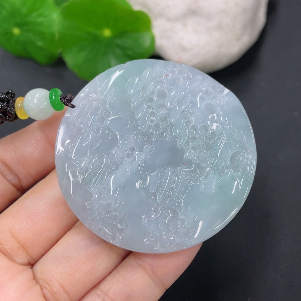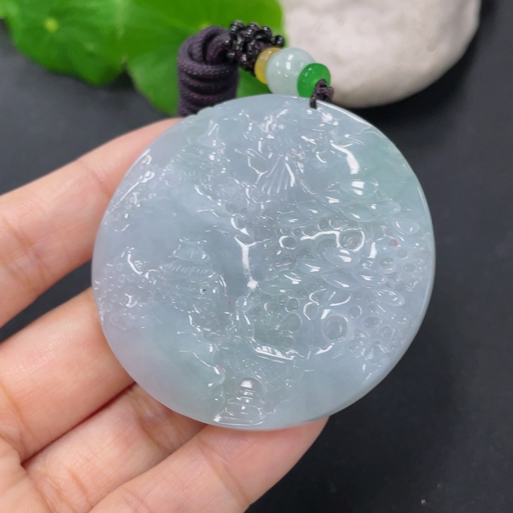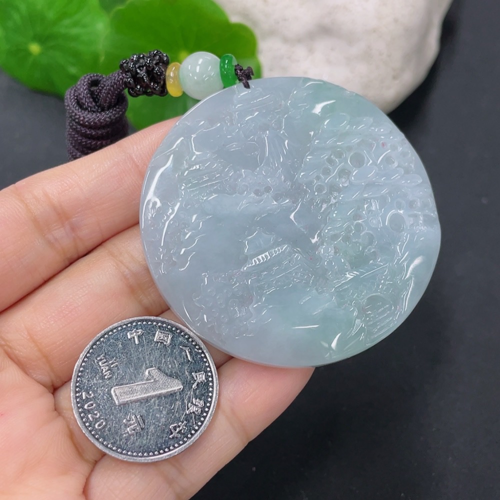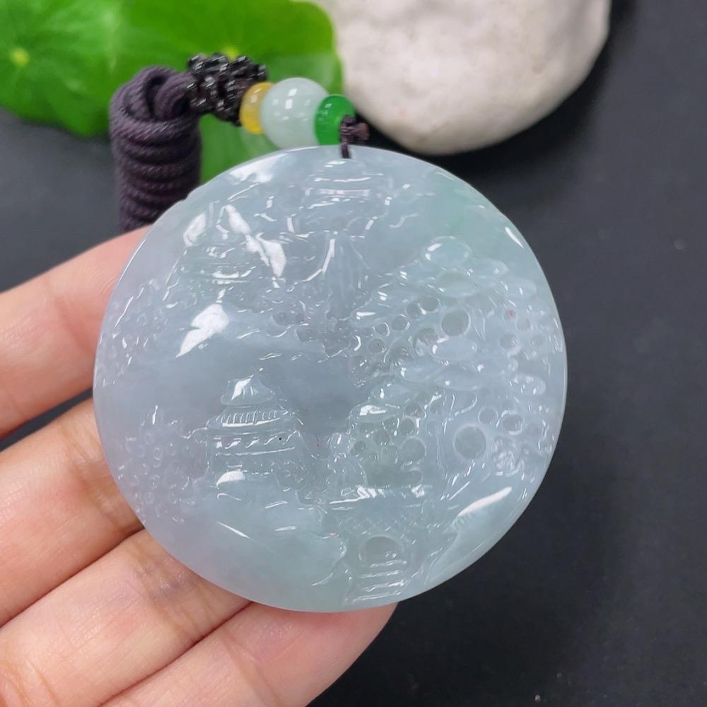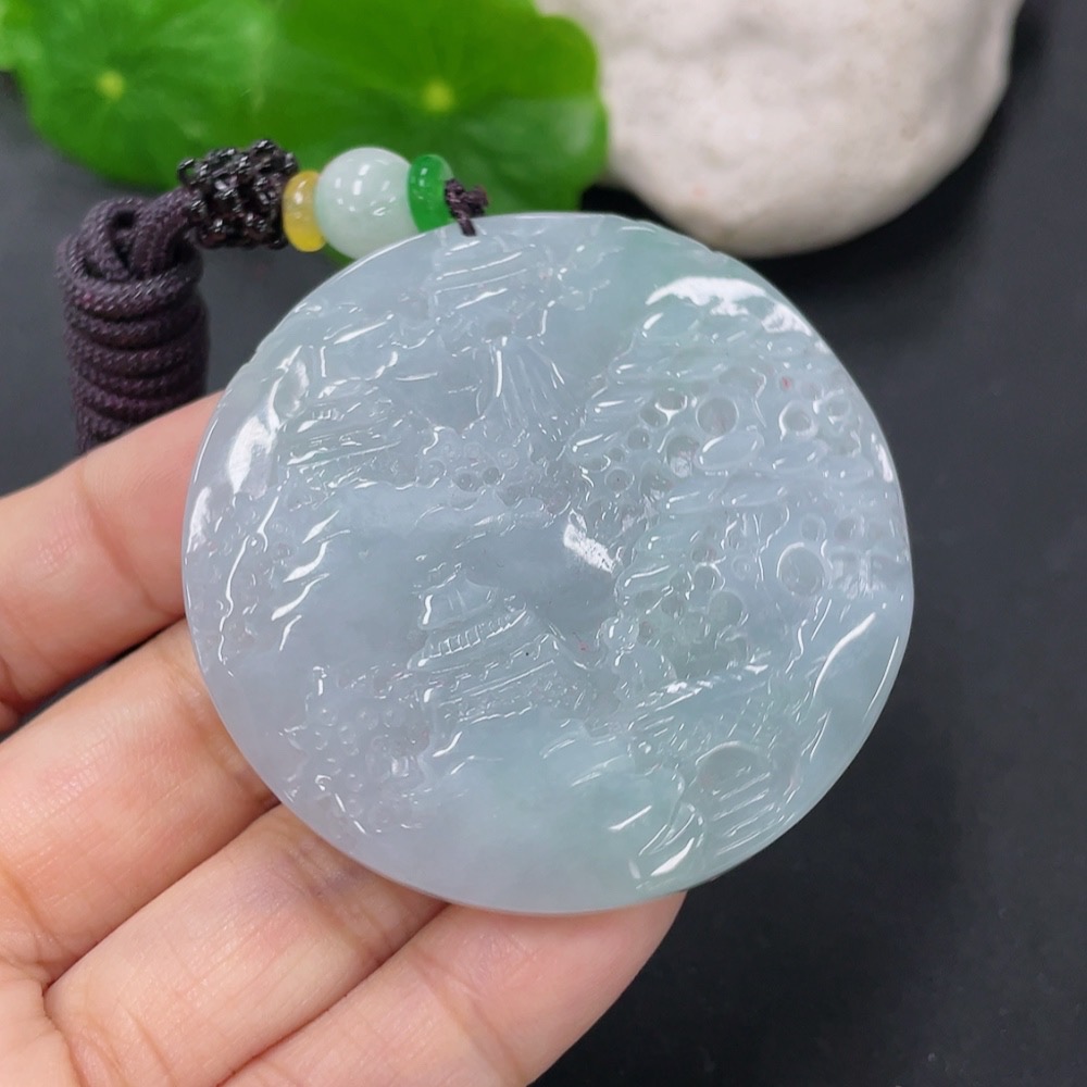 Jadeite Pendant Landscape Plaque Total Weight Approx. 42.94g with Rope