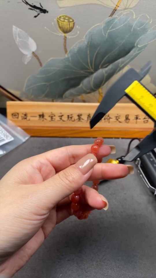 Red Agate Bracelet, approx. 7.7mm, total weight approx. 14.07g, visible organic matter