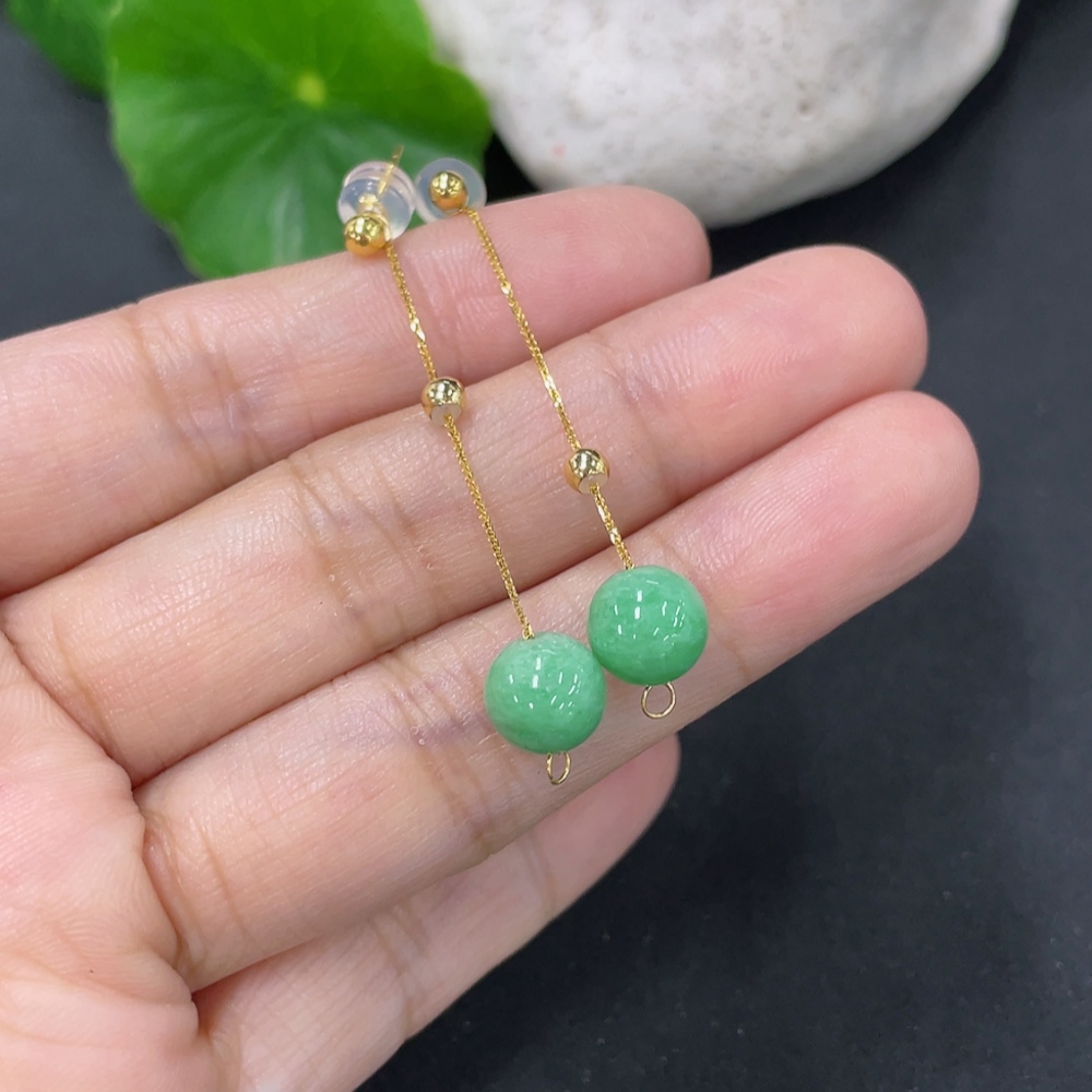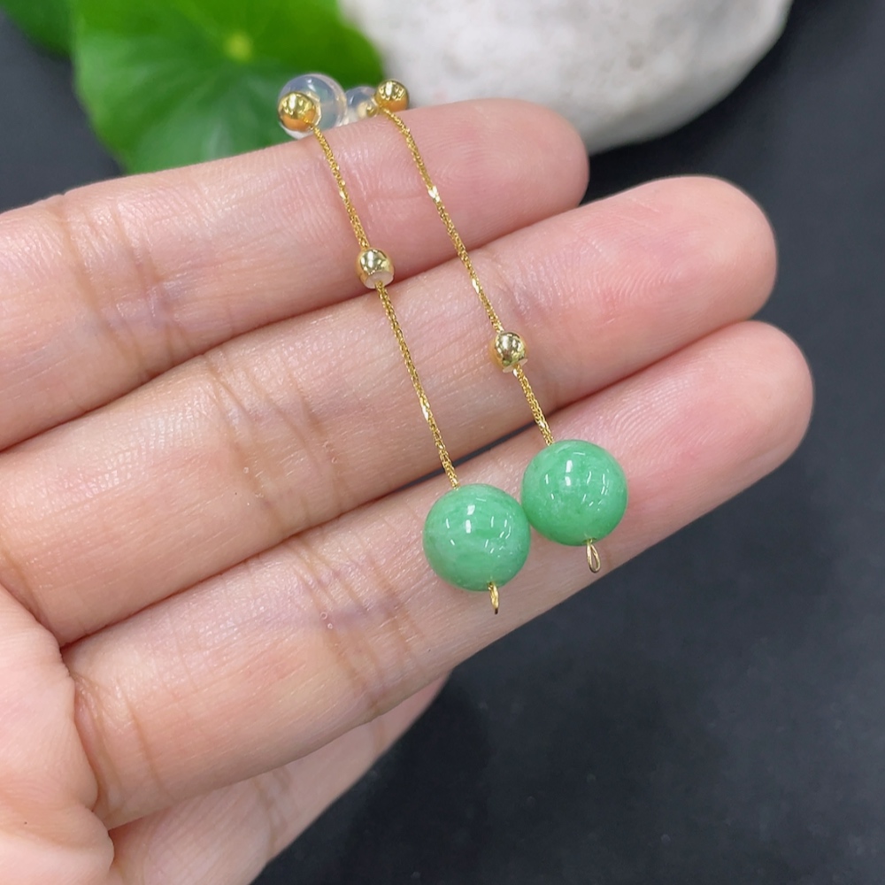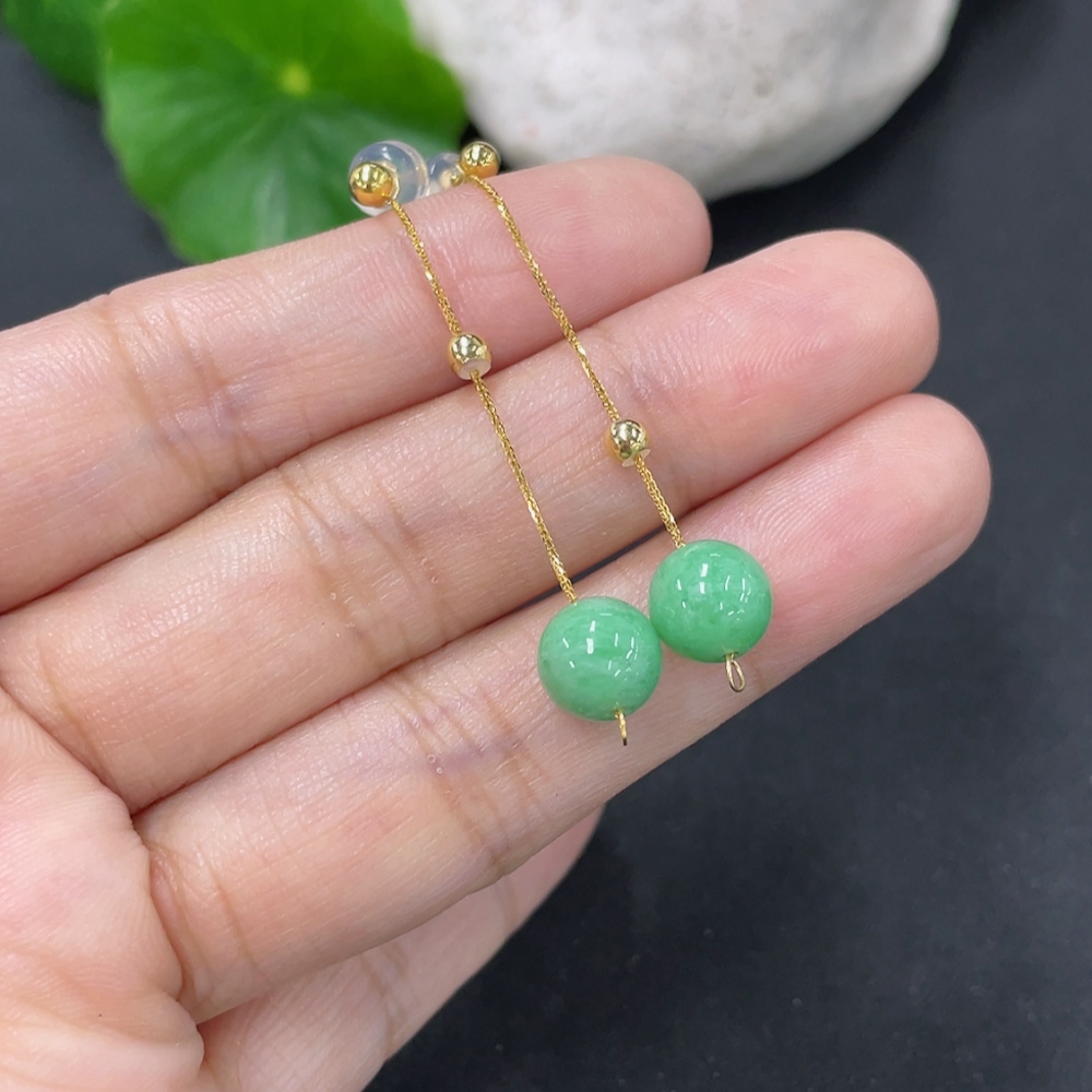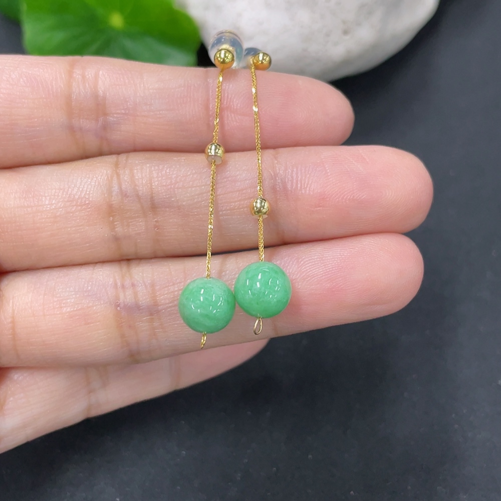 Jadeite Bead Inlaid Thread Earrings Pair, Needle Suspected Gold-Plated, Rest 18k, Approx. 7.4mm, Total Weight Approx. 1.78g
