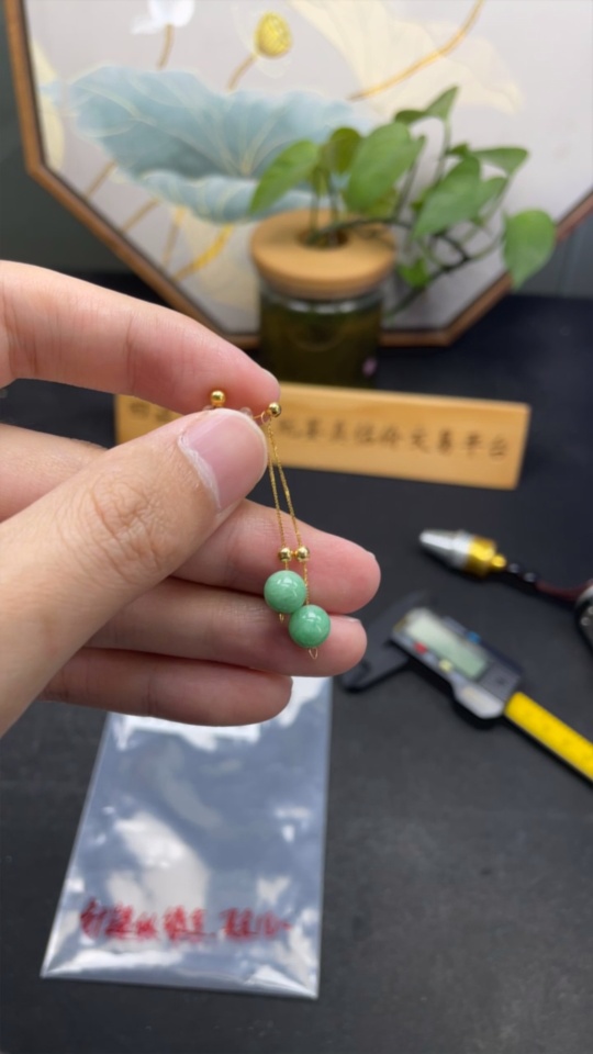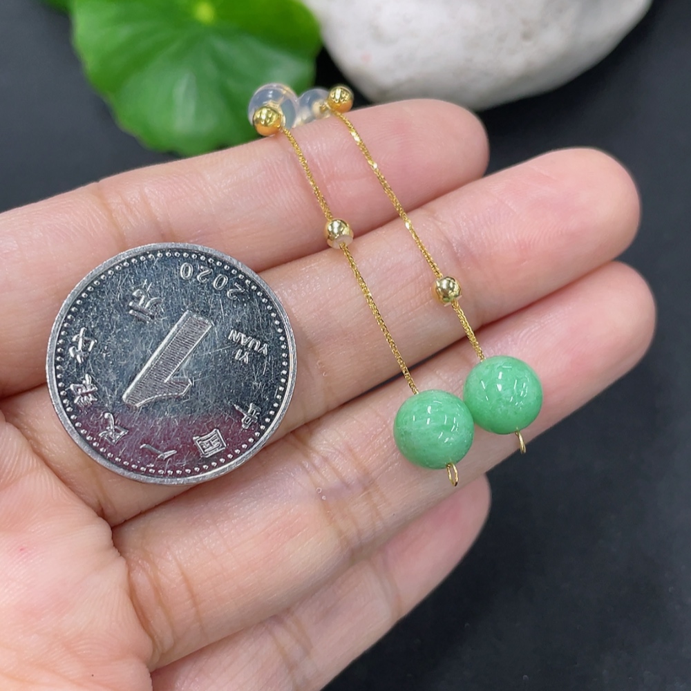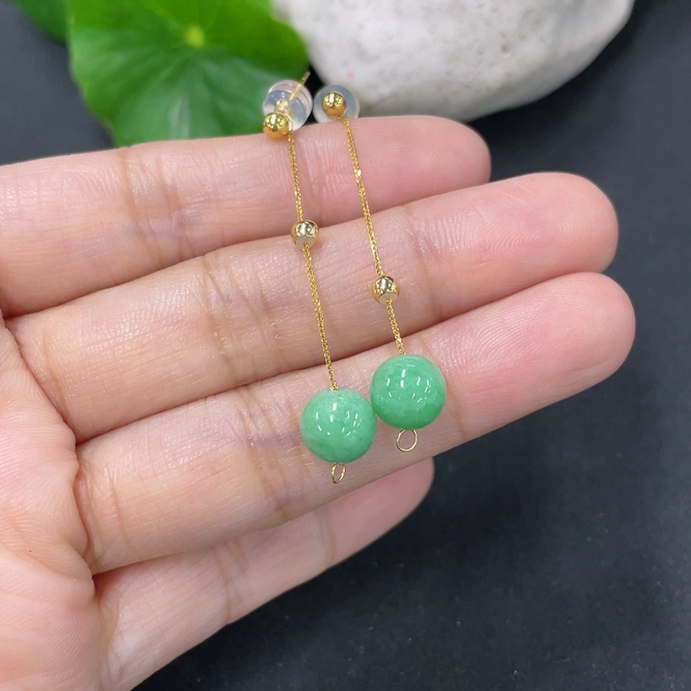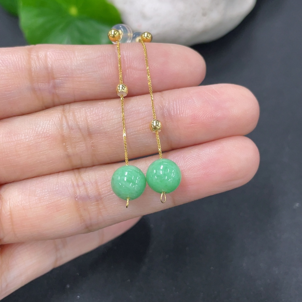 Jadeite Bead Inlaid Thread Earrings Pair, Needle Suspected Gold-Plated, Rest 18k, Approx. 7.4mm, Total Weight Approx. 1.78g