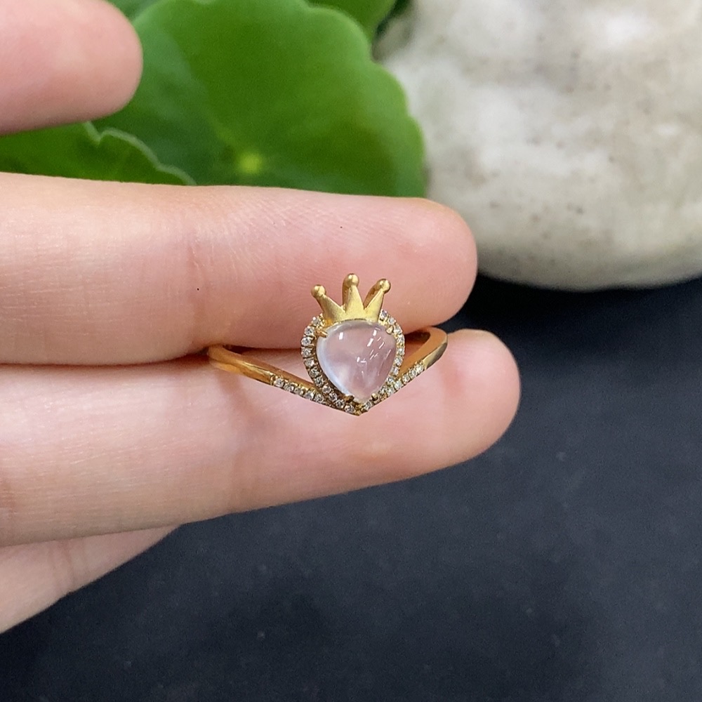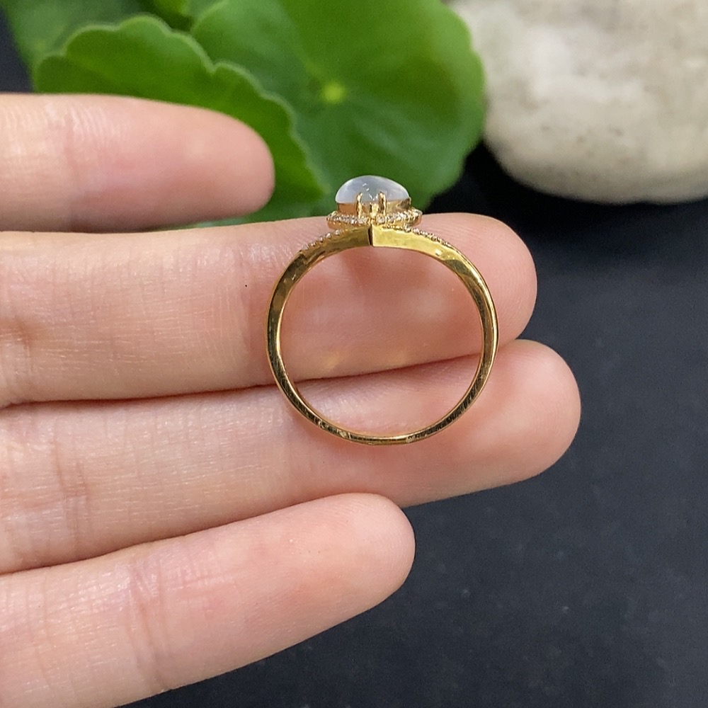 Jadeite Ring with 18K Gold and Diamond Accents, Size 13, Total Weight Approx. 2.3g
