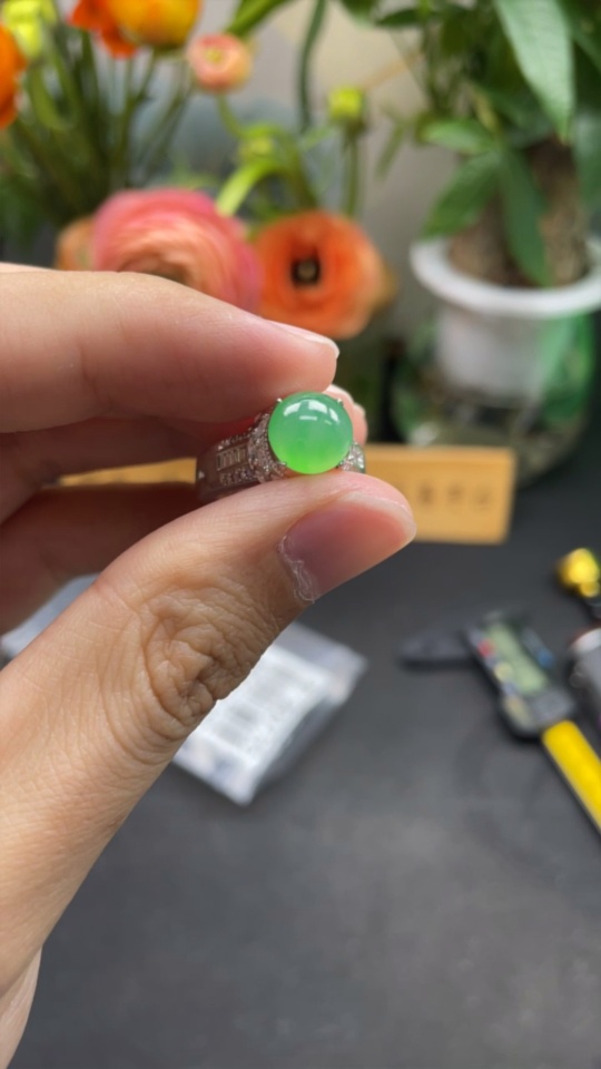 Jadeite cabochon, non-gold inlaid, total weight approx. 12.43g