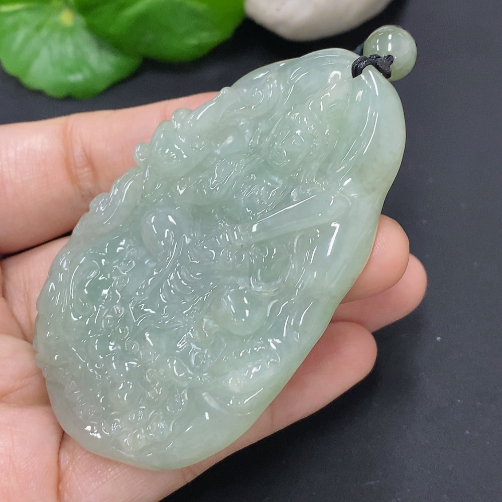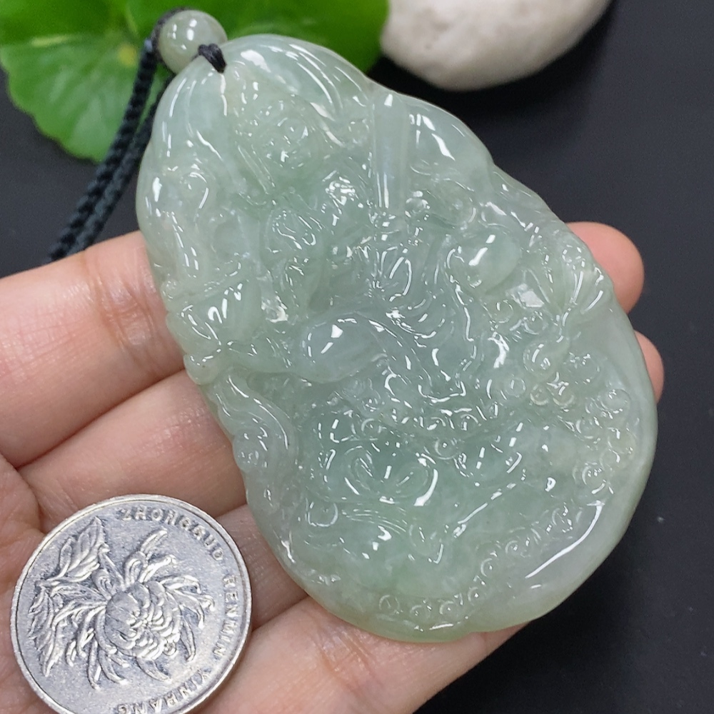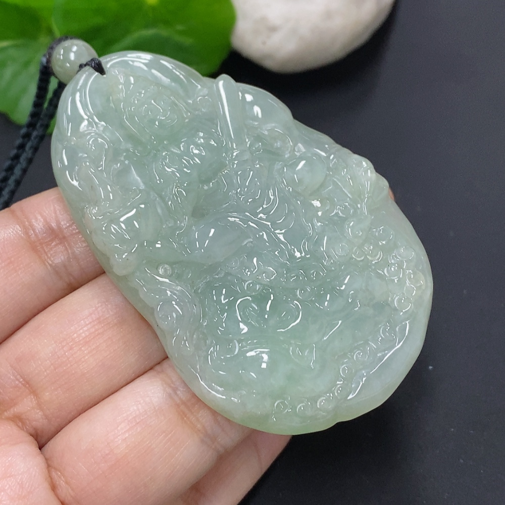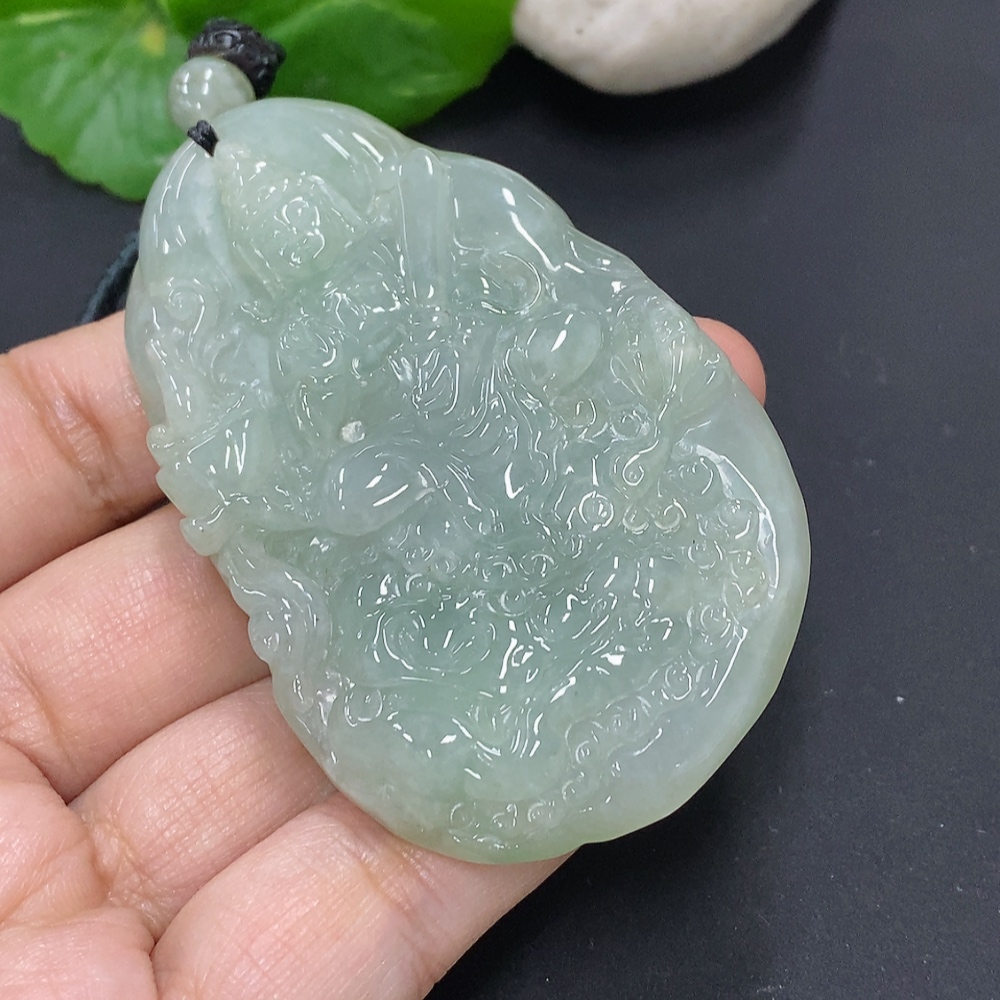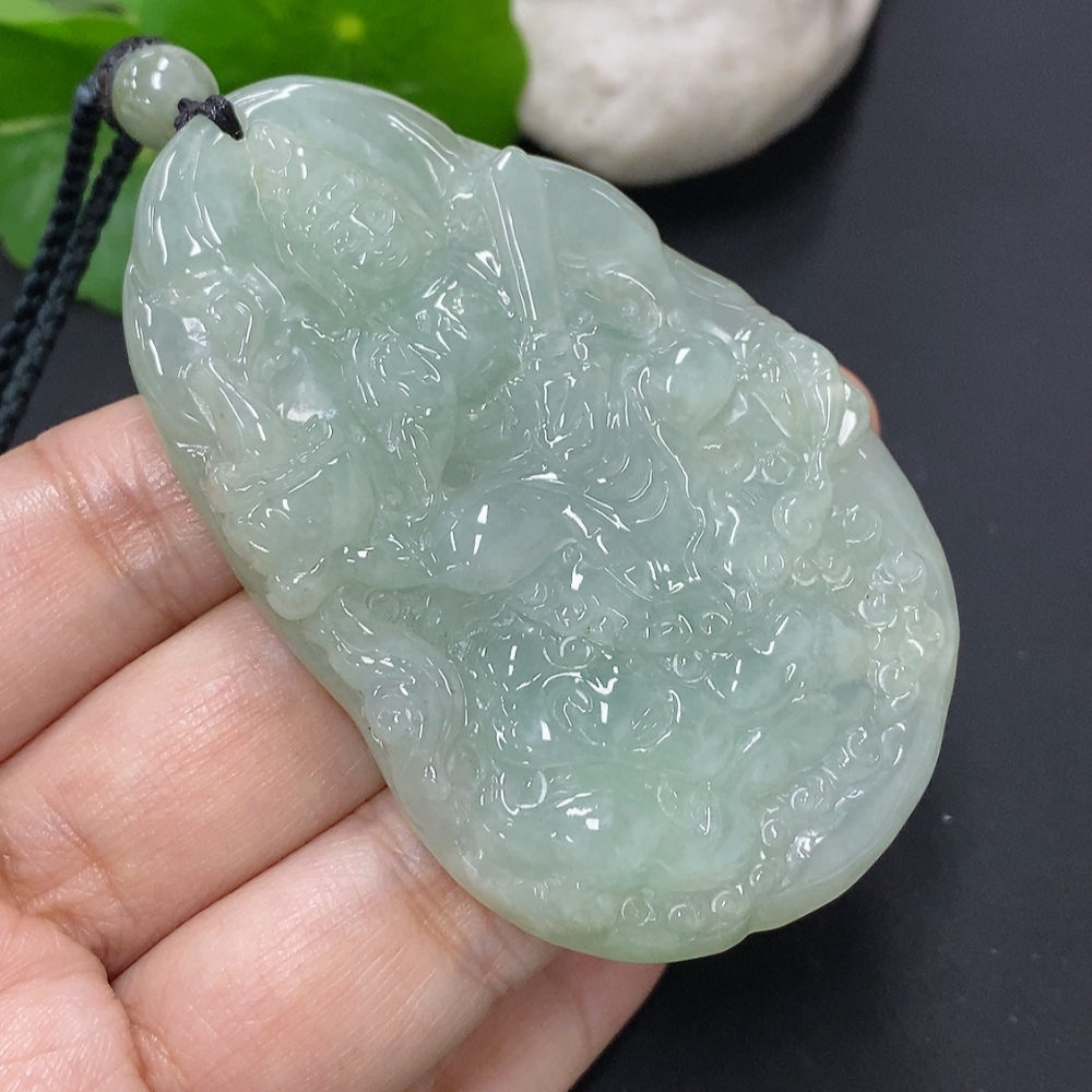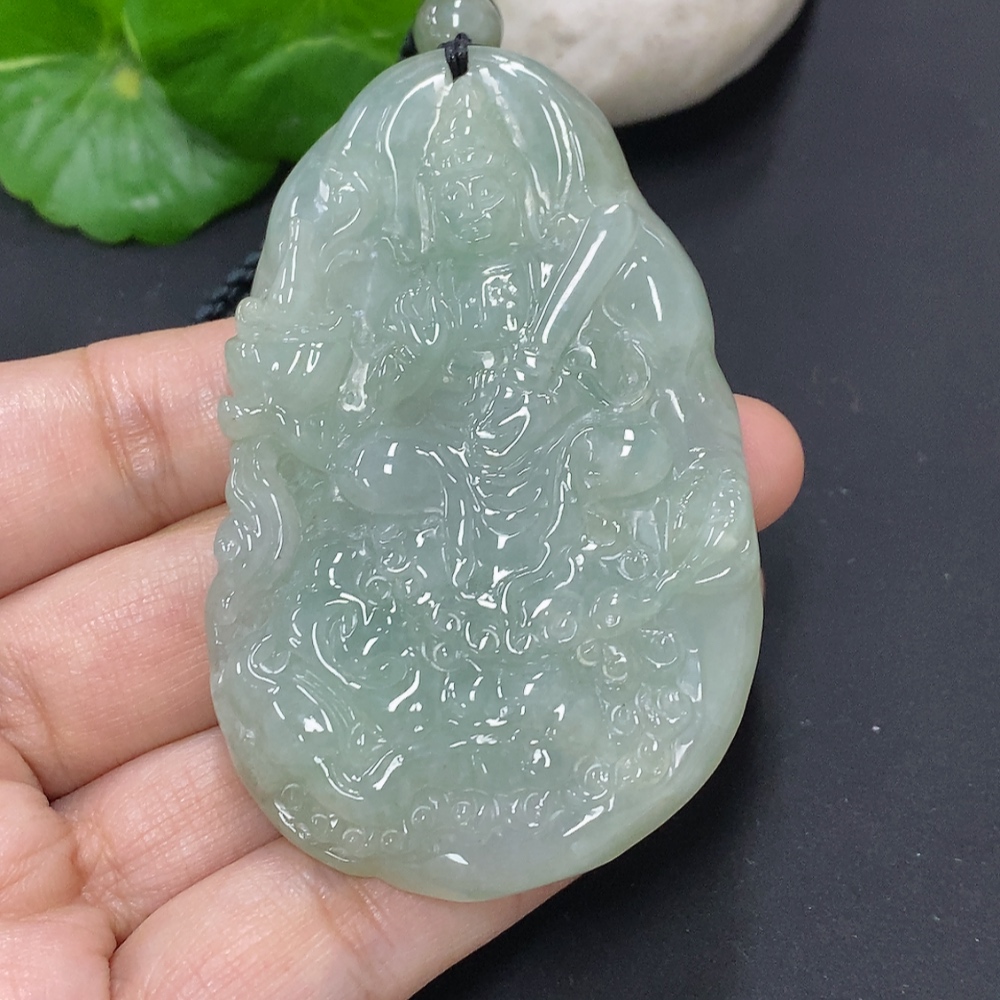 Jadeite Manjushri Bodhisattva Pendant, total weight including rope approximately 68.9g