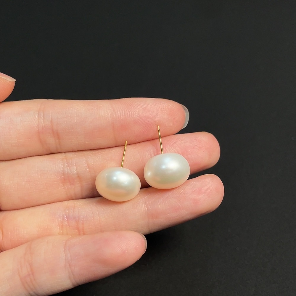 Pearl Earrings Unmarked 18K Gold Approximately 5.29g Total Weight Approximately 13.5mm