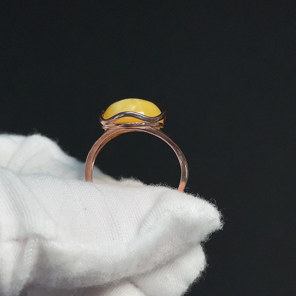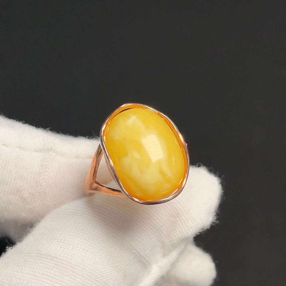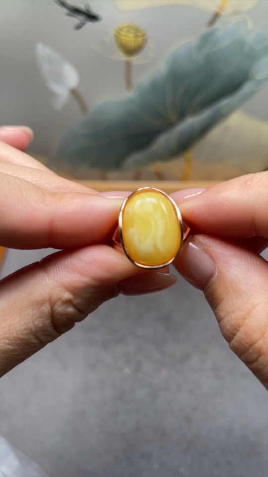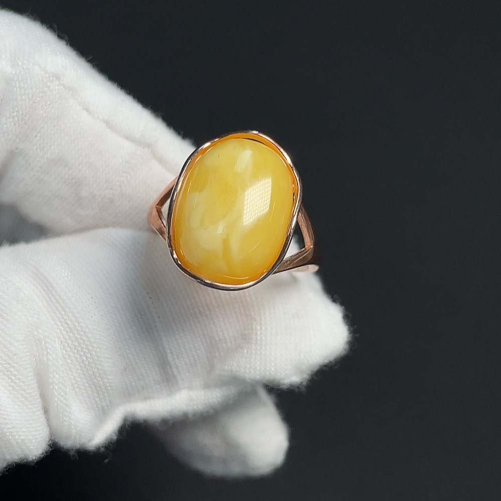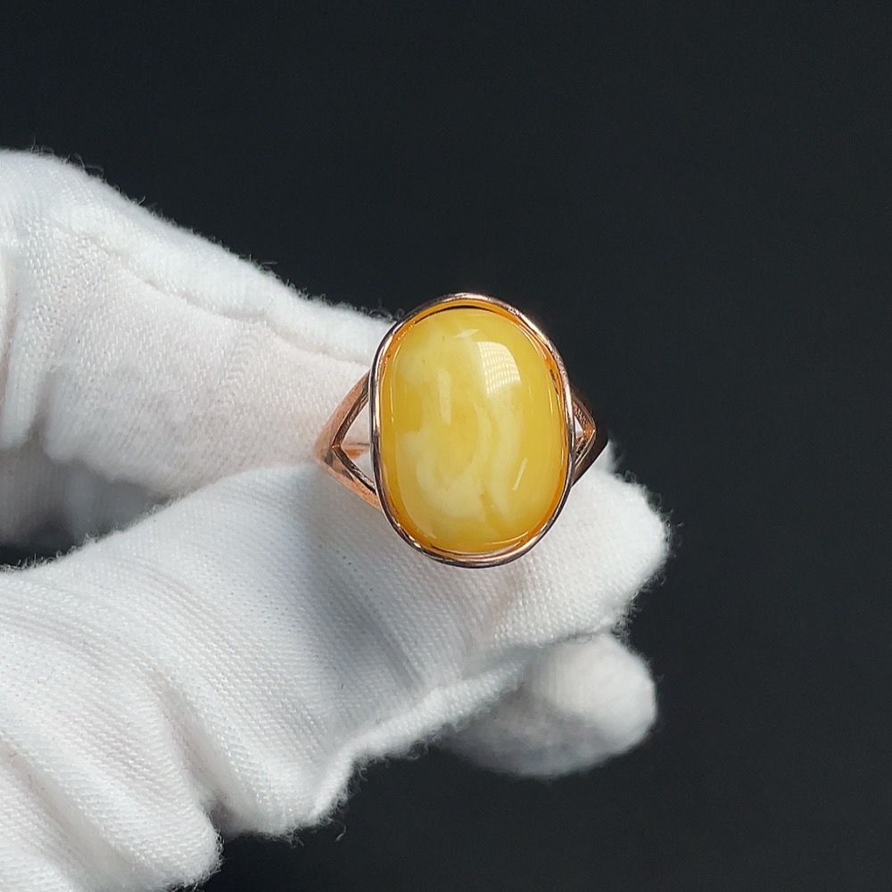 Amber and Beeswax Inlaid Ring, Non-Gold Setting, Adjustable, Total Weight Approximately 2.72g