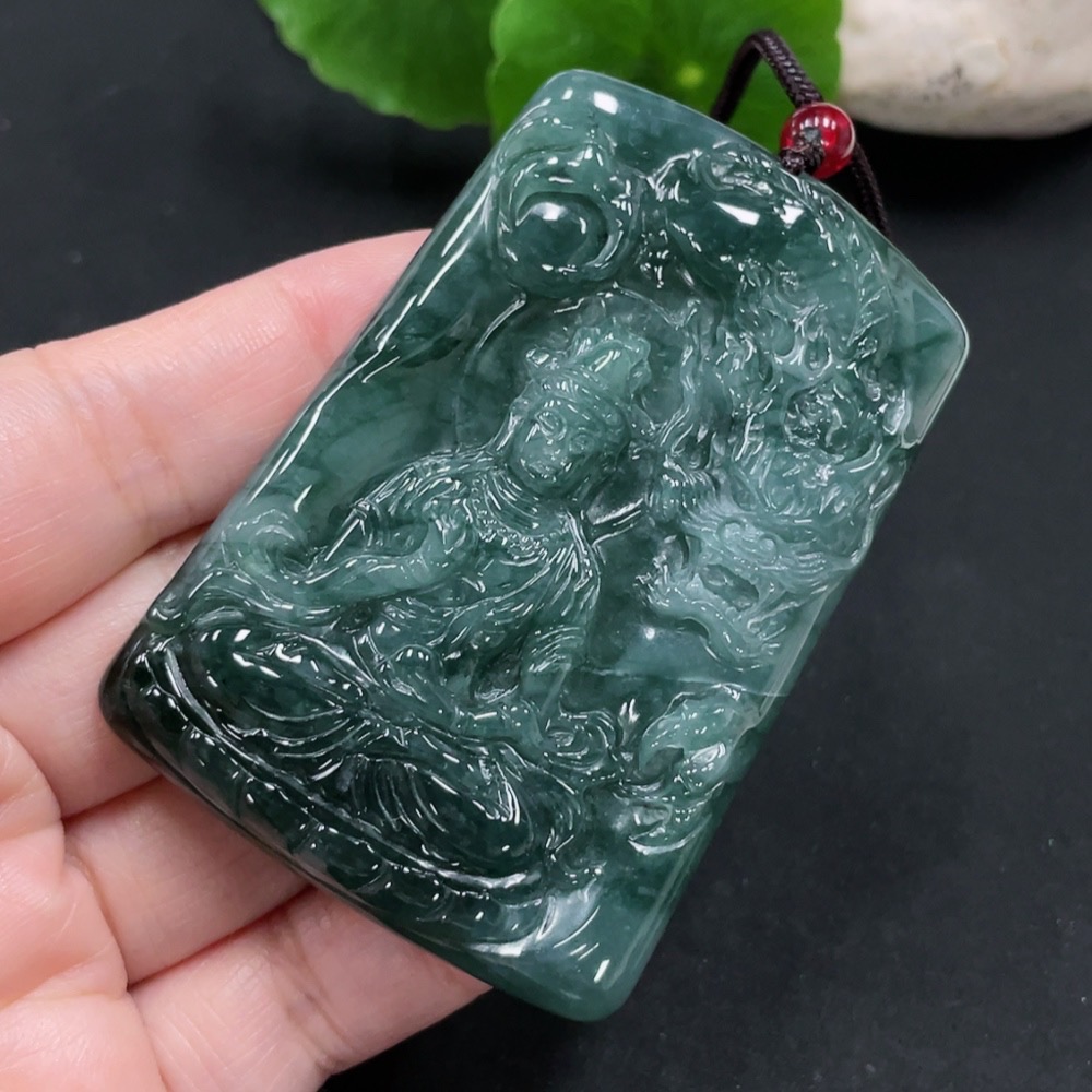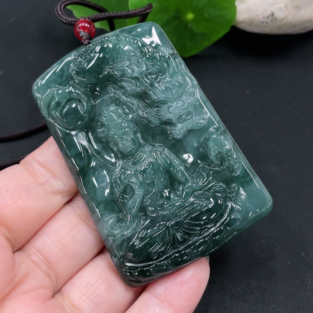 Jadeite Guanyin Pendant Total Weight Approx. 47.3g (including rope weight)