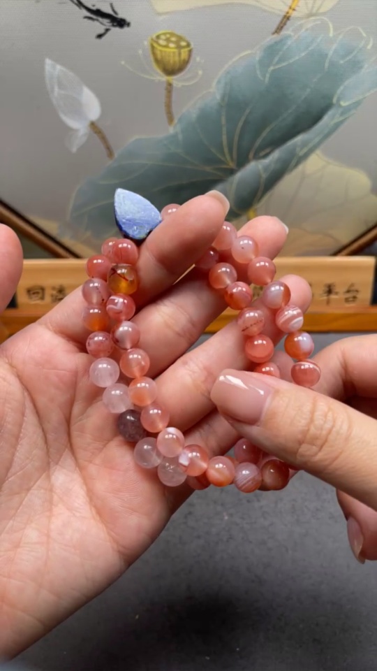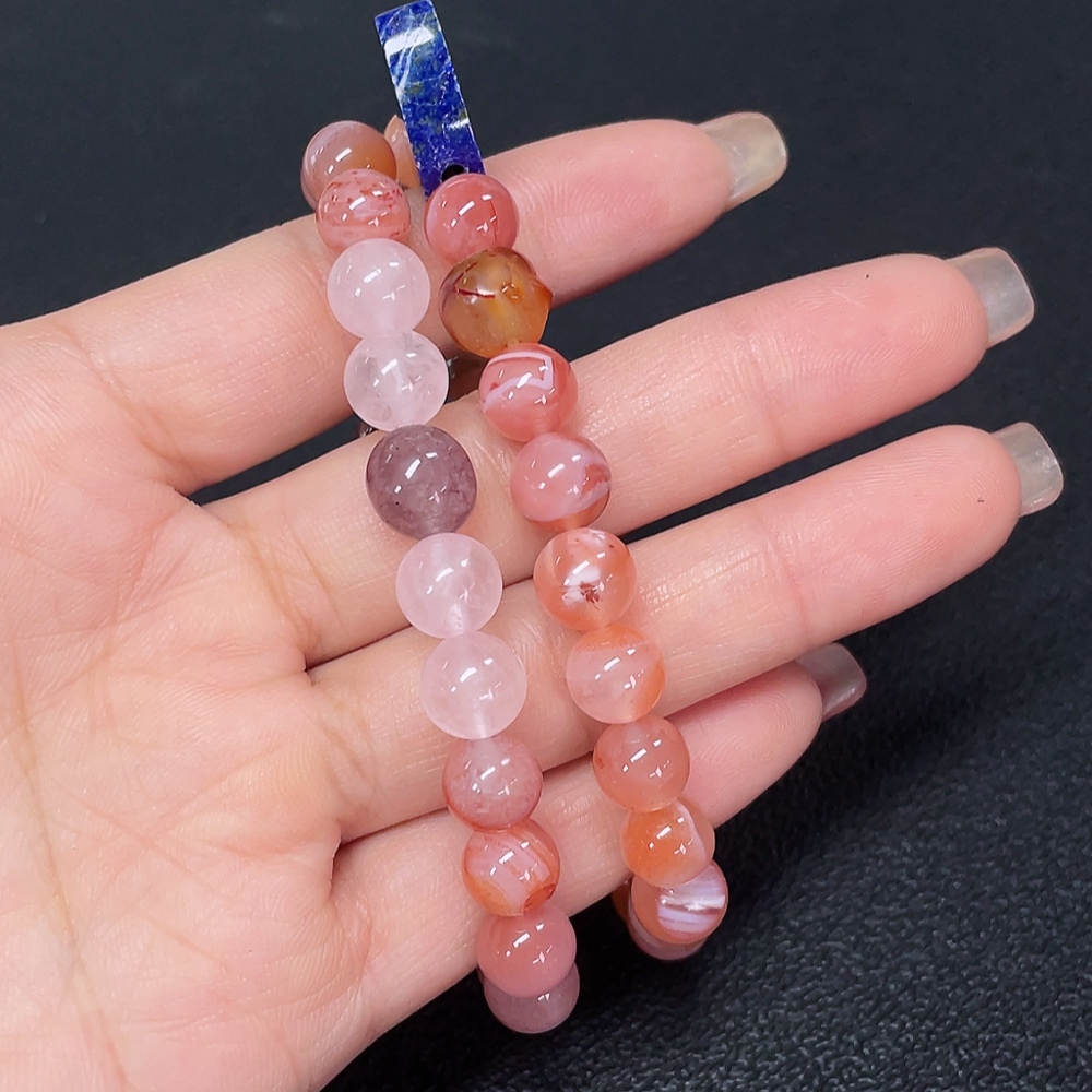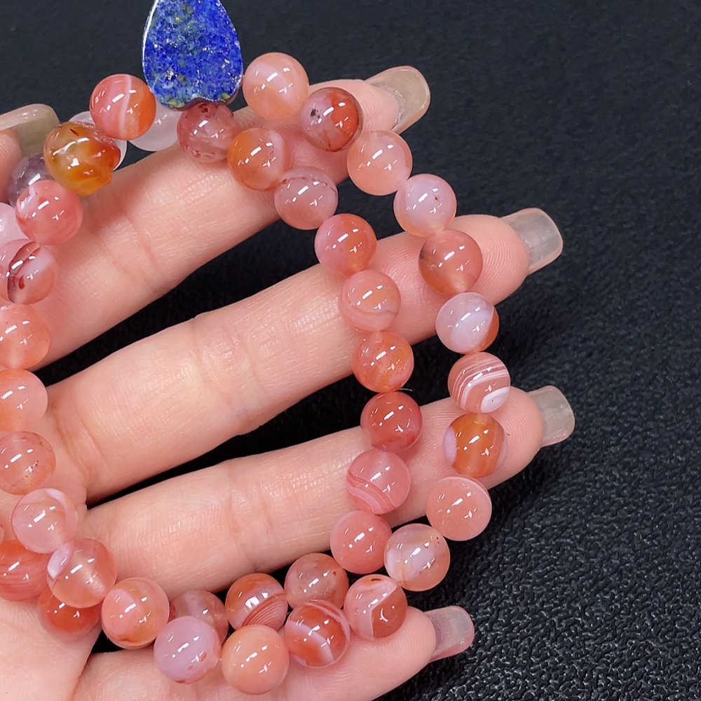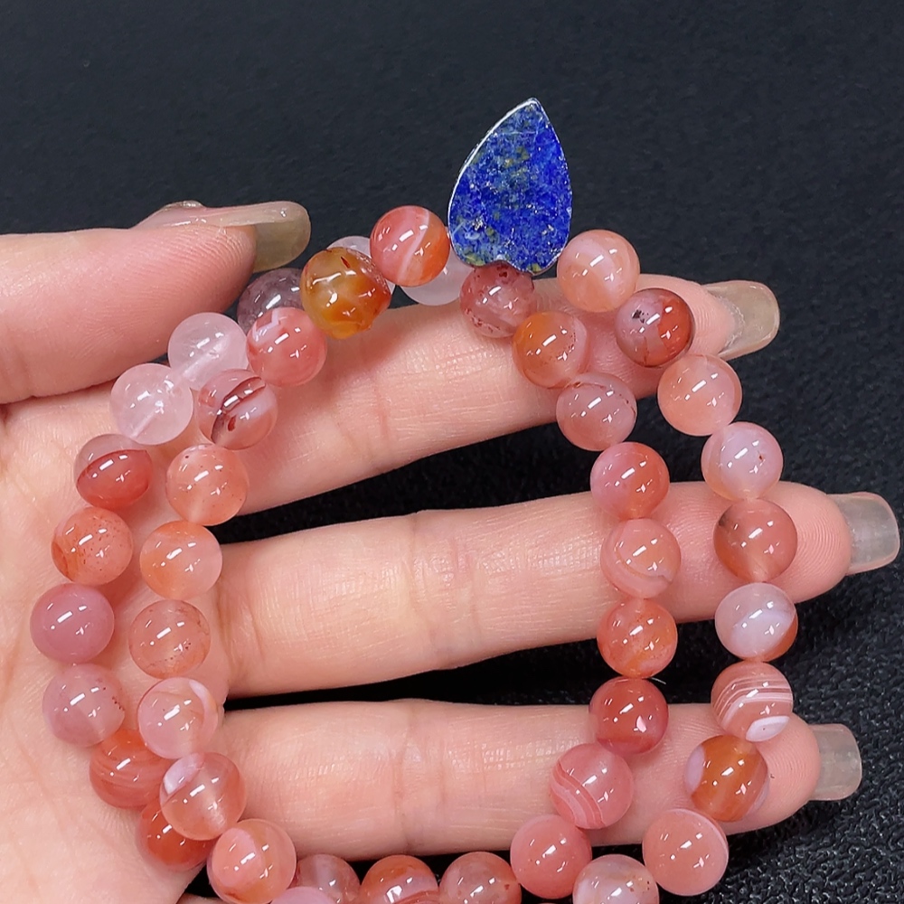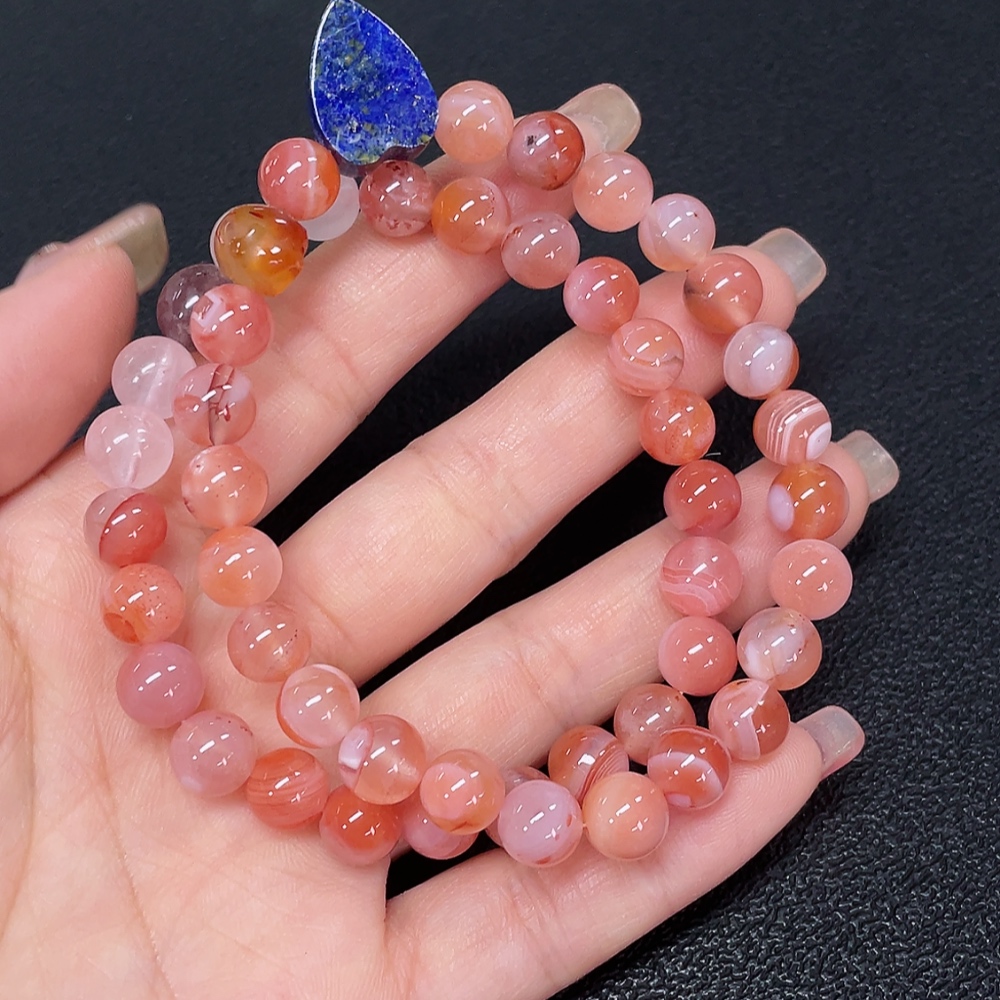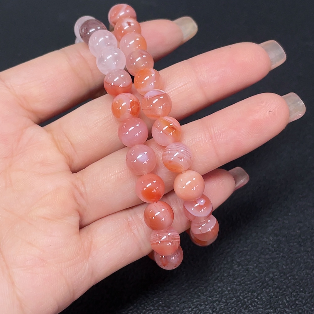 South Red Agate Bracelet with Visible Organic Matter and Possible Non-Natural Accent Stones, Total Weight Approximately 39.5g, Sell as a Lot