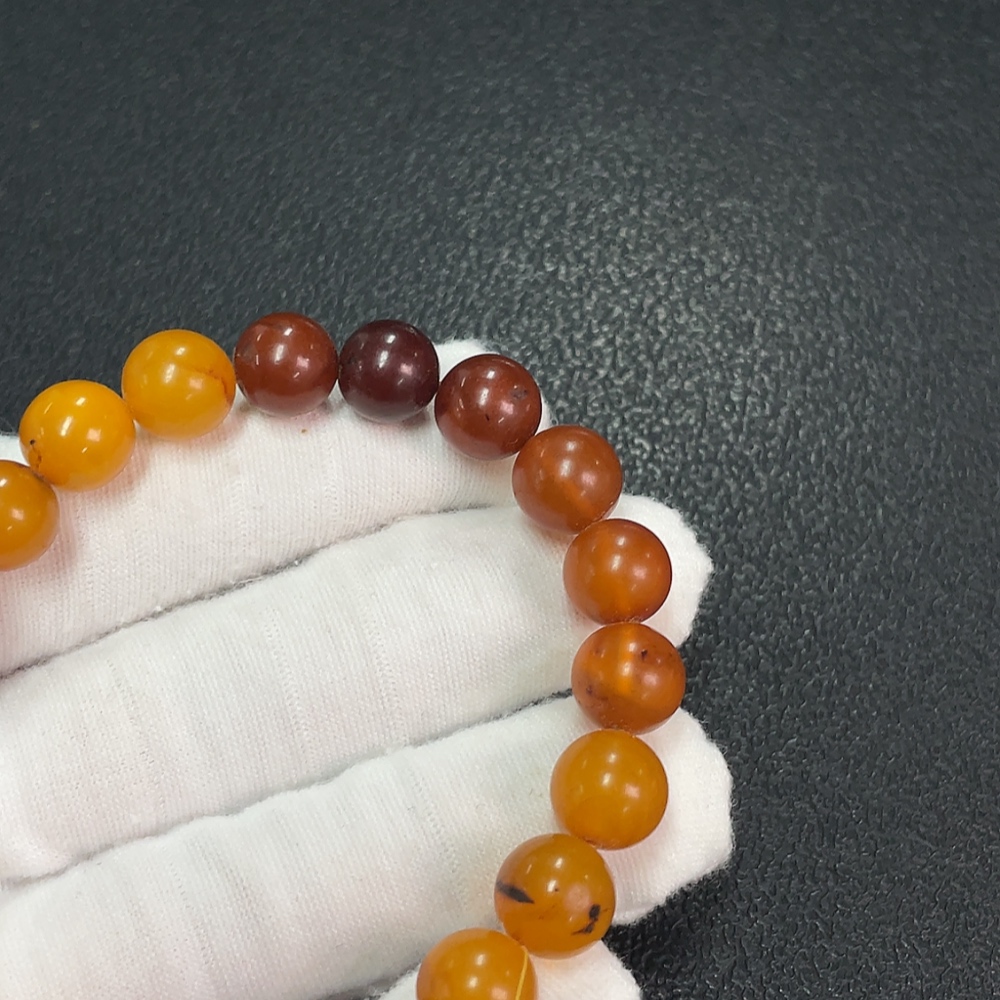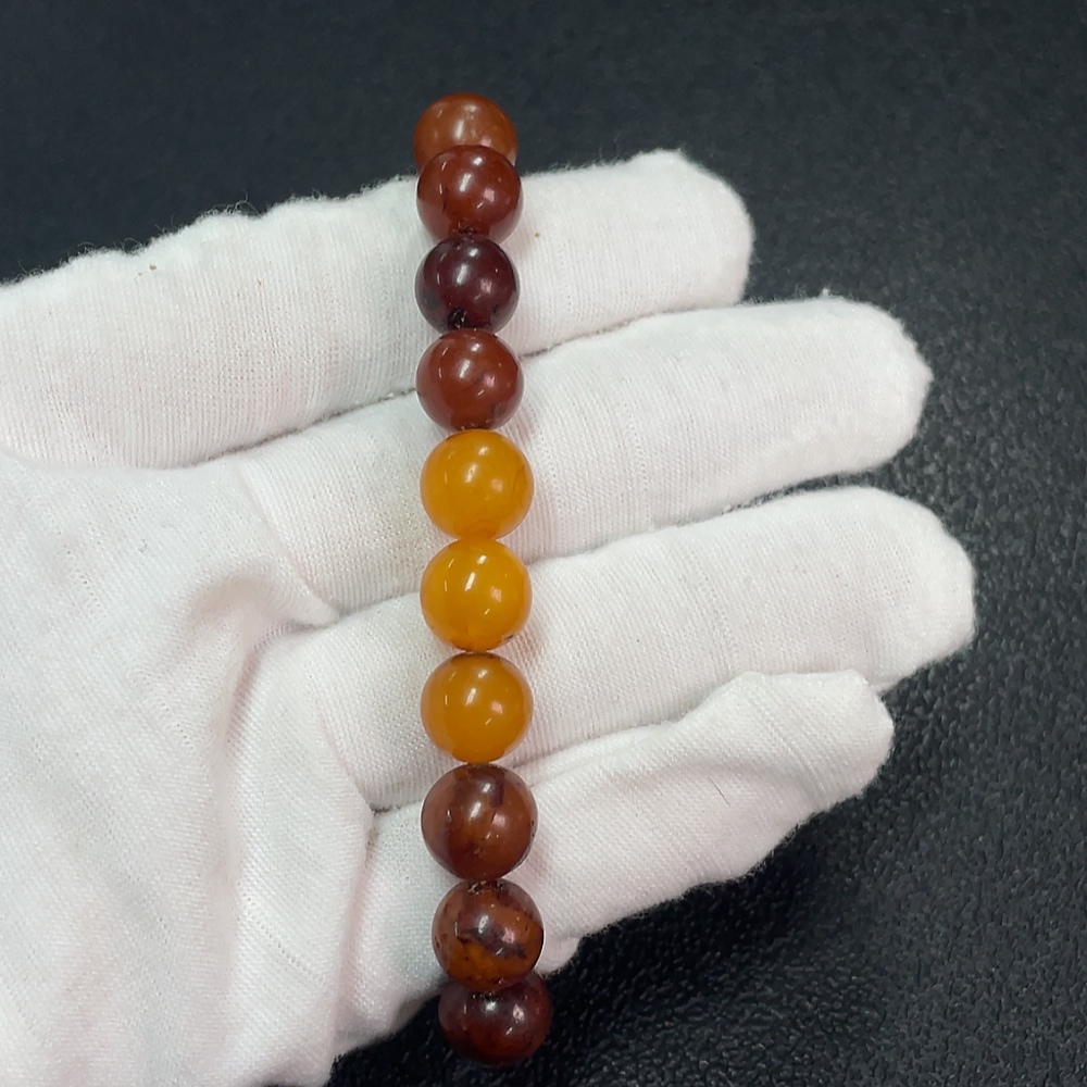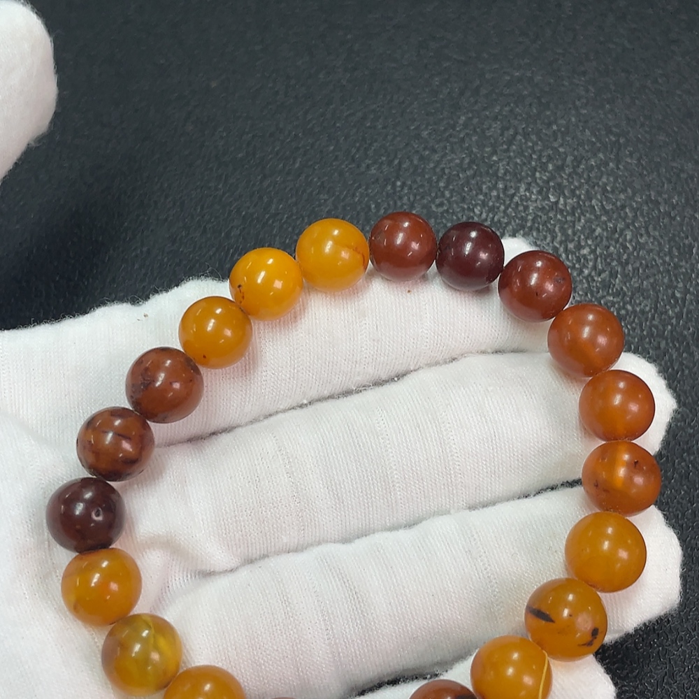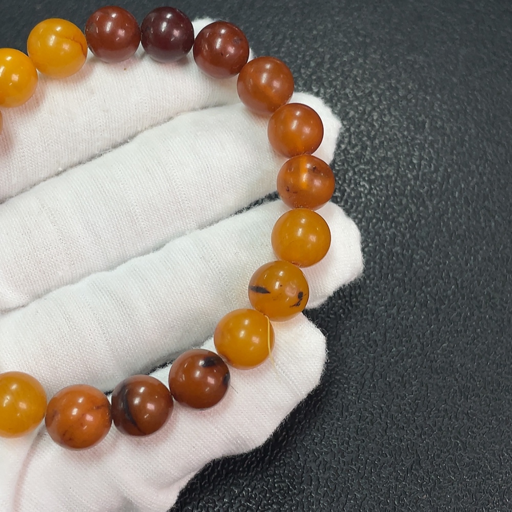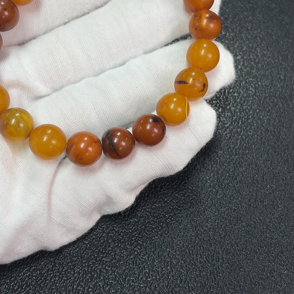 Amber Beeswax Bracelet with Partial Visible Repairs, Total Weight Approximately 10.56g, Size About 9.7mm
