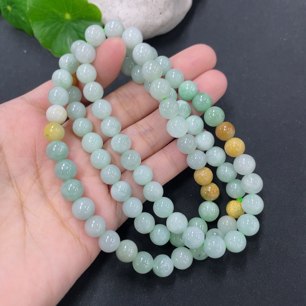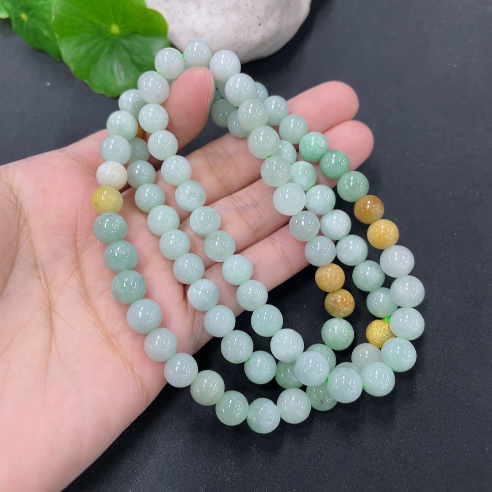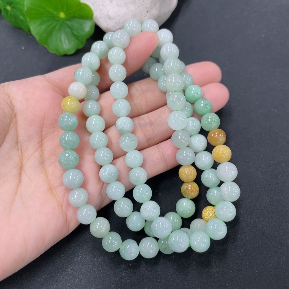 Jadeite Bead Necklace Approx. 7.8mm Non-Gold Total Weight Approx. 66.6g