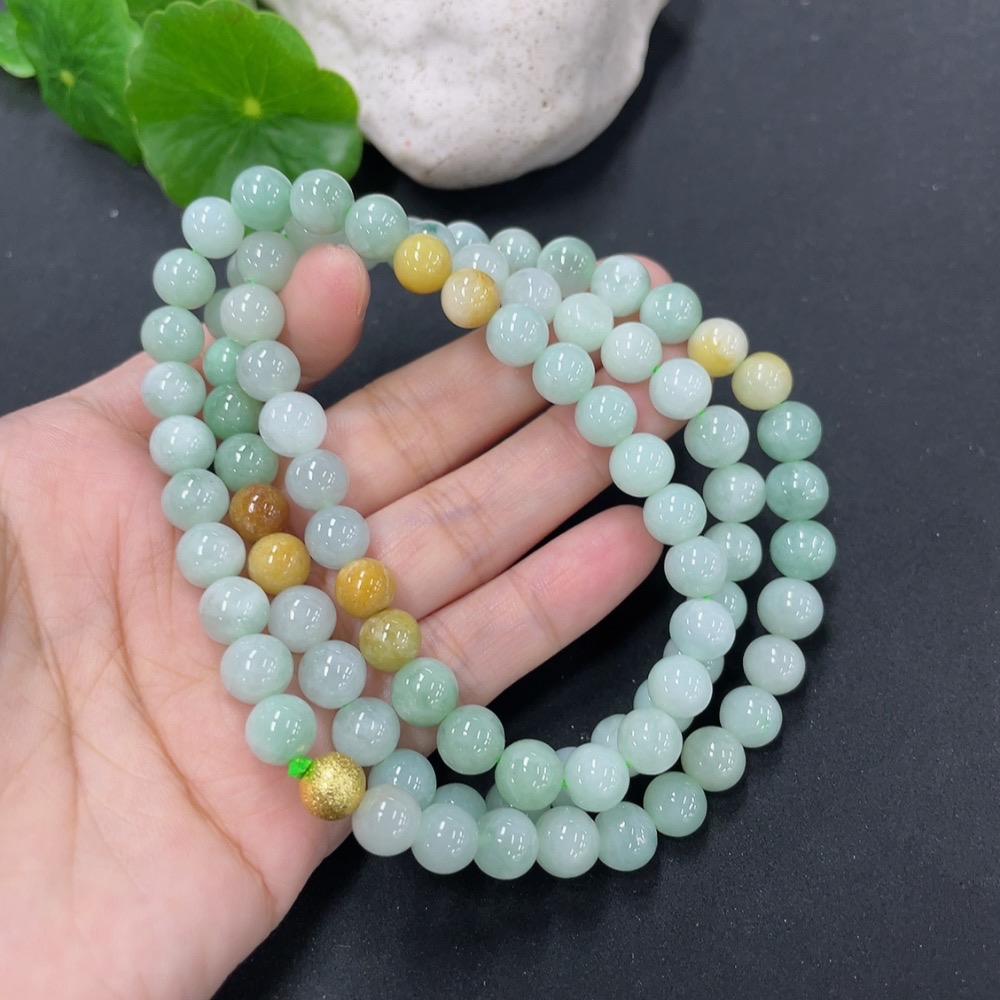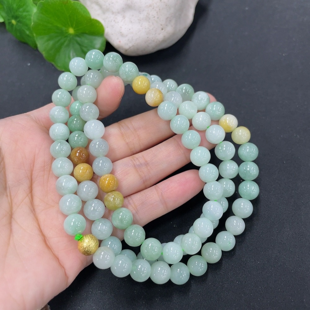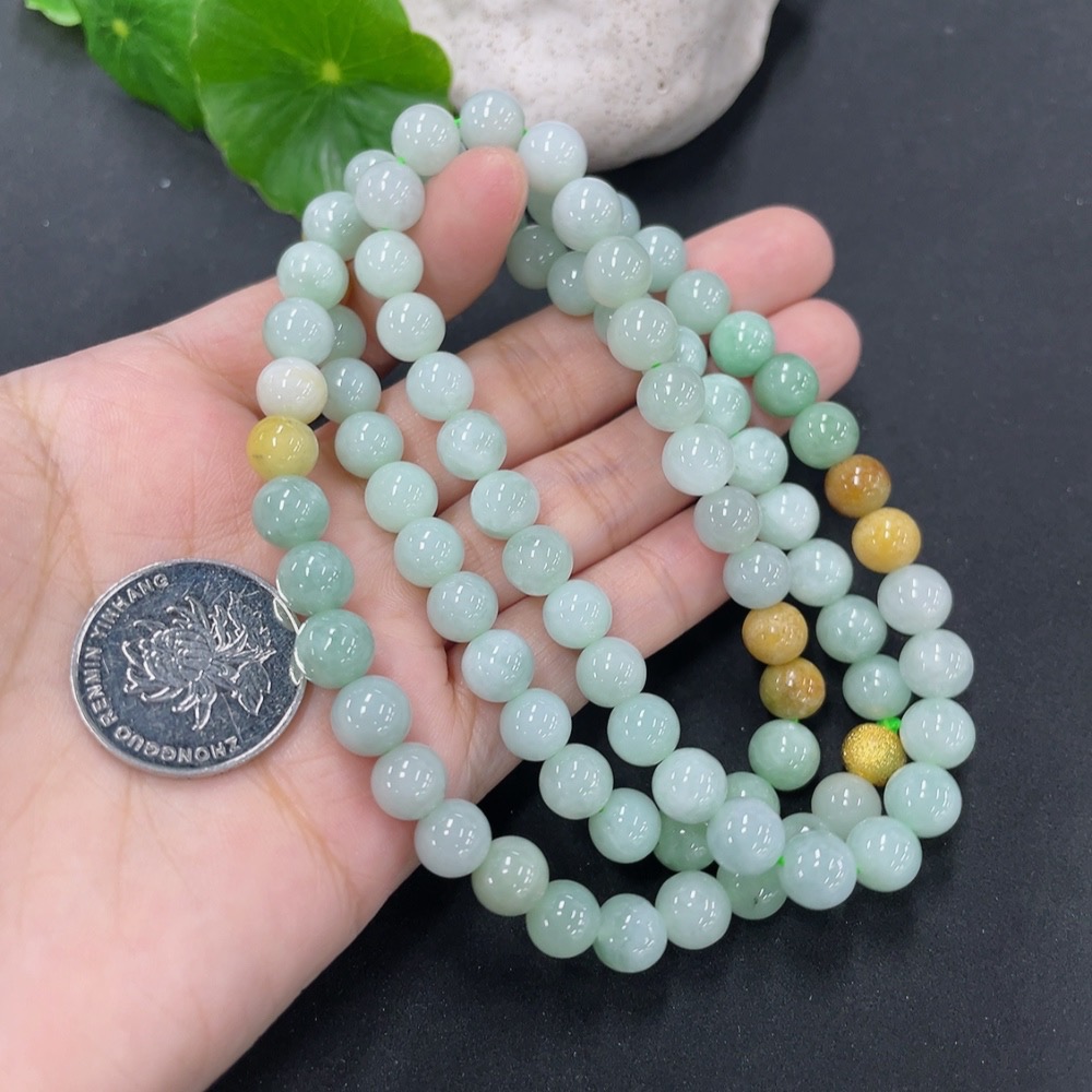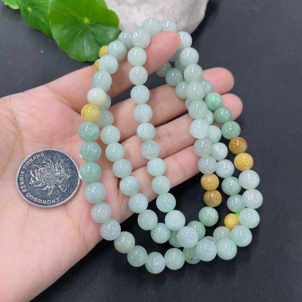 Jadeite Bead Necklace Approx. 7.8mm Non-Gold Total Weight Approx. 66.6g
