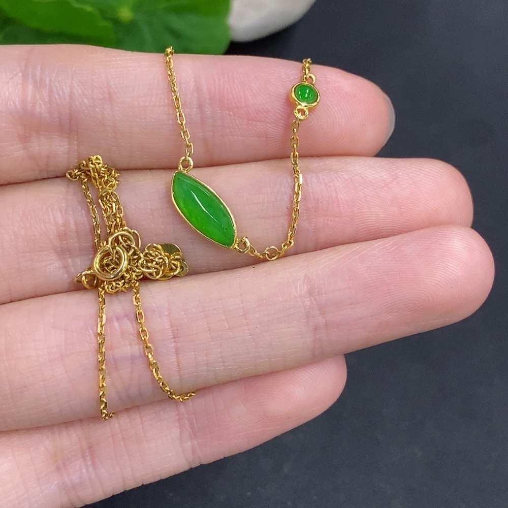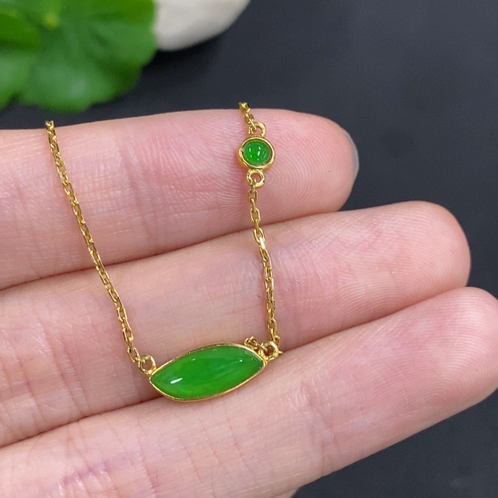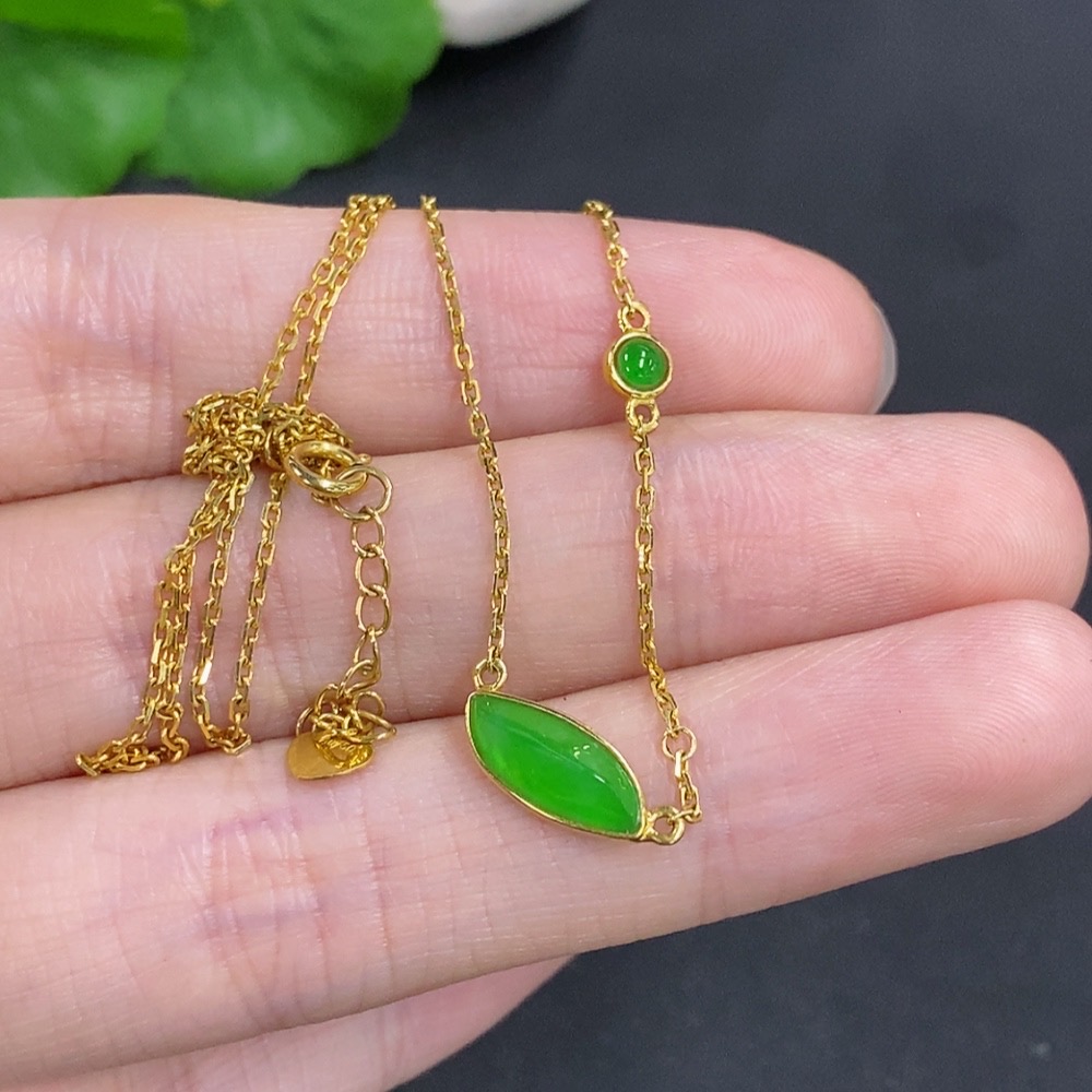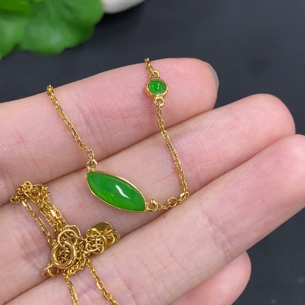 Jadeite Freeform Inlaid Pendant 18k Gold Total Weight Approx. 2.4g (Including Chain)