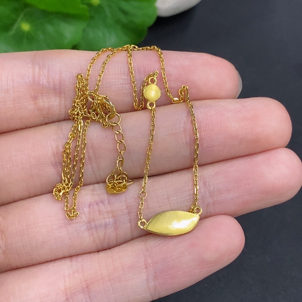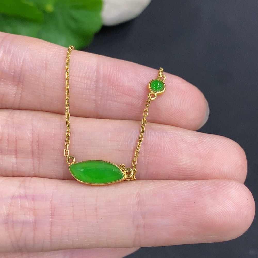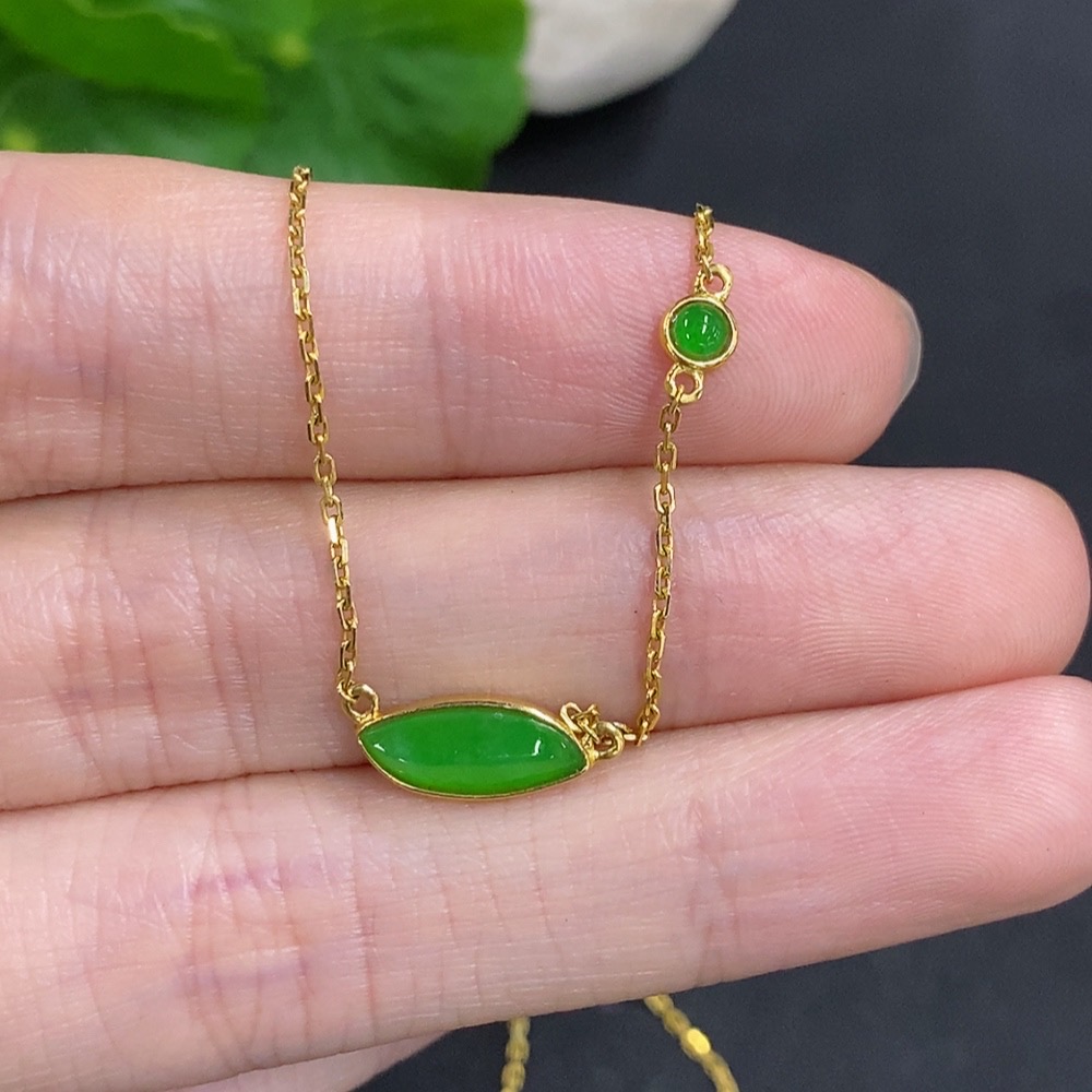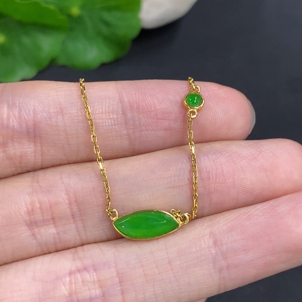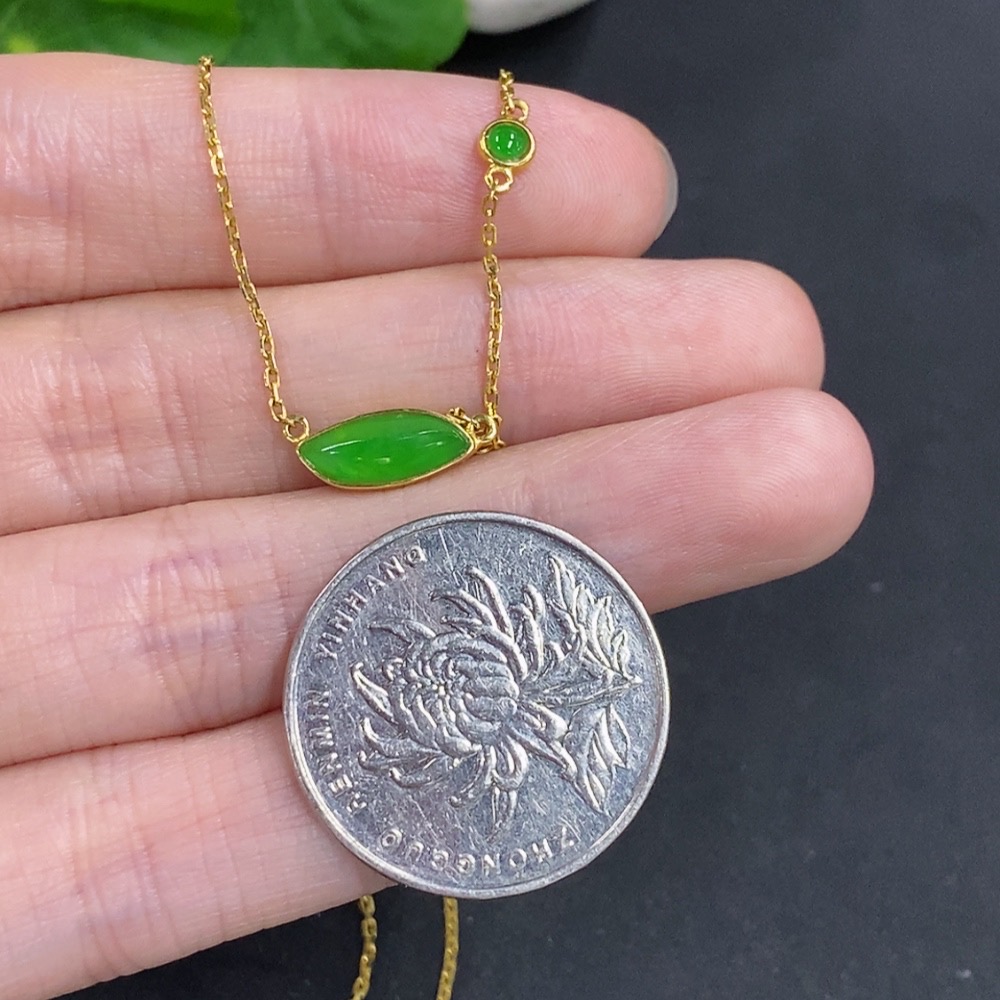 Jadeite Freeform Inlaid Pendant 18k Gold Total Weight Approx. 2.4g (Including Chain)