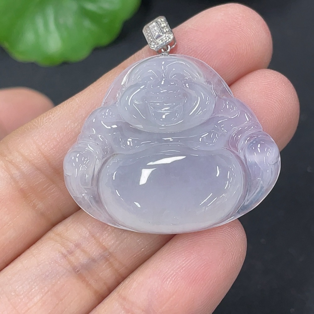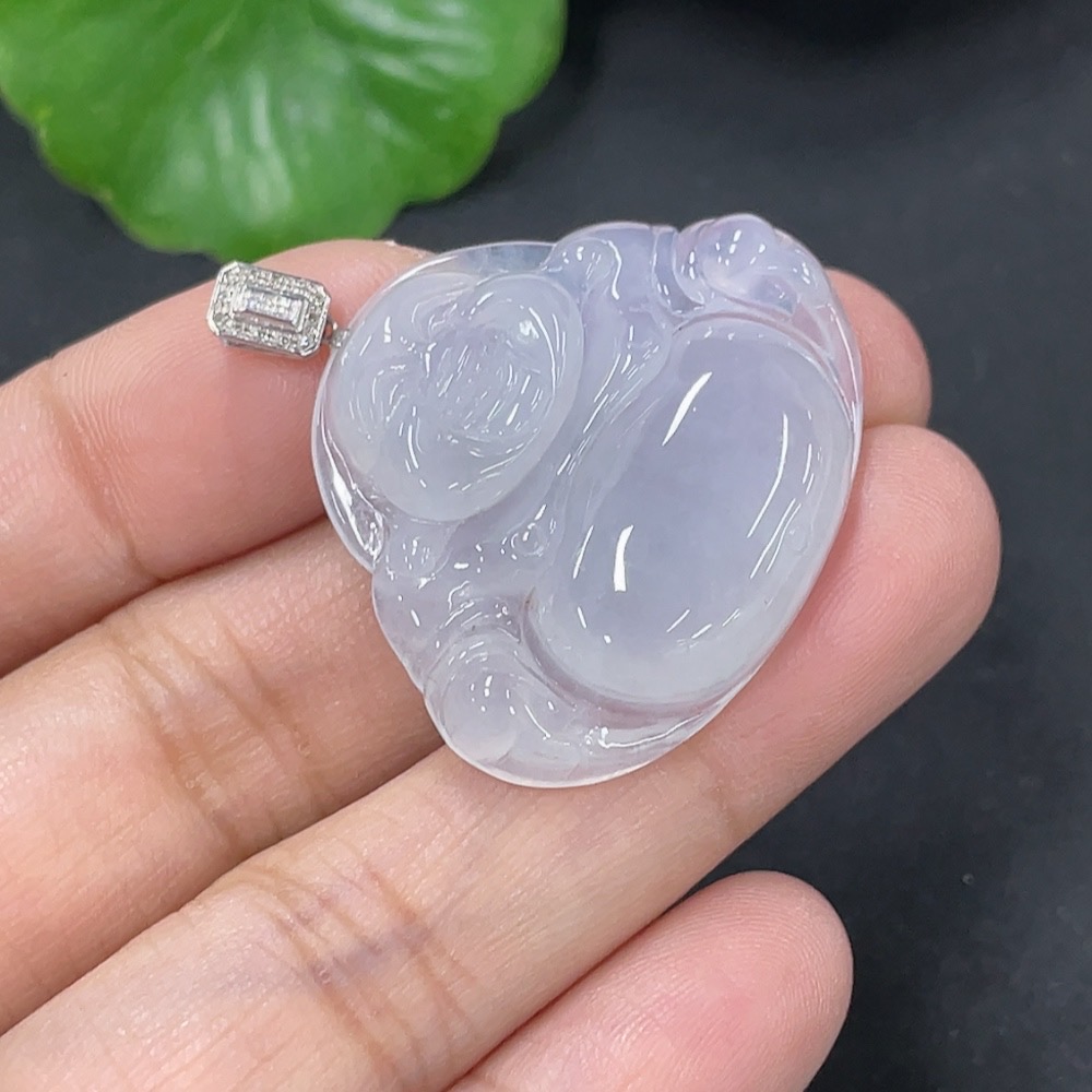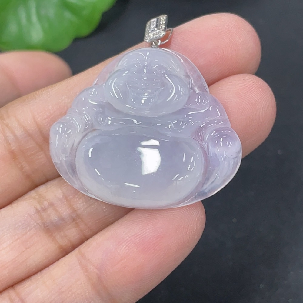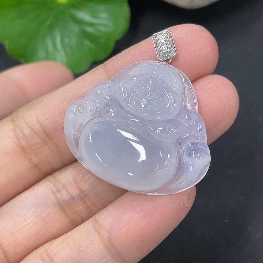Jadeite Pendant Buddha in 18K Gold with Non-Diamond (too small to confirm natural origin) Total Weight Approx. 7.23g