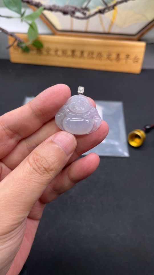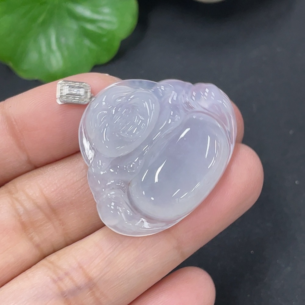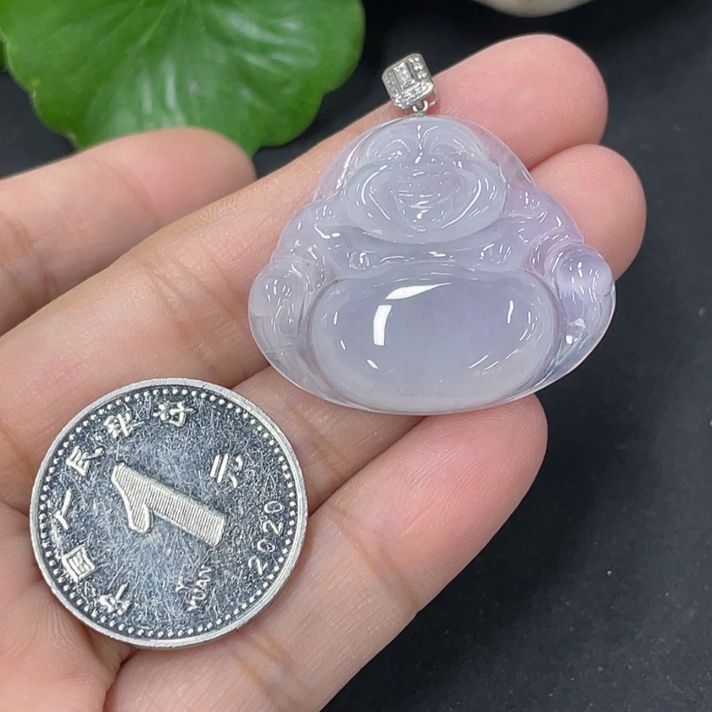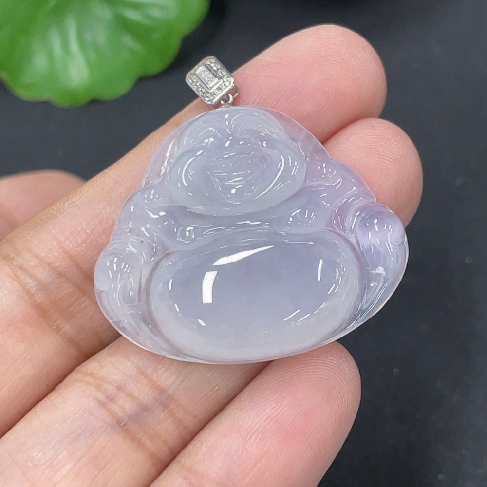 Jadeite Pendant Buddha in 18K Gold with Non-Diamond (too small to confirm natural origin) Total Weight Approx. 7.23g