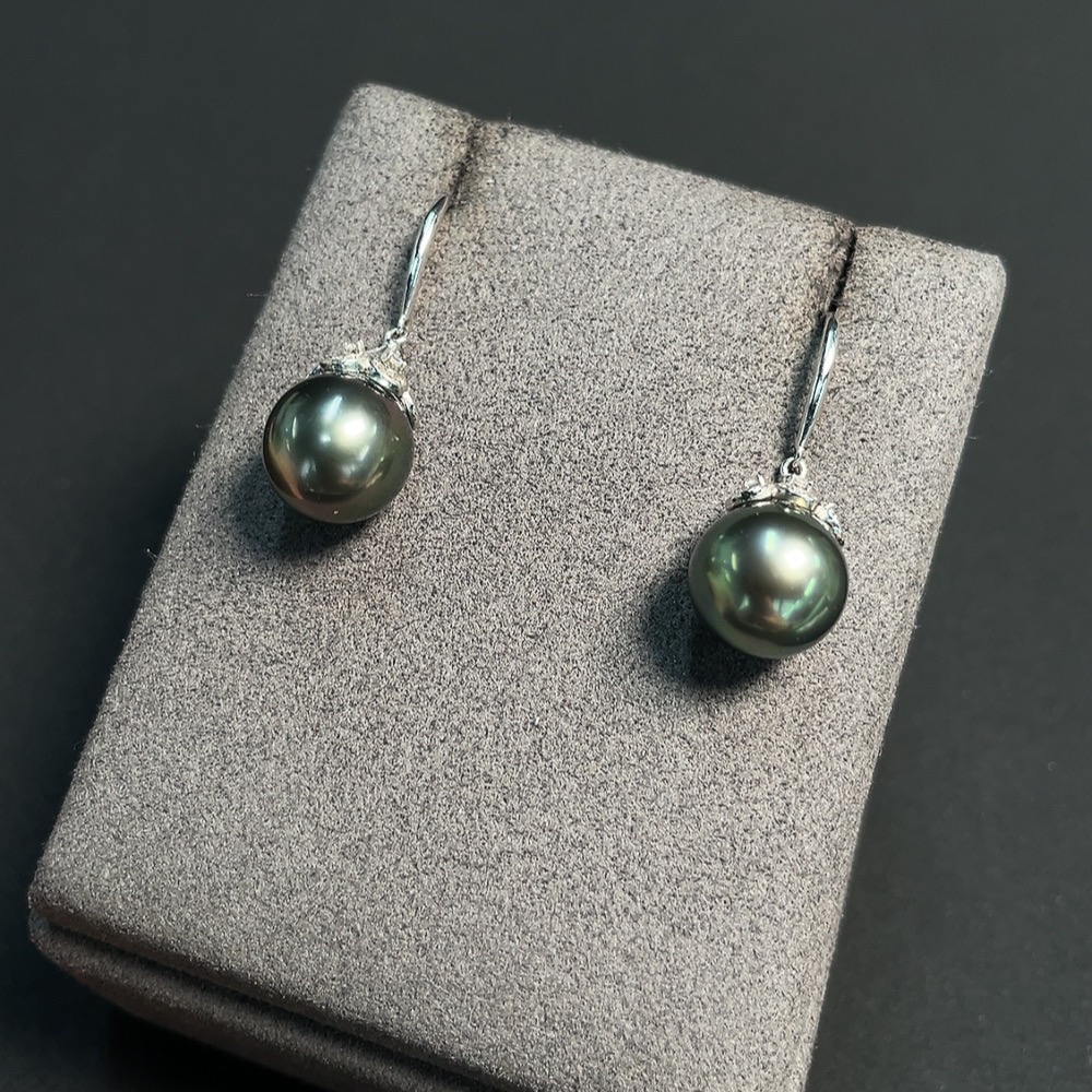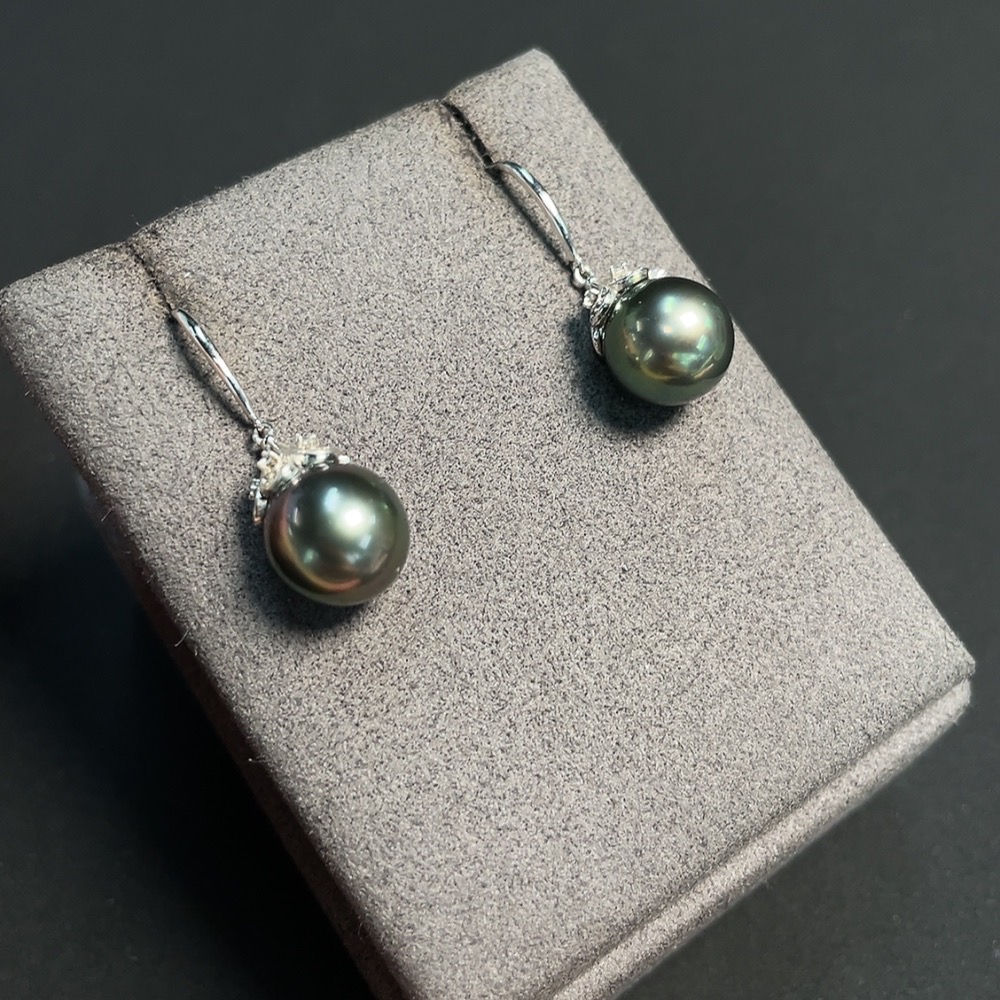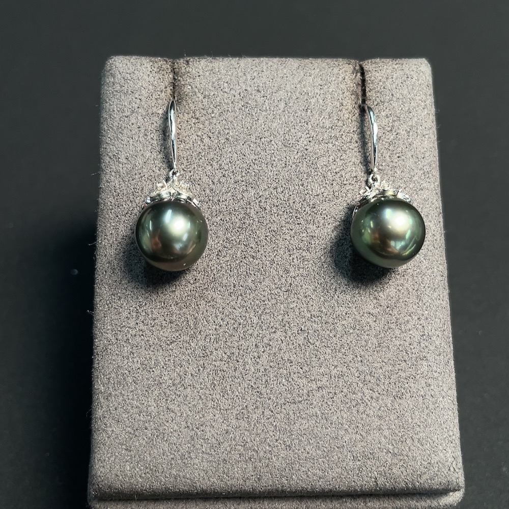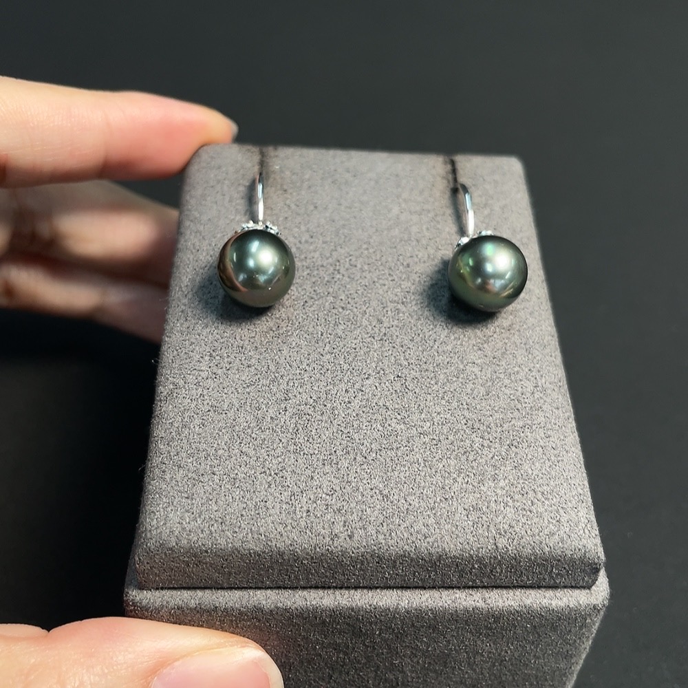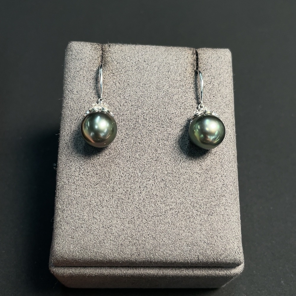 Seawater Pearl Inlaid Earrings Non-Gold Inlaid Approx. 10.7mm Total Weight Approx. 5.25g