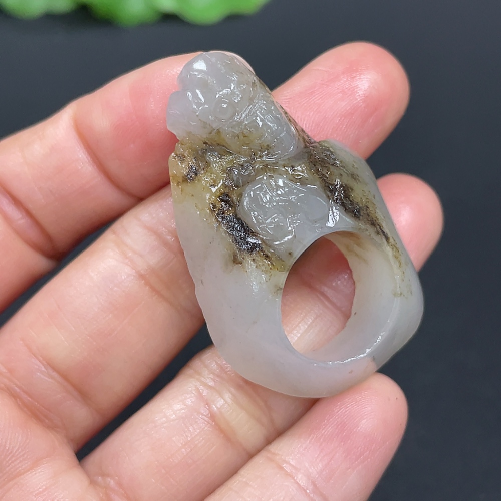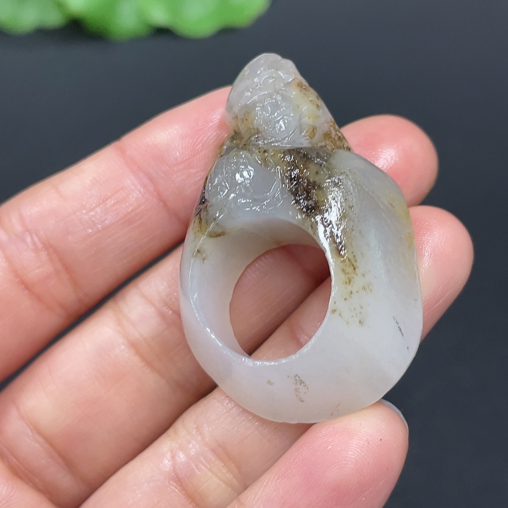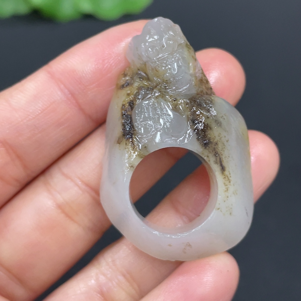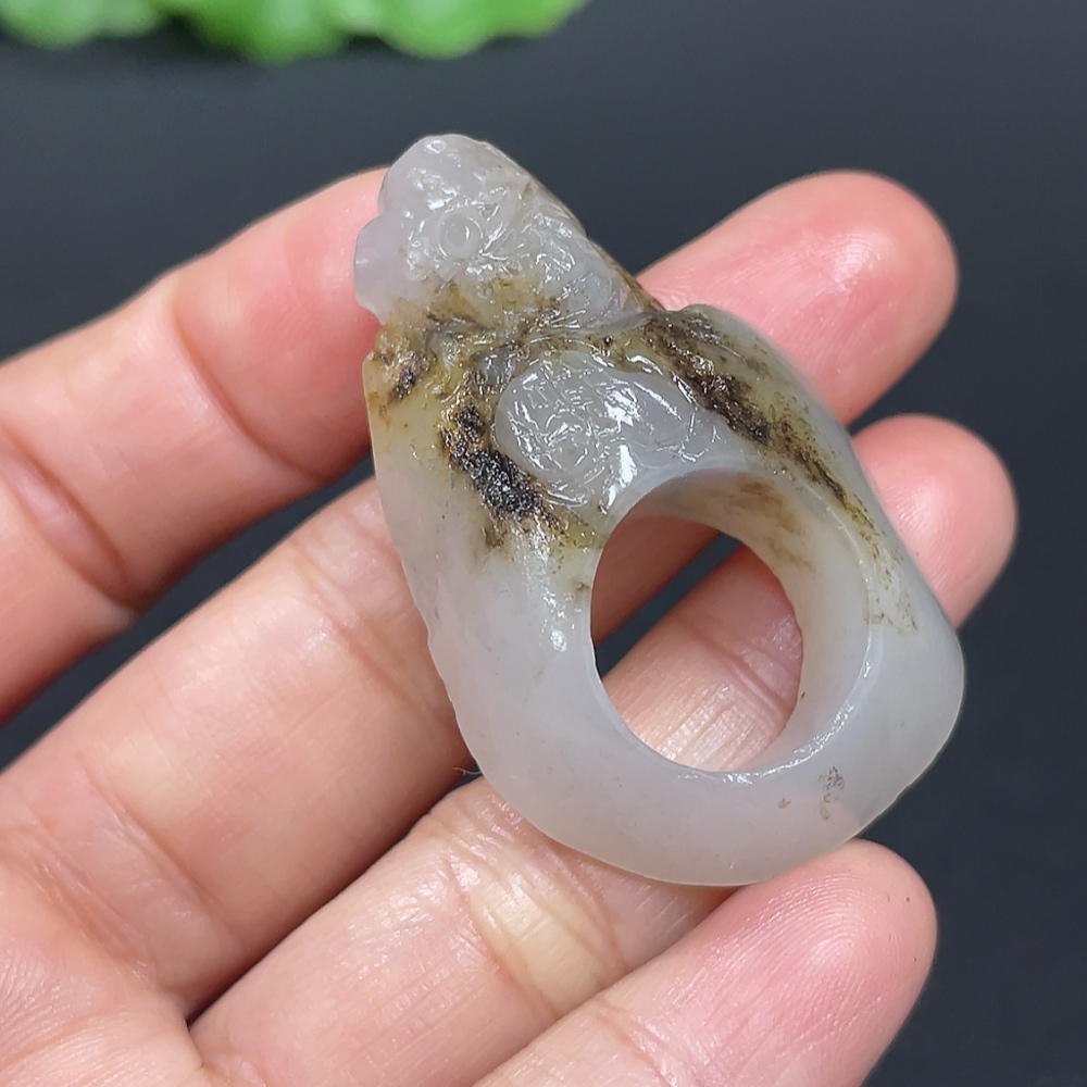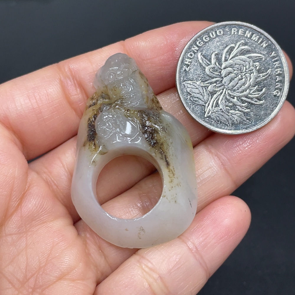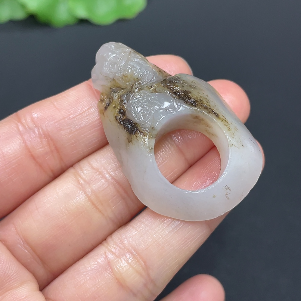 Hetian Jade Pendant - Auspicious Beast Ring, total weight approx. 13.8g, skin color origin undetermined