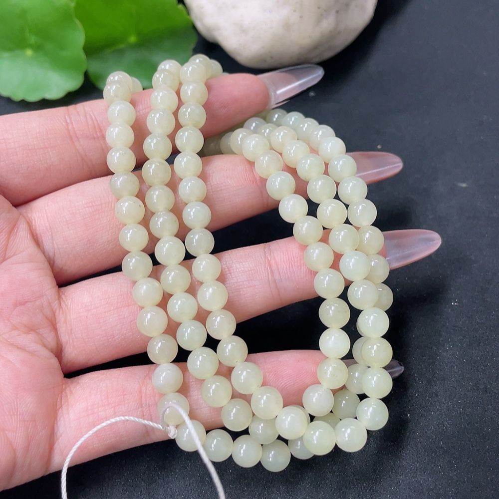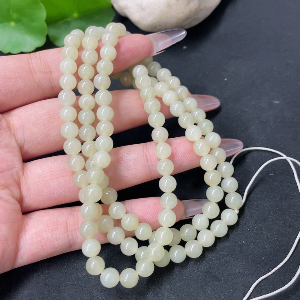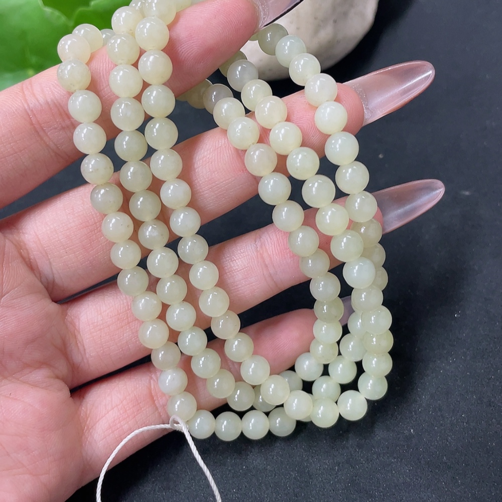 Hetian Jade Bead Necklace, Approx. 5.8mm, Total Weight Approx. 35.9g
