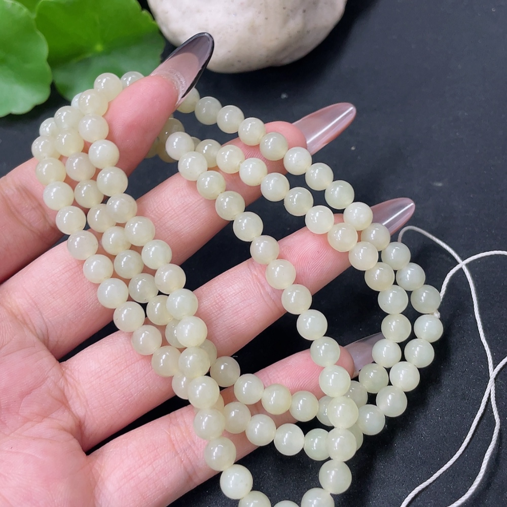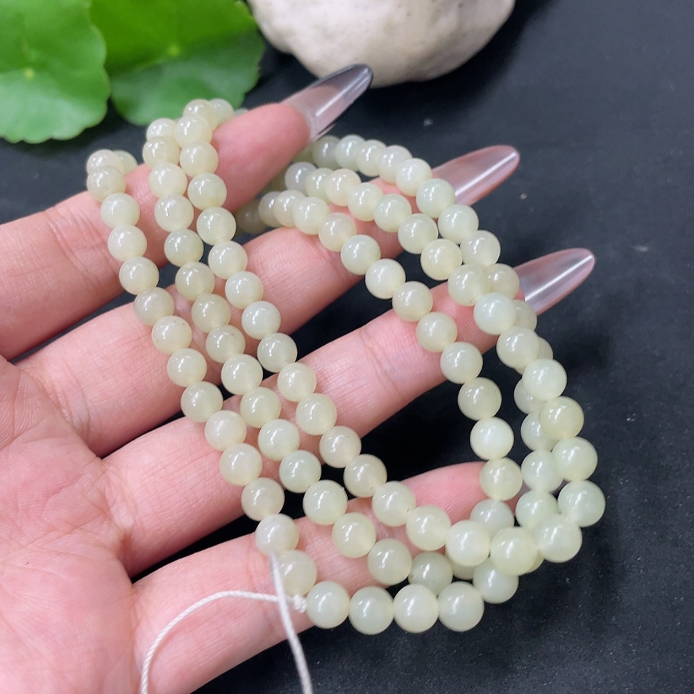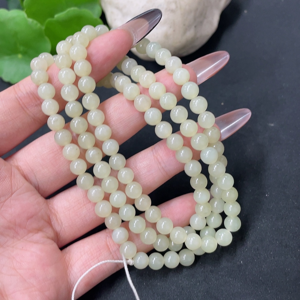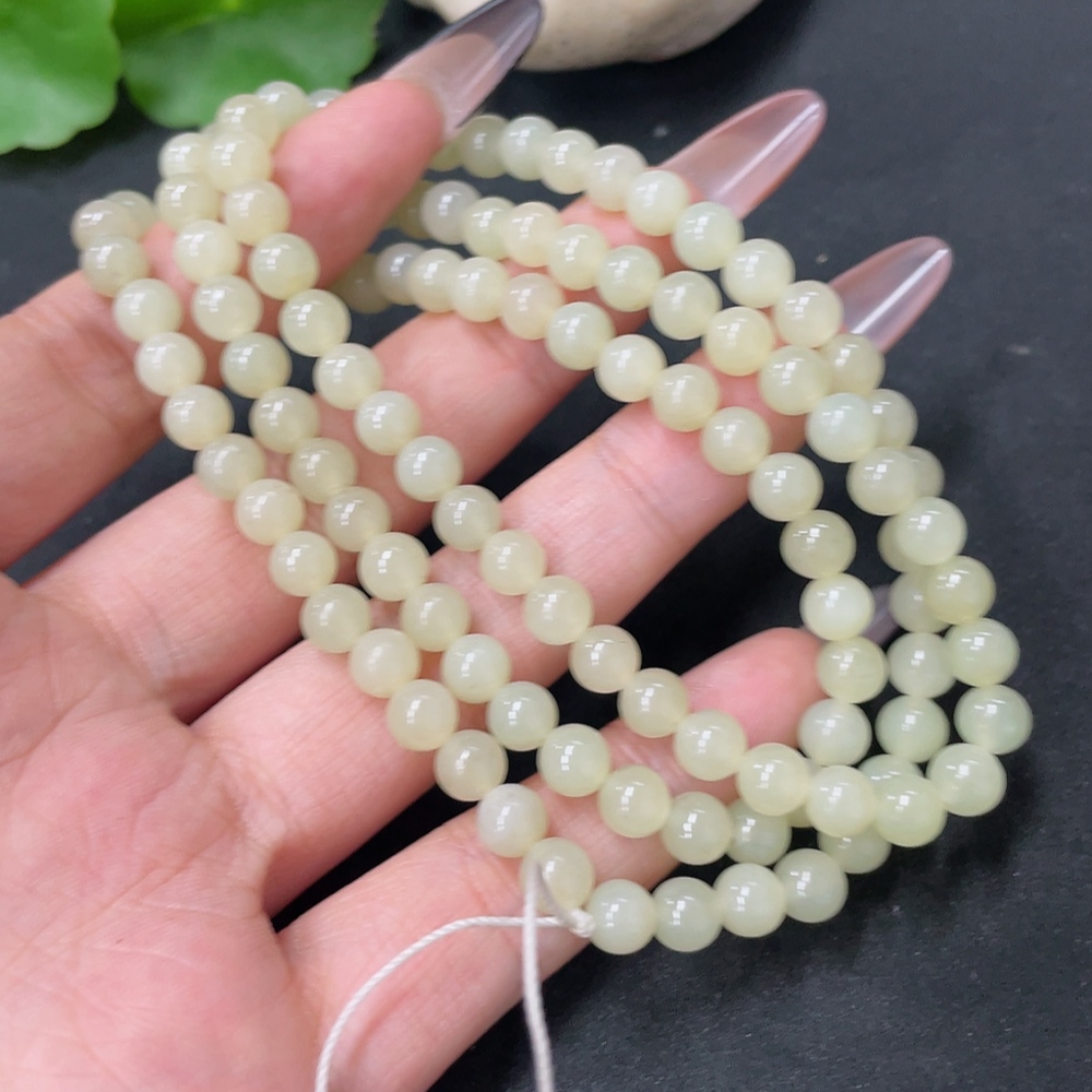 Hetian Jade Bead Necklace, Approx. 5.8mm, Total Weight Approx. 35.9g