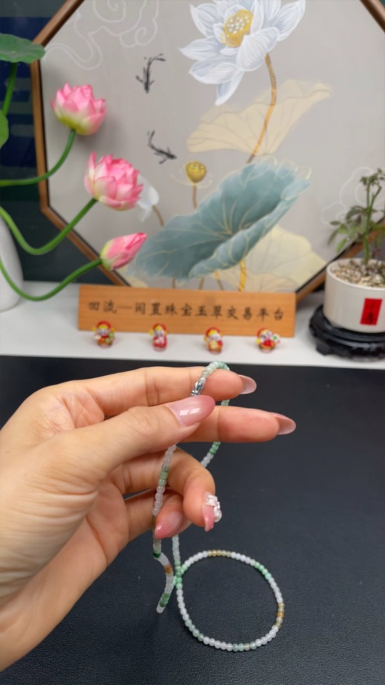 Jadeite Bead Necklace Approx. 3.6mm Total Weight Approx. 13.1g Non-Gold Setting Color Origin Undetermined