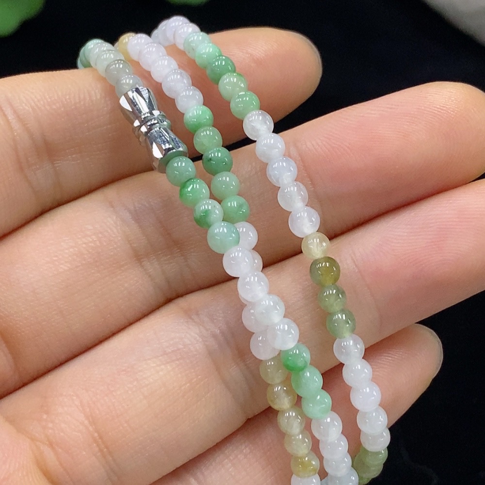 Trezaar - Jadeite Bead Necklace Approx. 3.6mm Total Weight Approx. 13.1g Non-Gold Setting Color Origin Undetermined