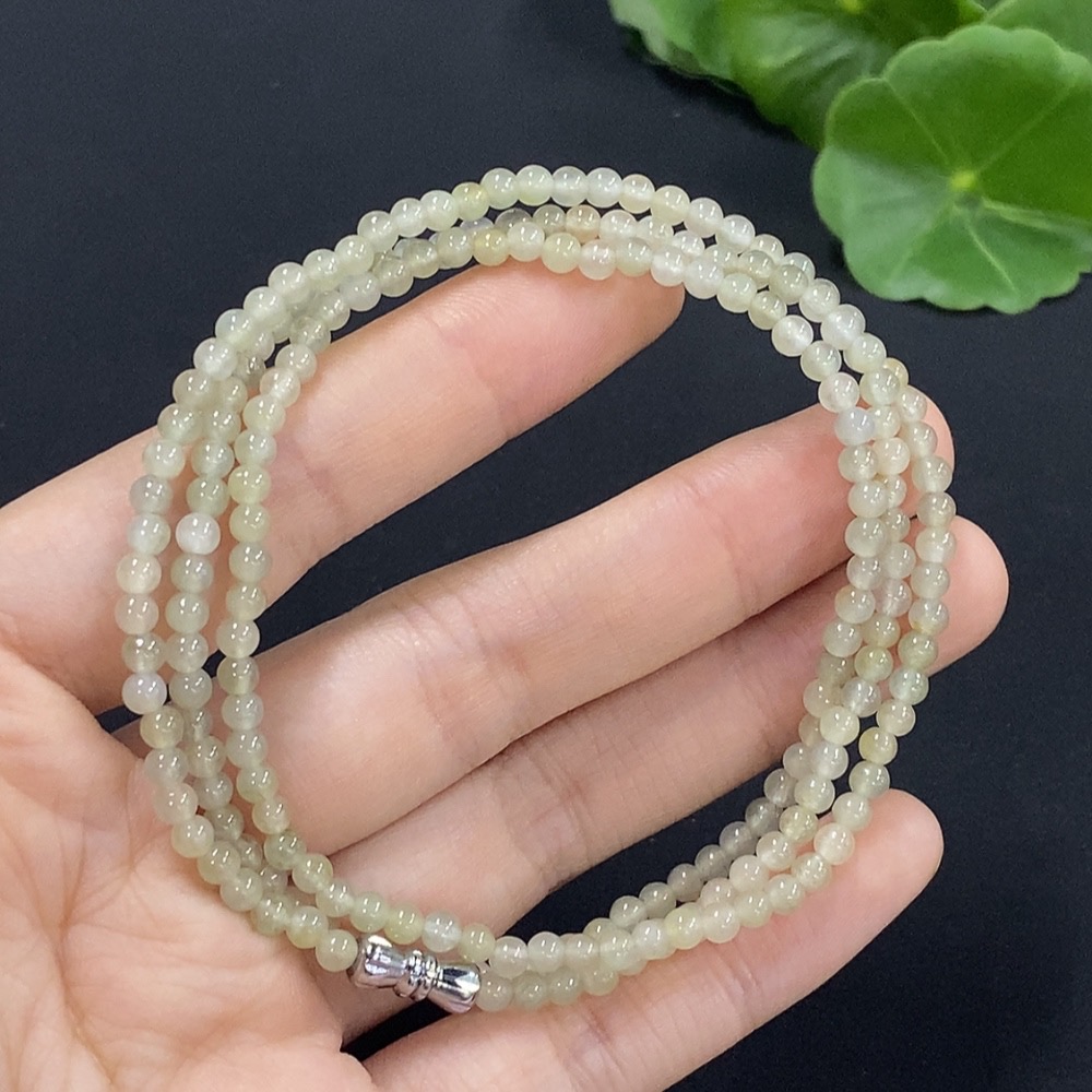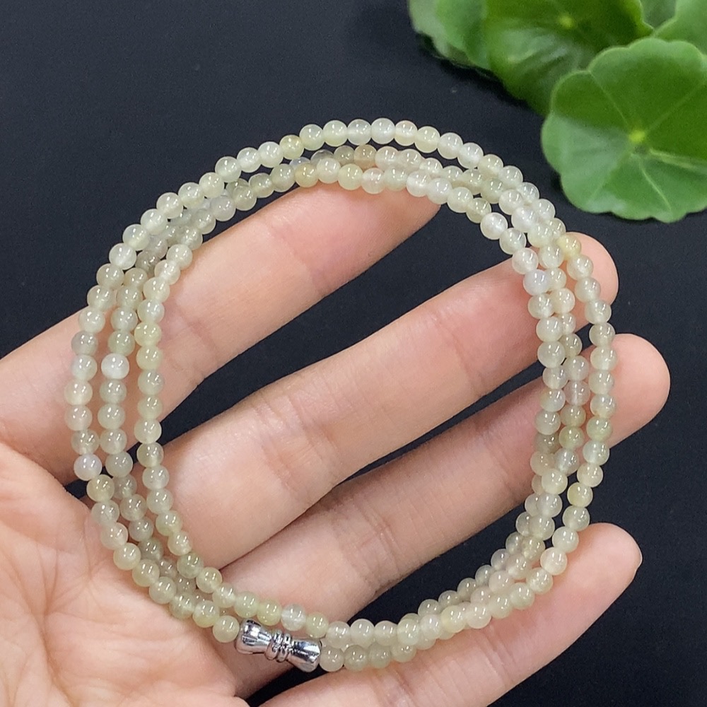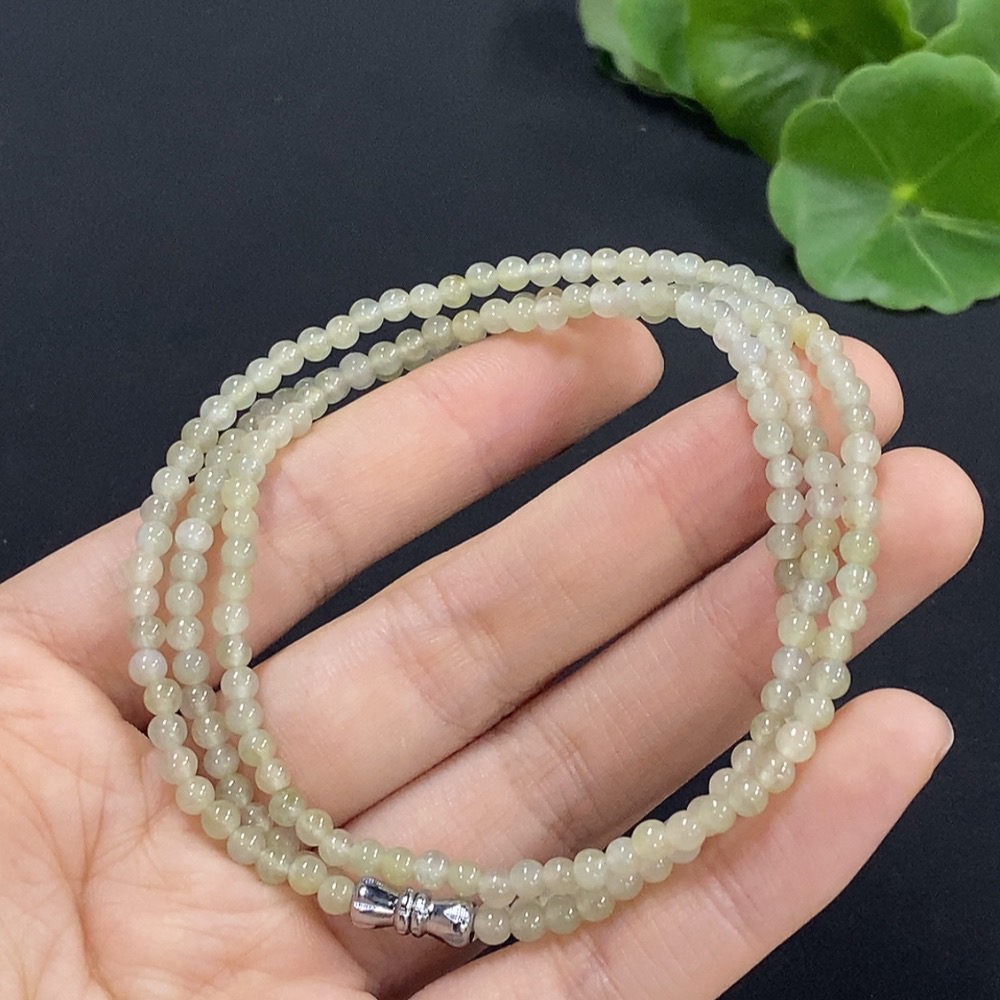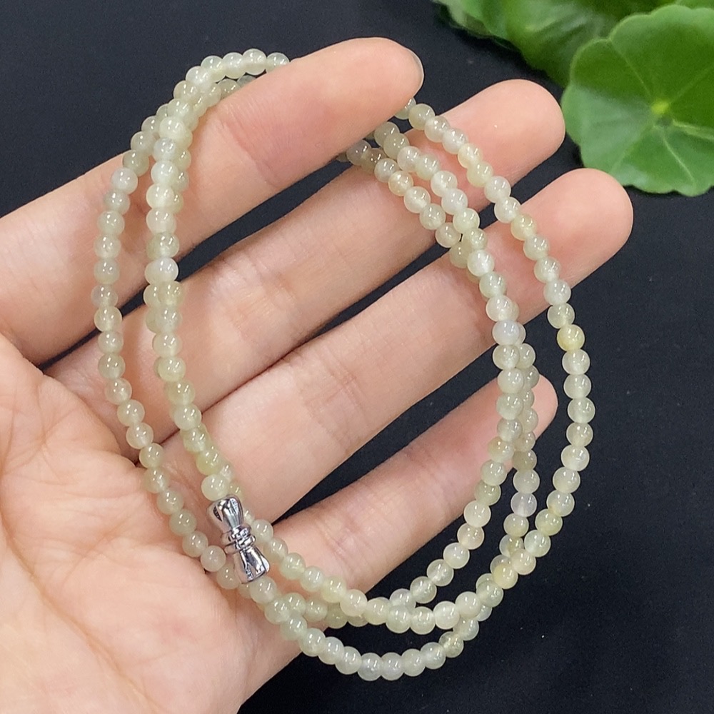 Jadeite Bead Necklace Approx. 3.5mm Total Weight Approx. 12.8g (Non-Gold Inlaid)