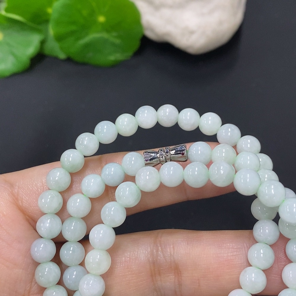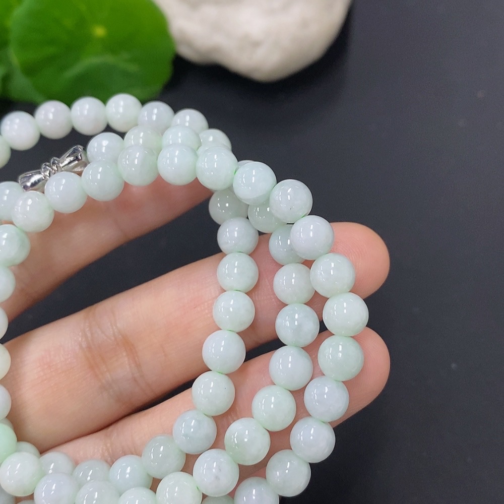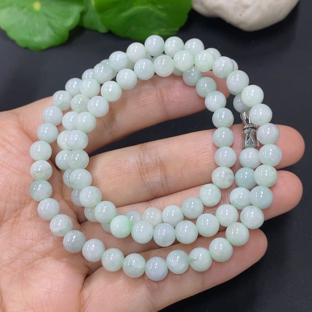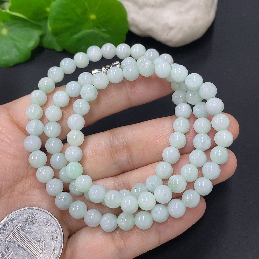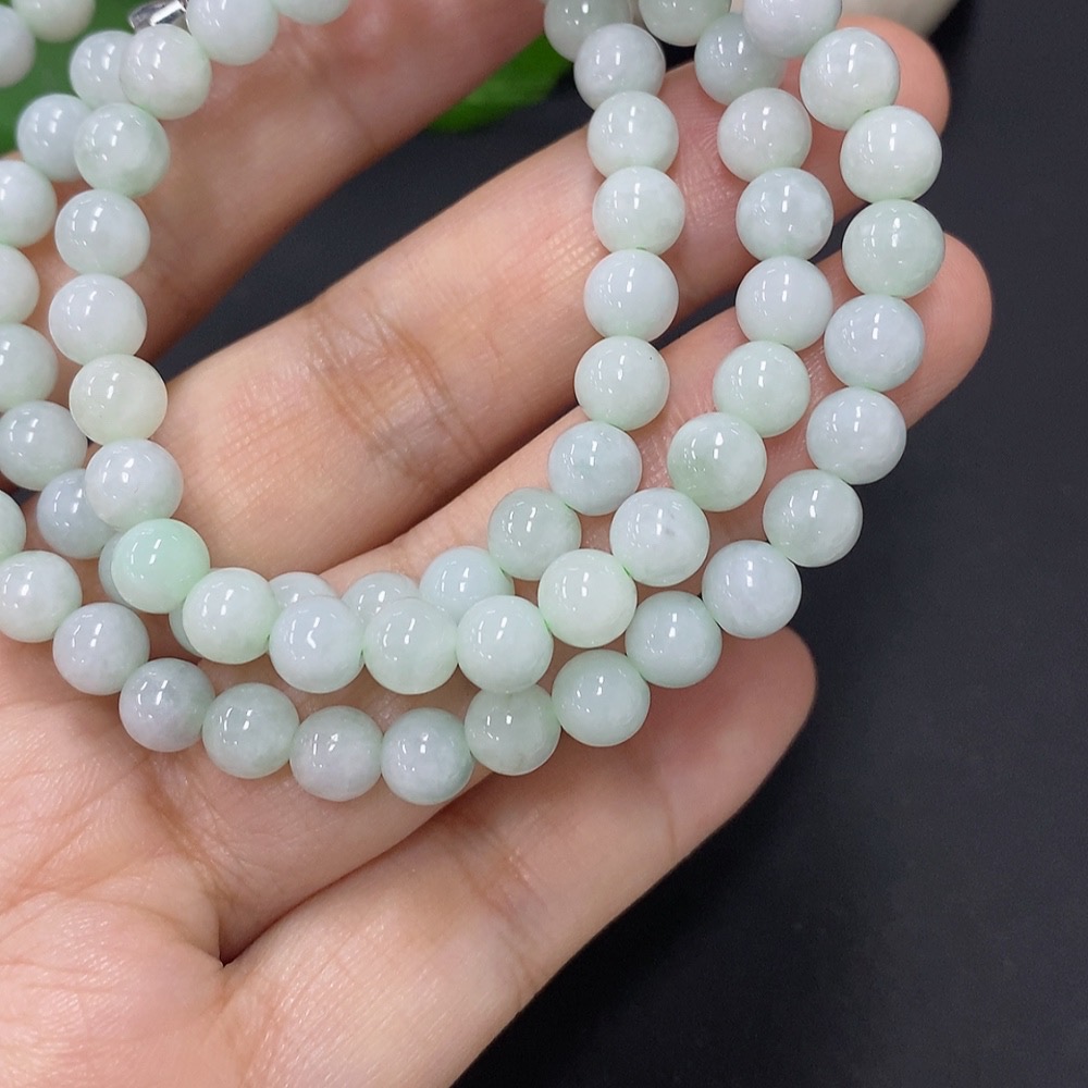 Jadeite Bead Necklace Approx. 6mm Non-Gold Total Weight Approx. 35.43g