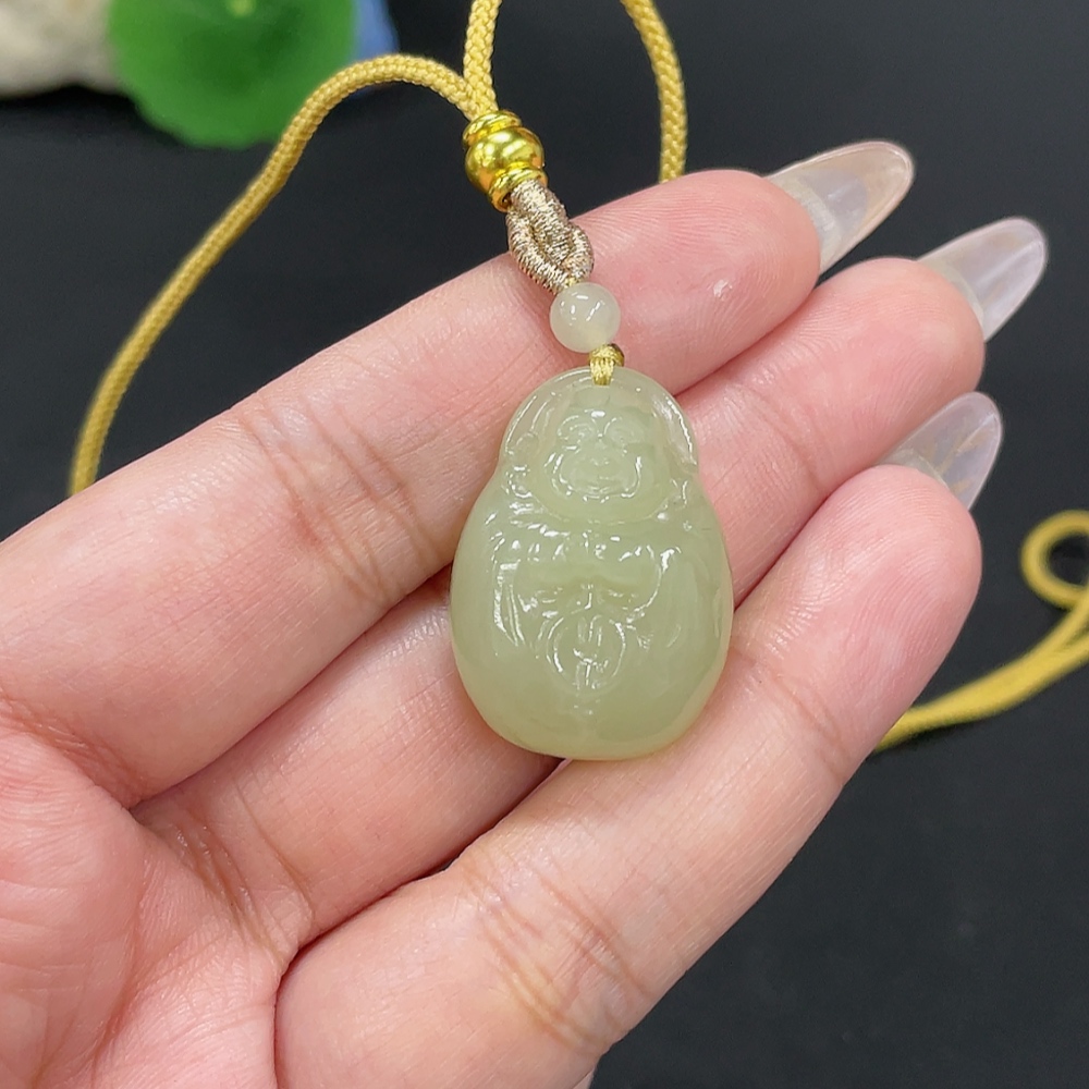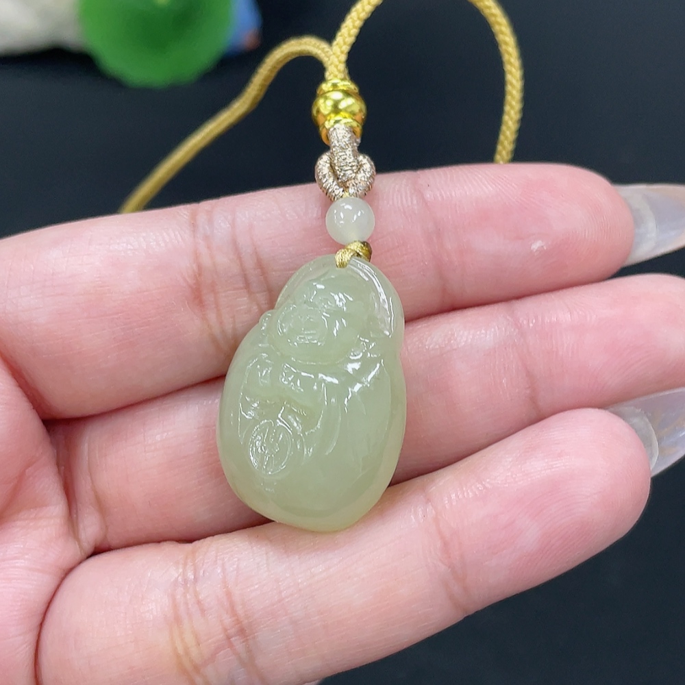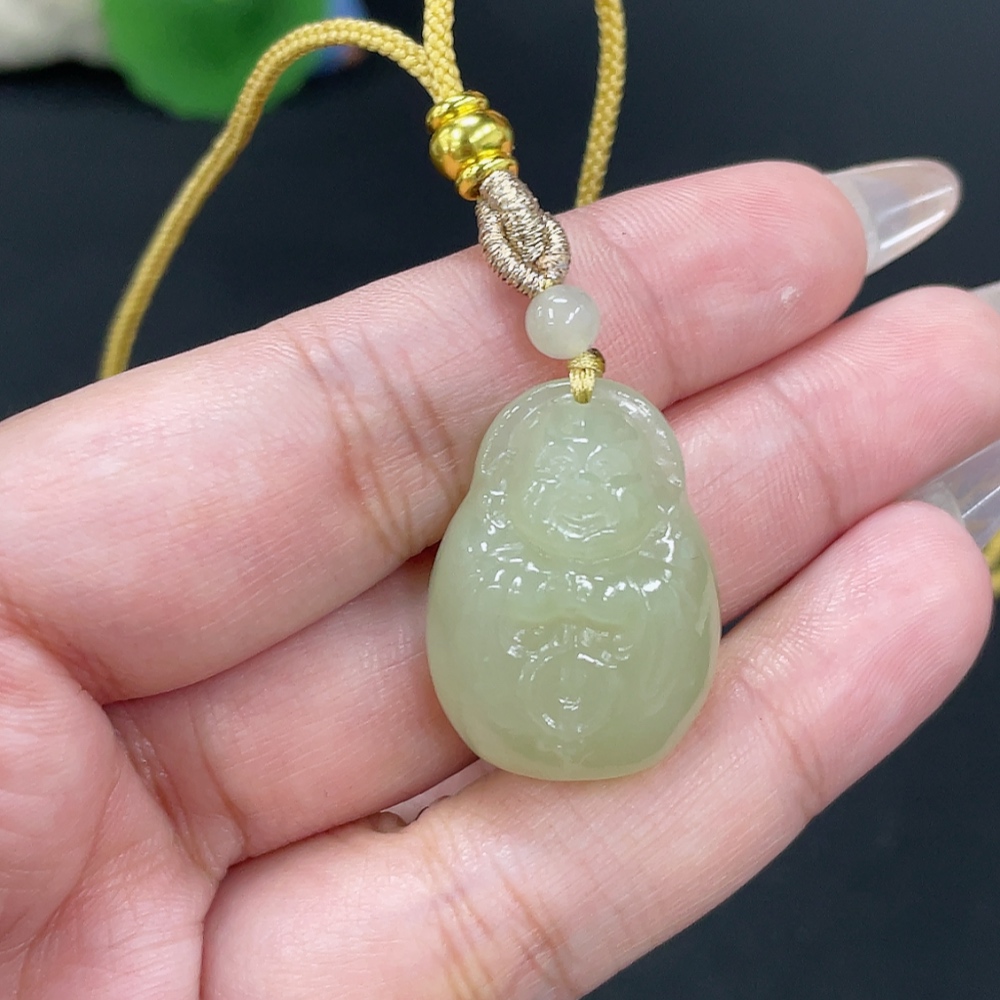 Hetian Jade Pendant, God of Wealth, Total Weight Approx. [Including Rope] 12g