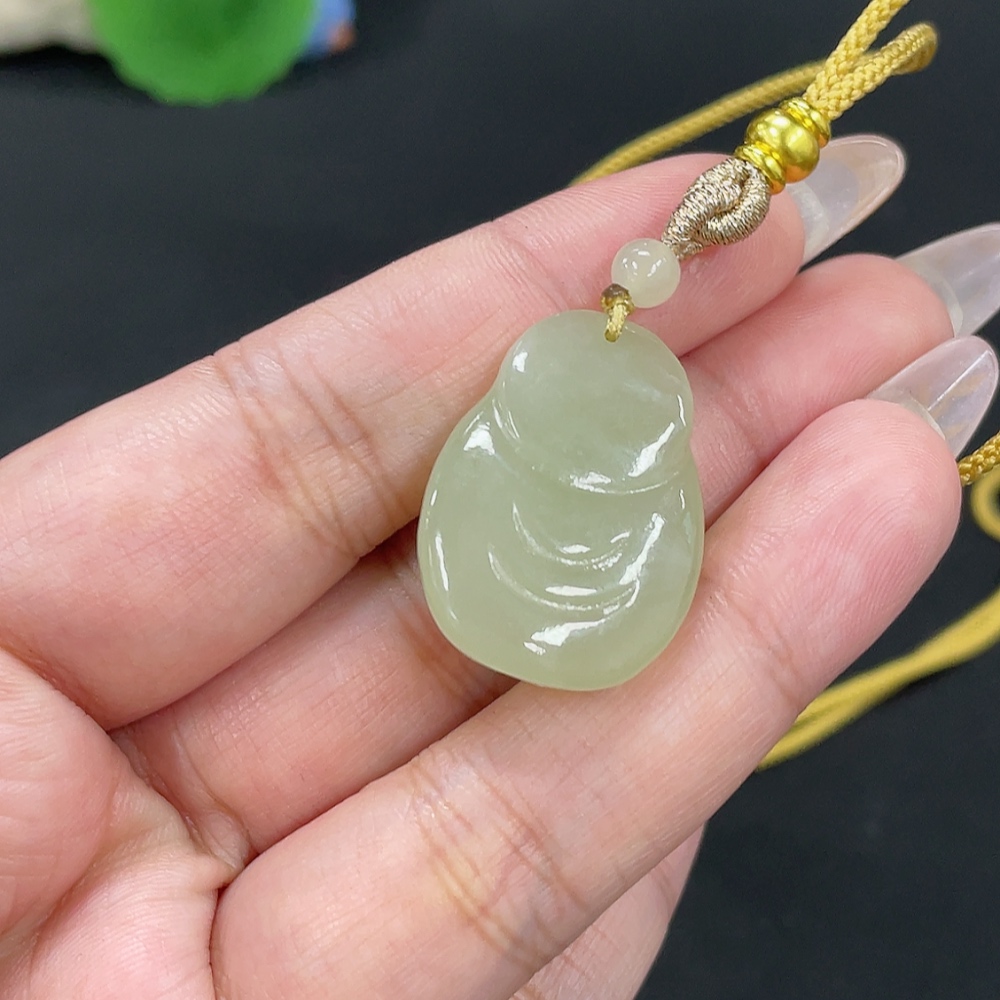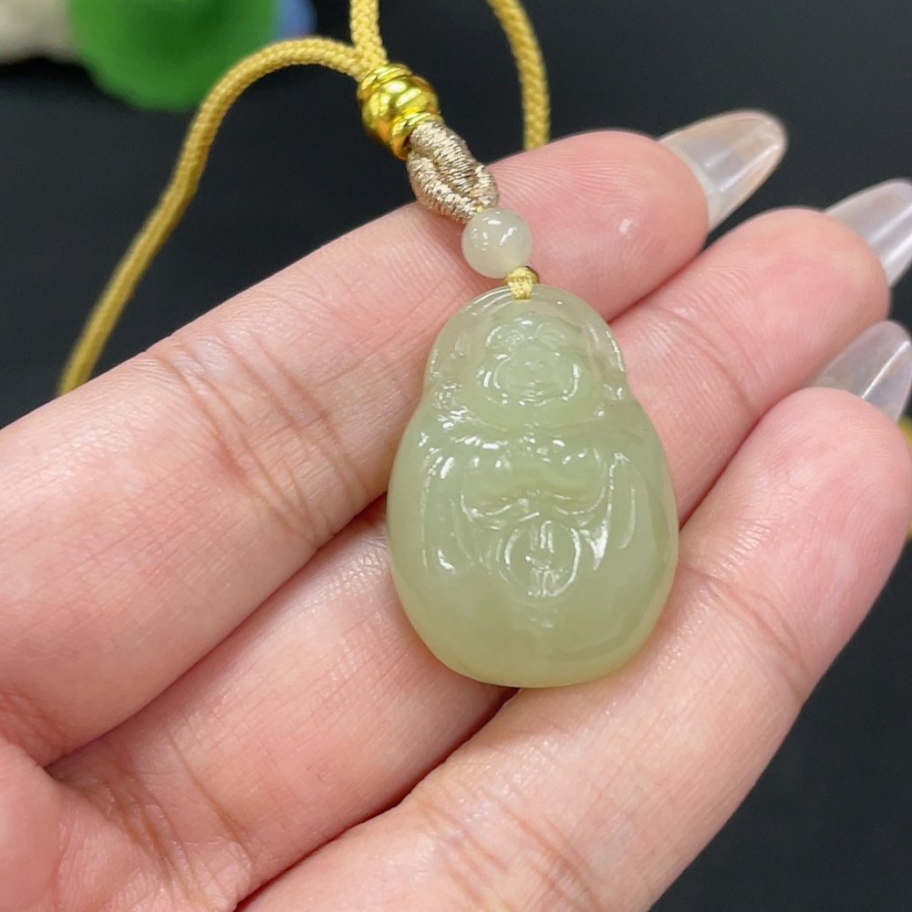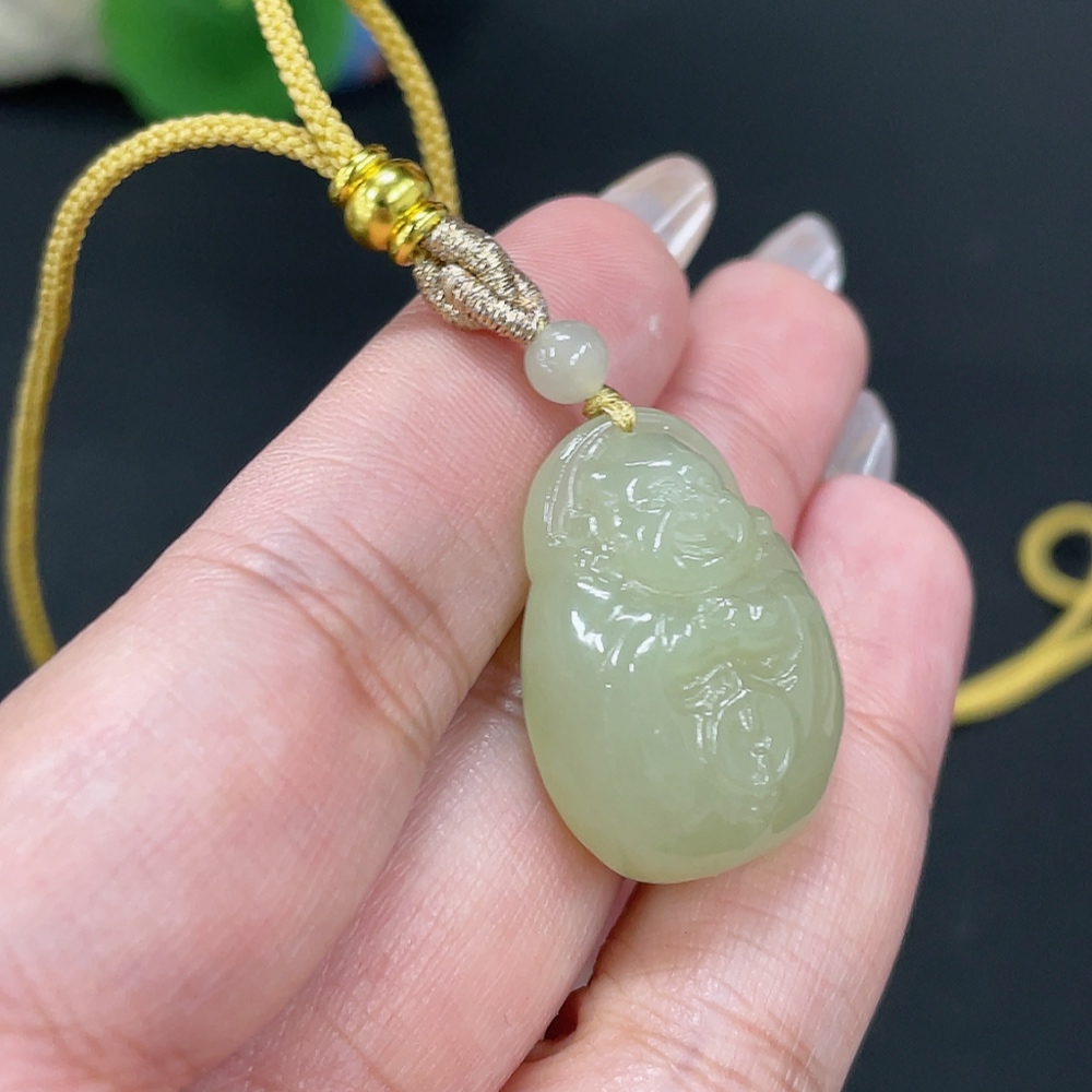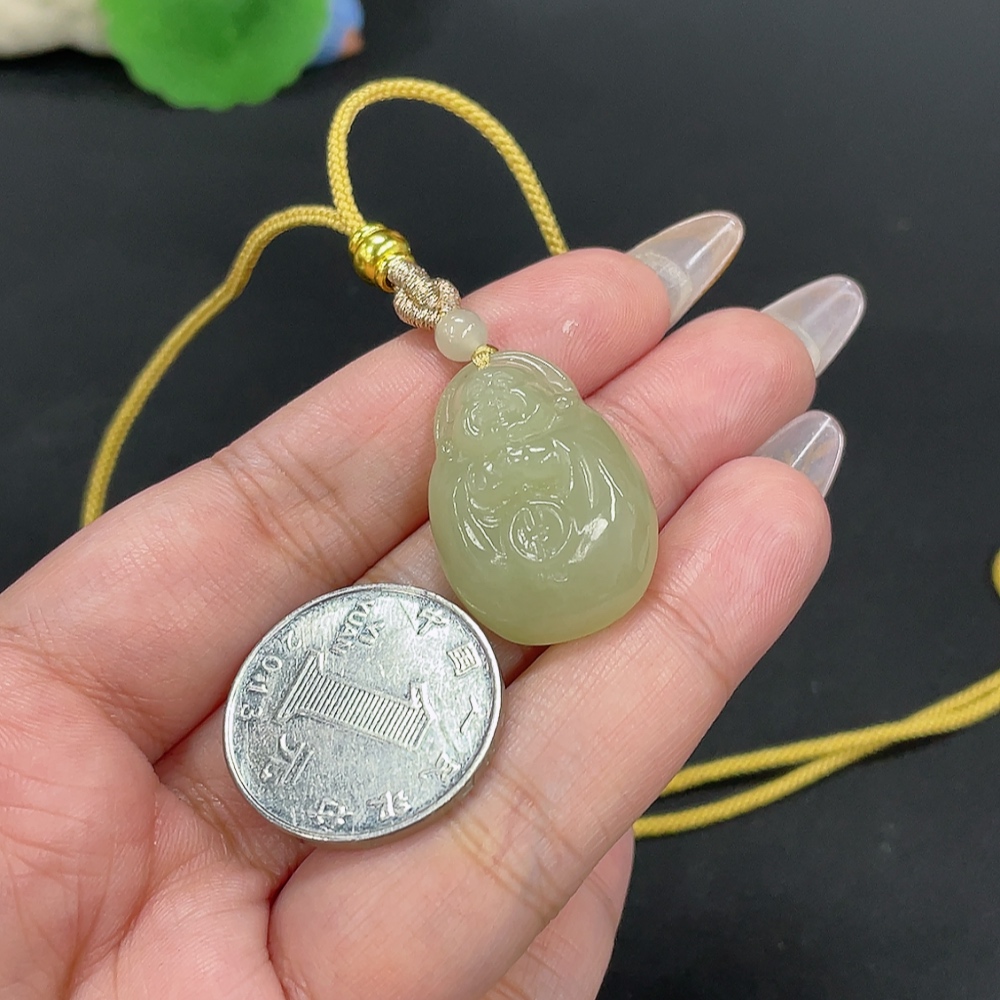 Hetian Jade Pendant, God of Wealth, Total Weight Approx. [Including Rope] 12g