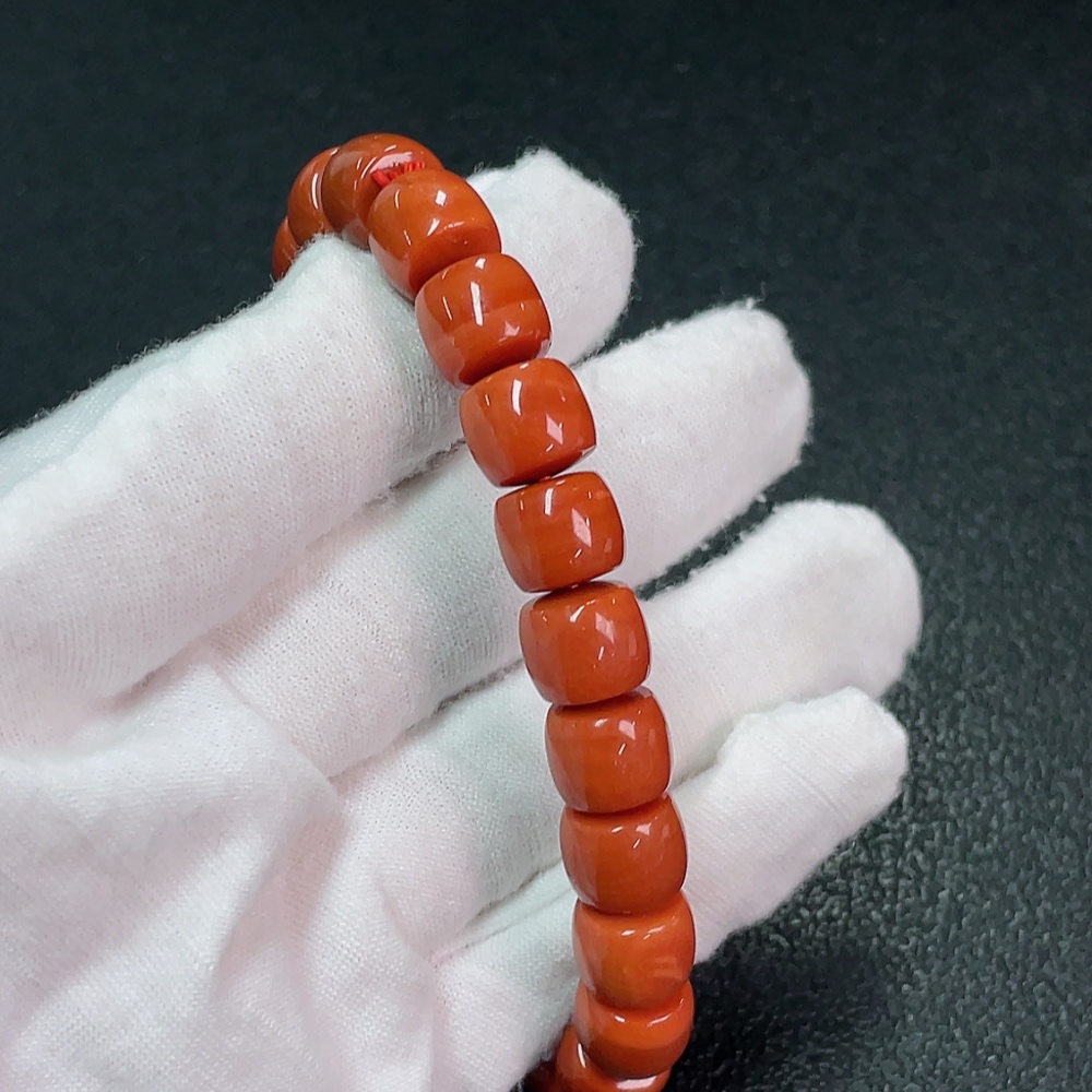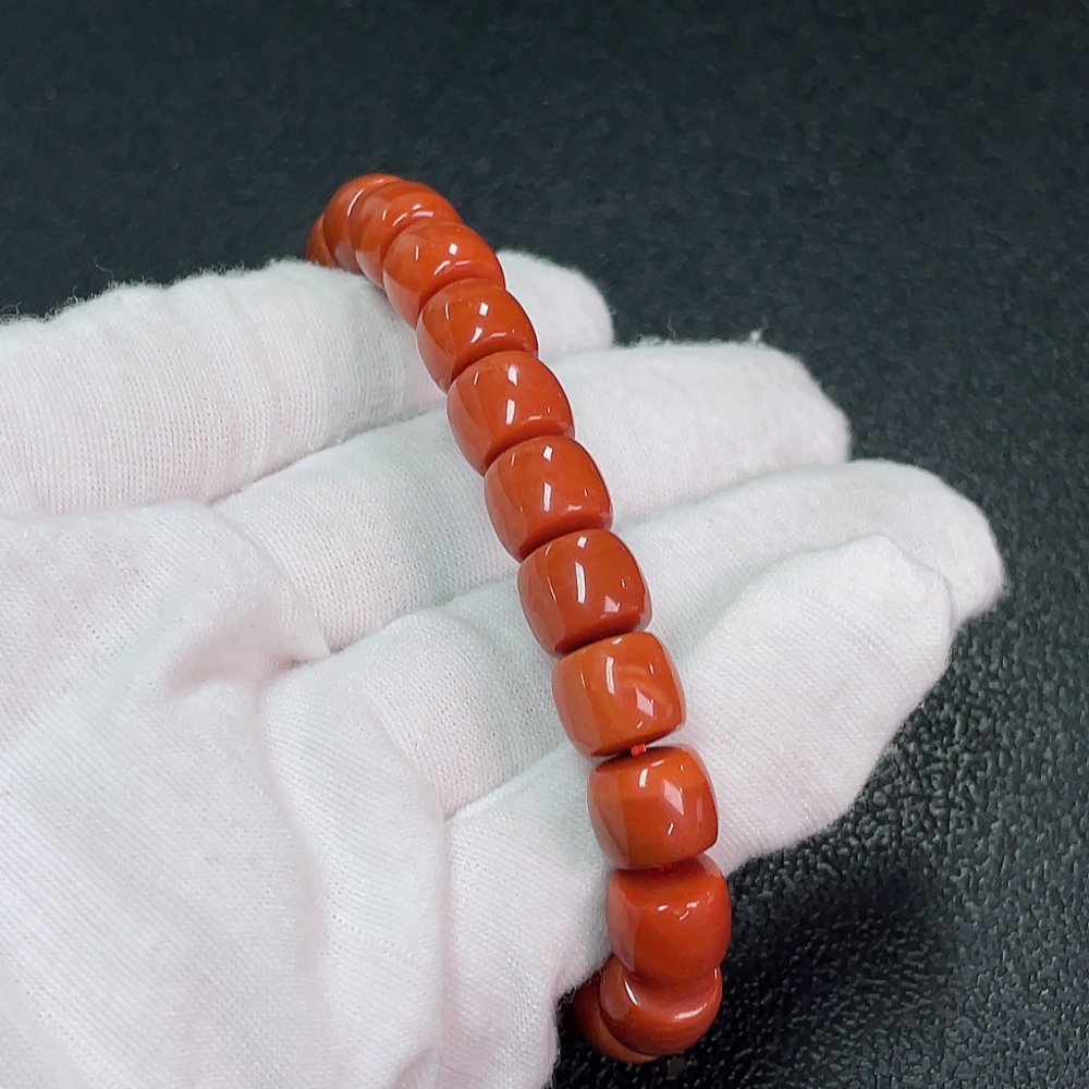 Red Agate Bracelet with Visible Organic Matter, Total Weight Approx. 30.68g, Size About 9.3mm