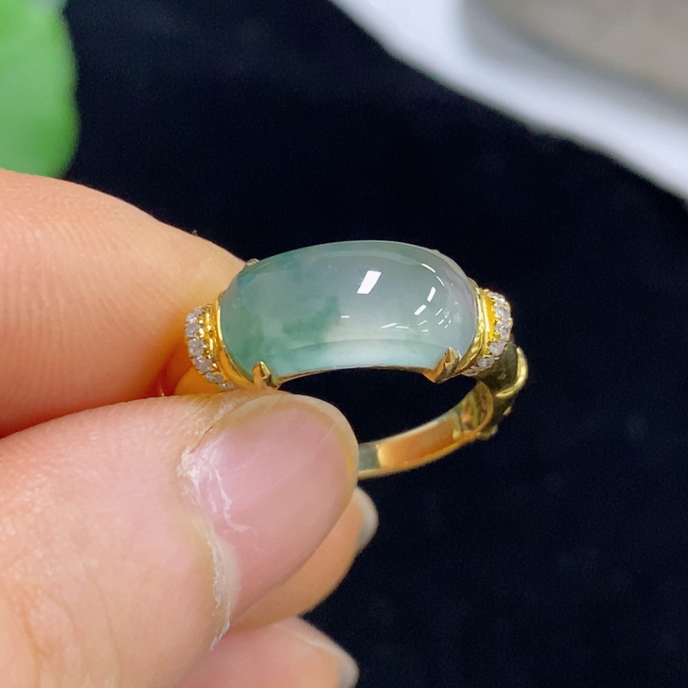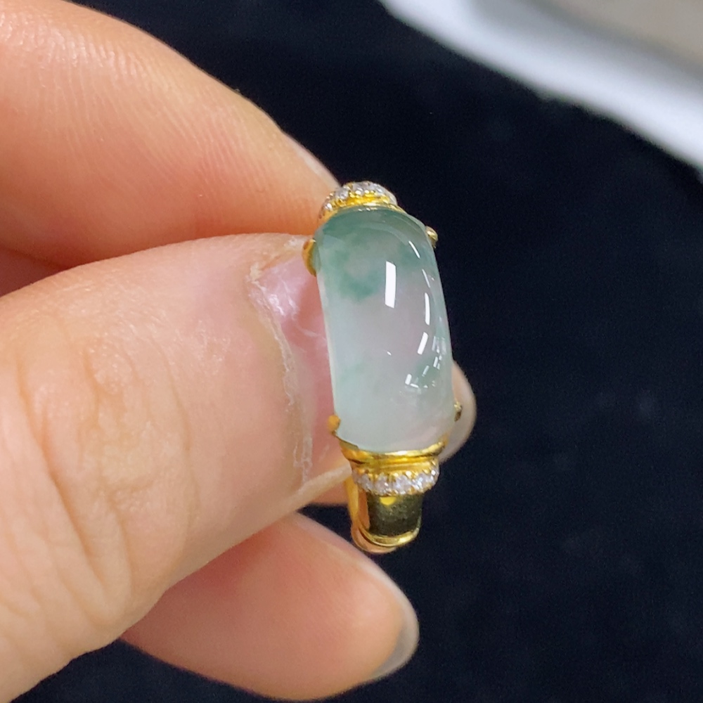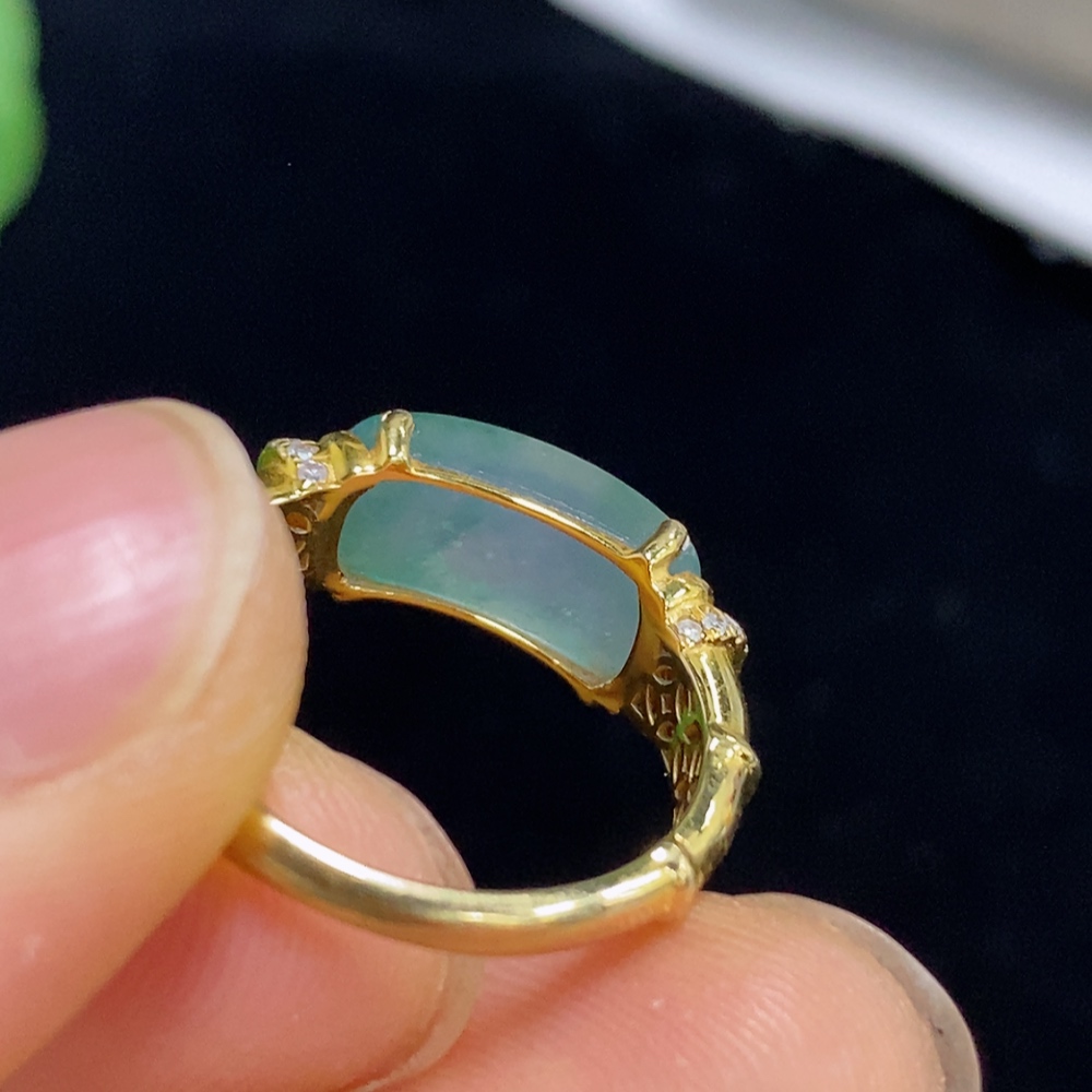 Jadeite Ring 18k Gold Set with Diamonds Total Weight Approx. 3.4g Size 14