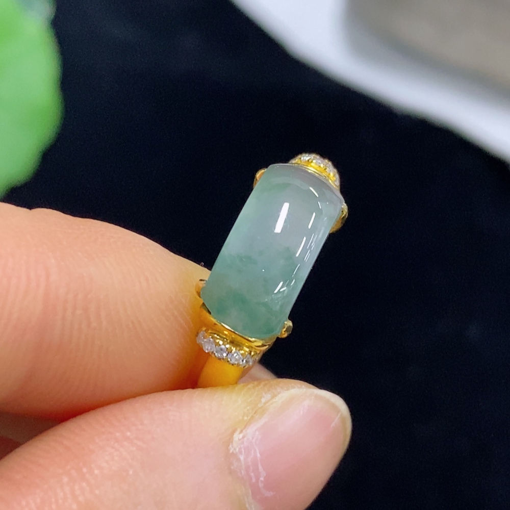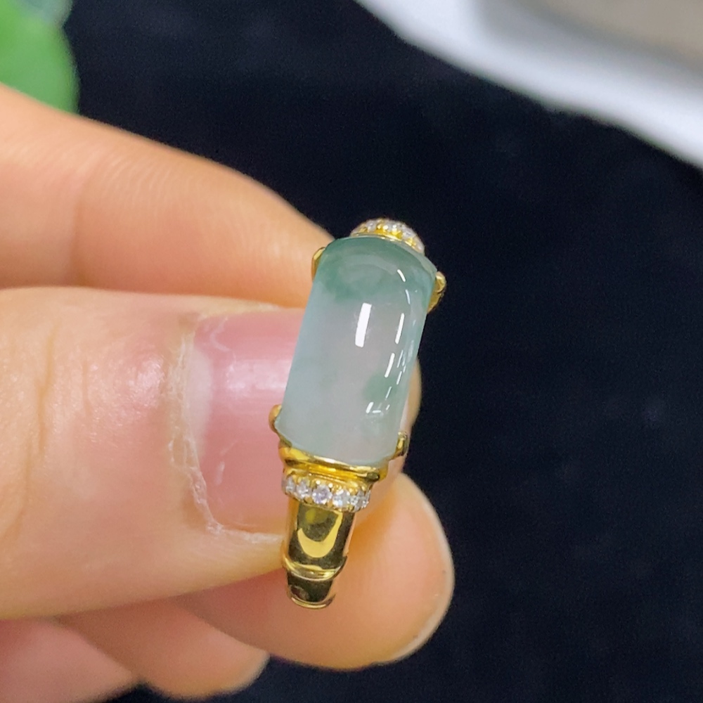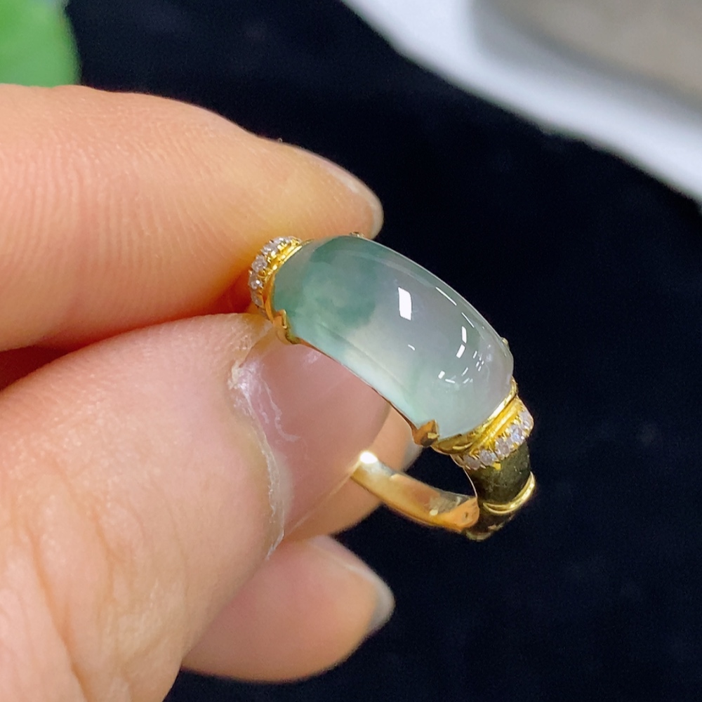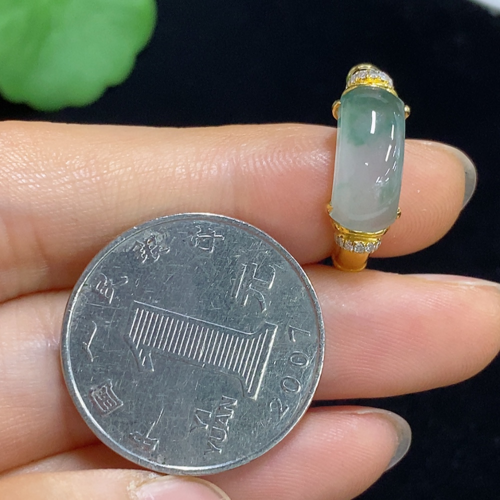 Jadeite Ring 18k Gold Set with Diamonds Total Weight Approx. 3.4g Size 14