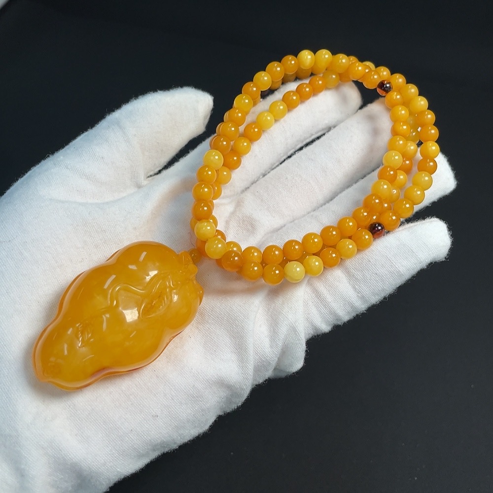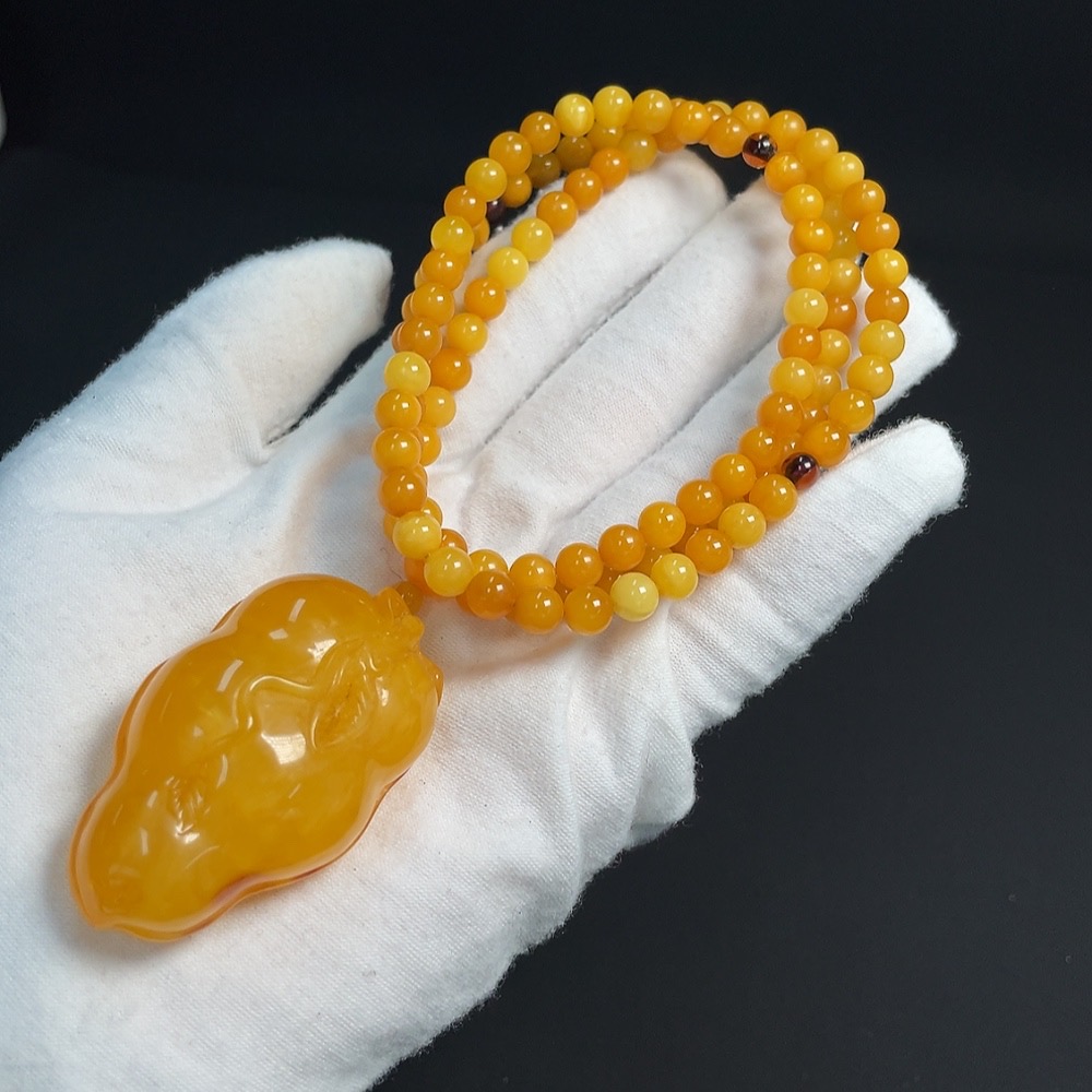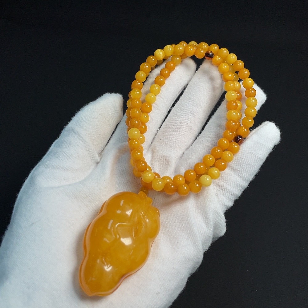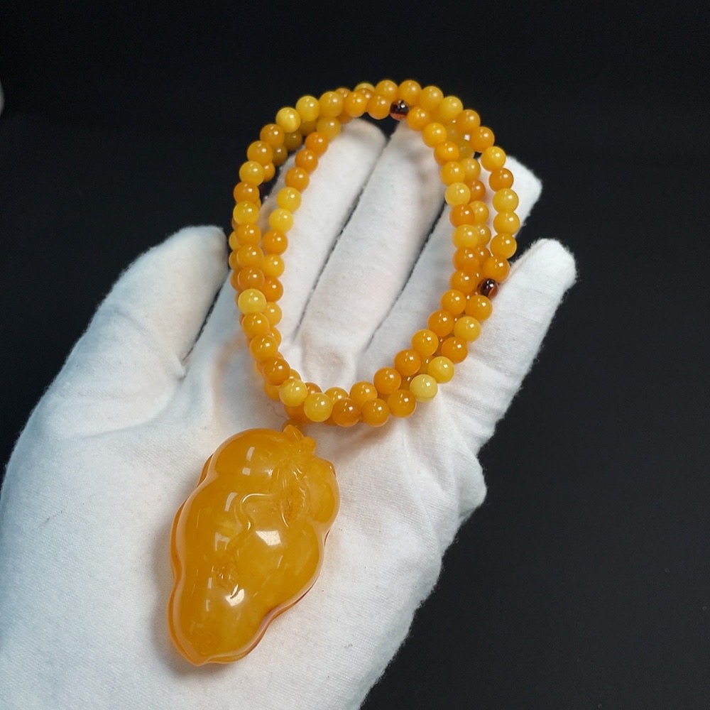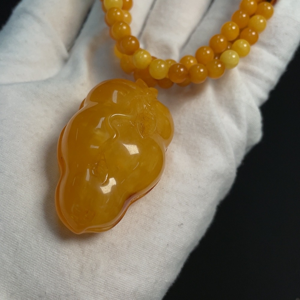 Amber Beeswax Pendant (Product weight including rope approx. 34.10g, coated with colorless film)