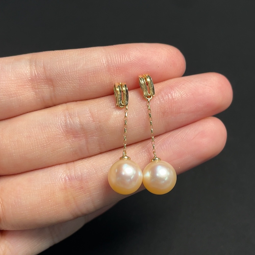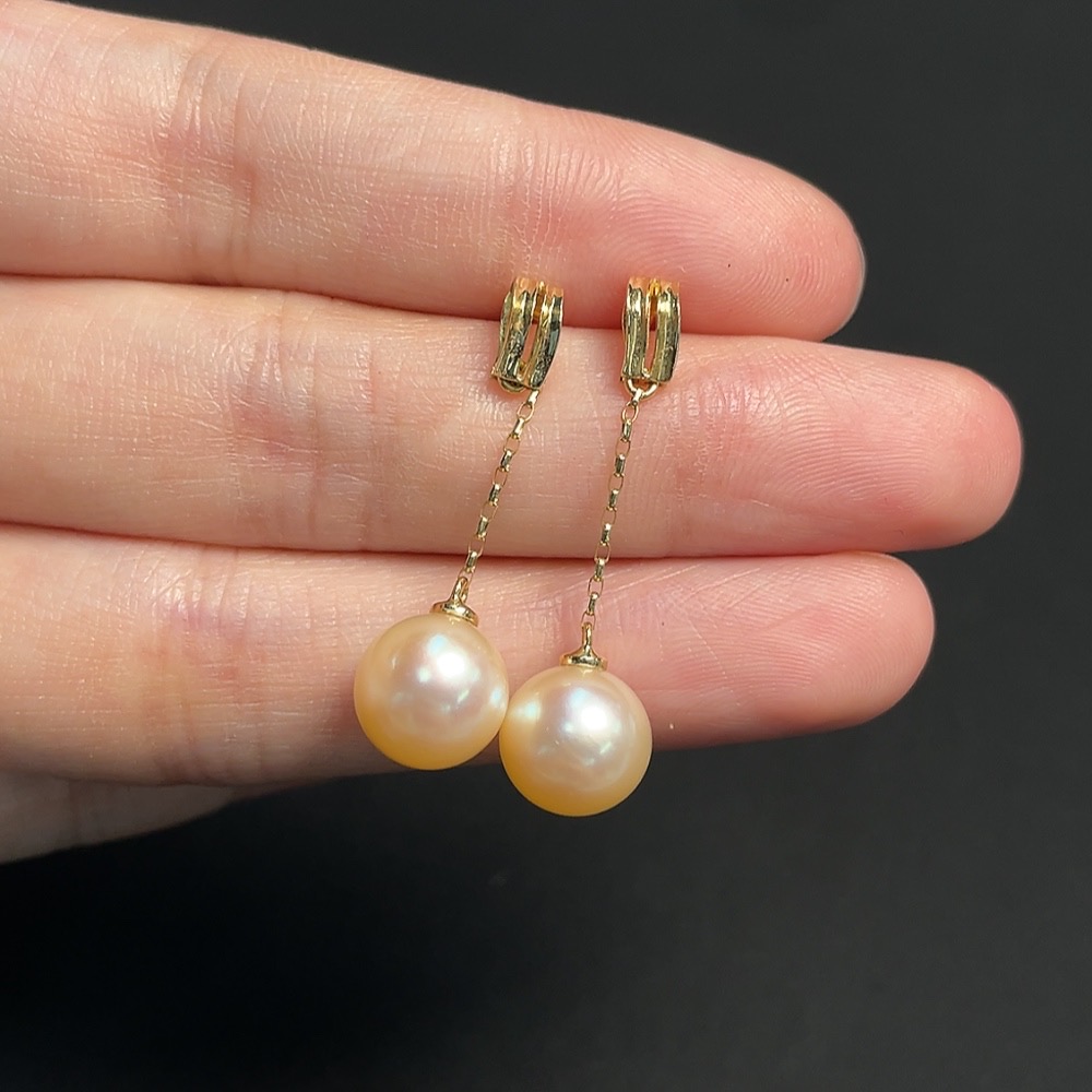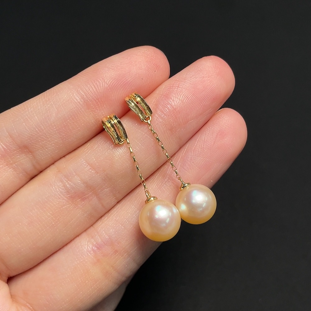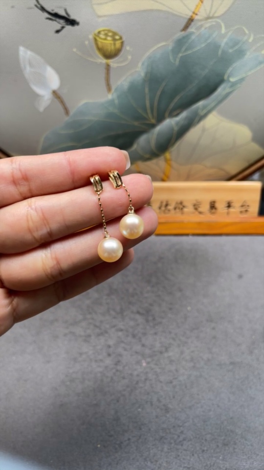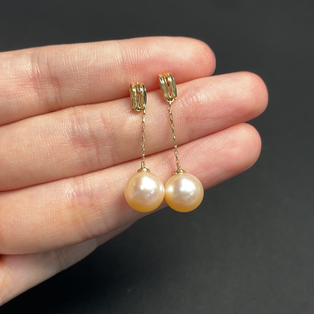 Seawater pearl earrings, color origin undetermined, 18k gold, total product weight approximately 3.43g, size about 9.2mm
