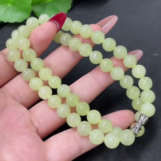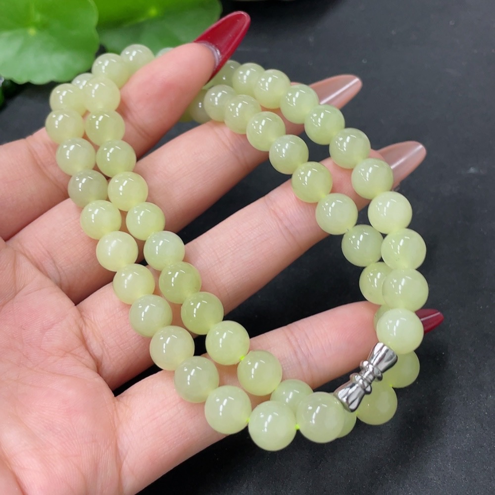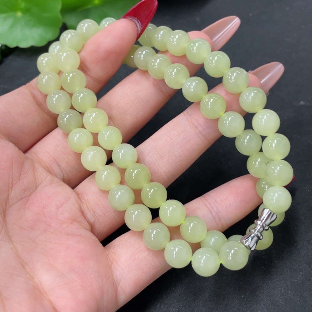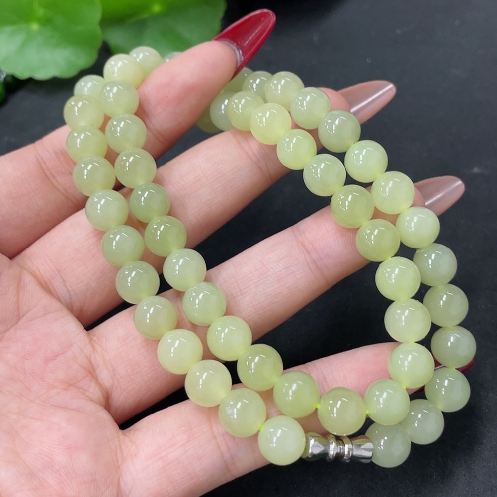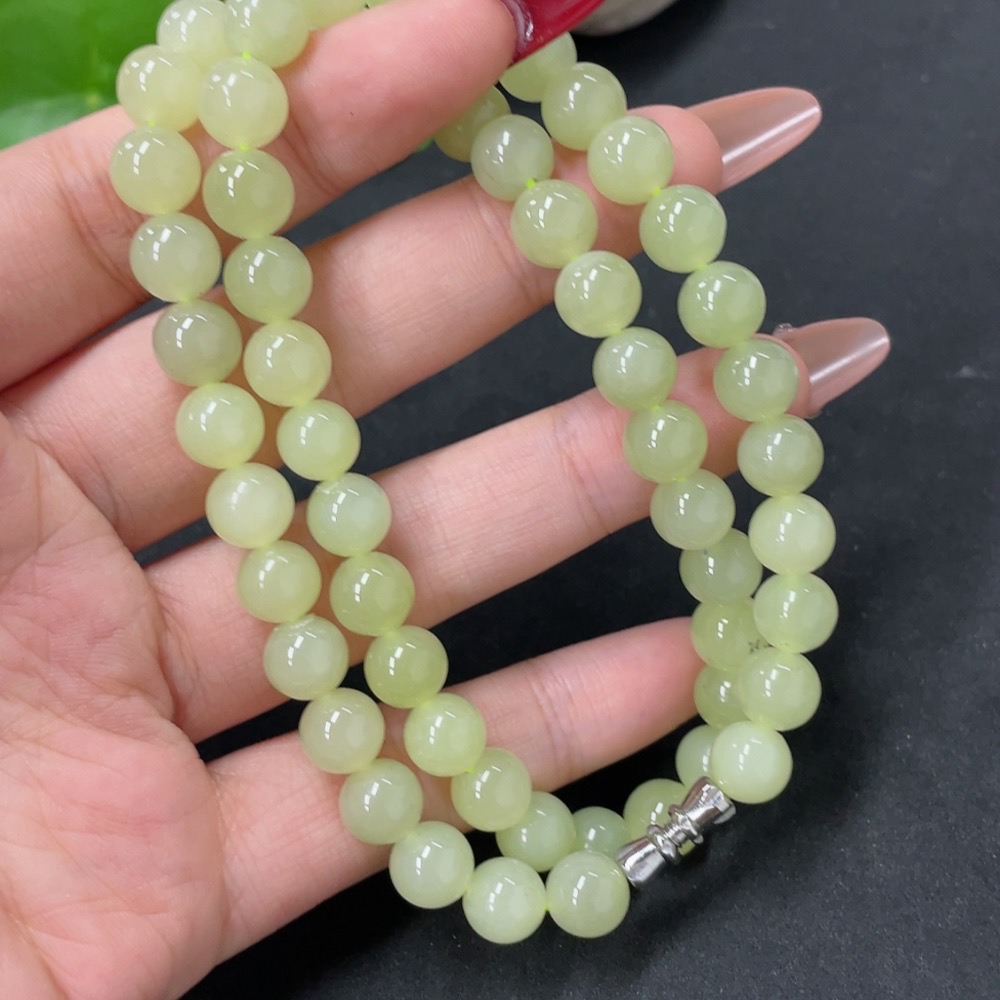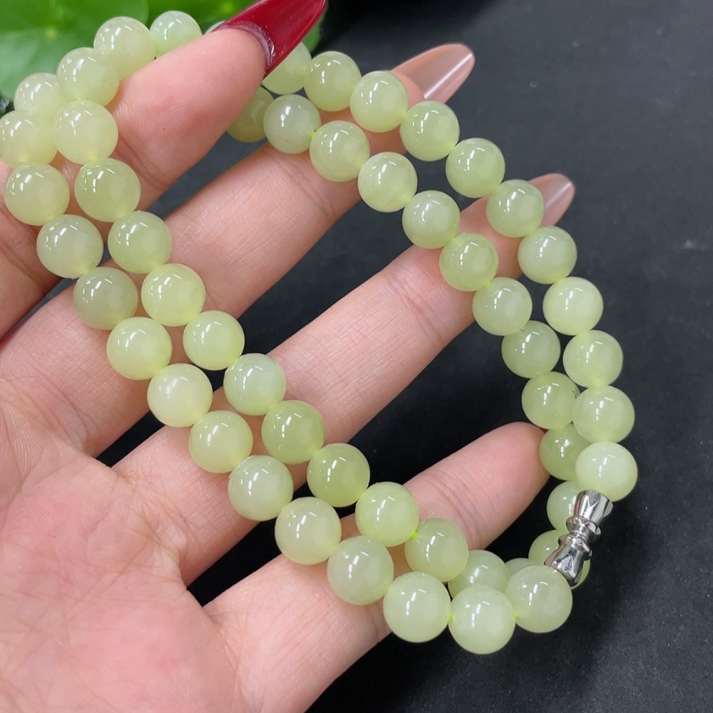 Hetian Jade Bead Necklace Non-Gold Card 7.6mm Approx. Total Weight About 43.3g