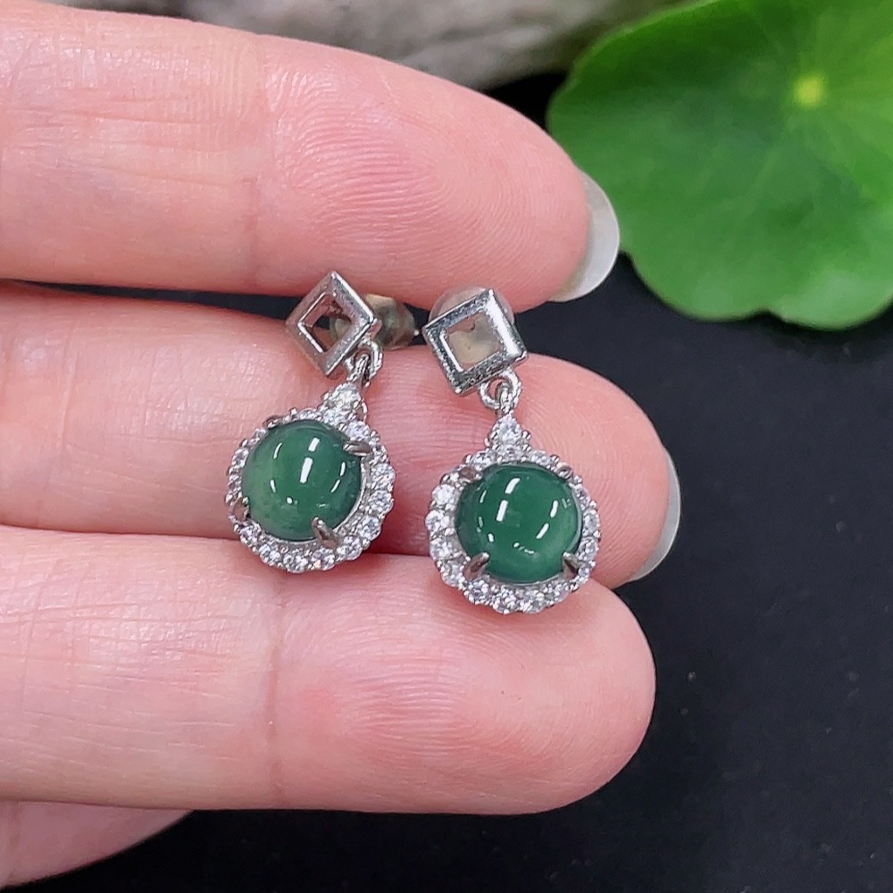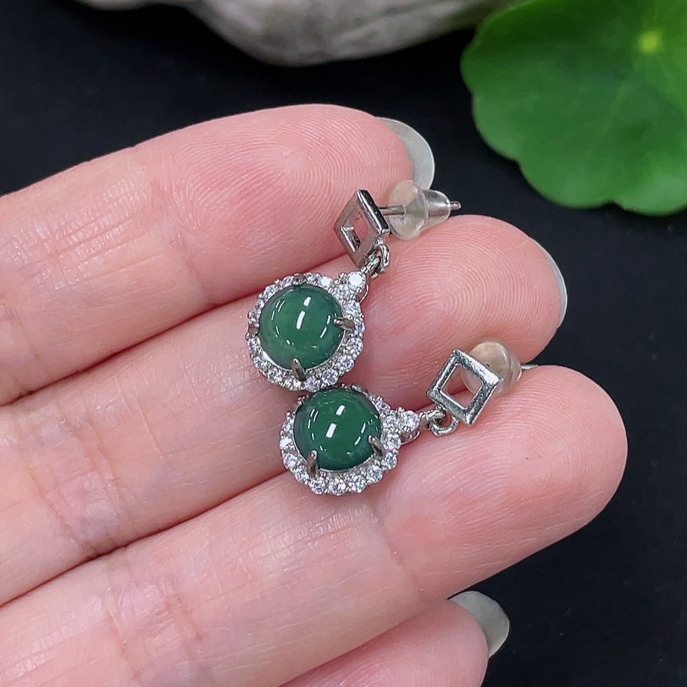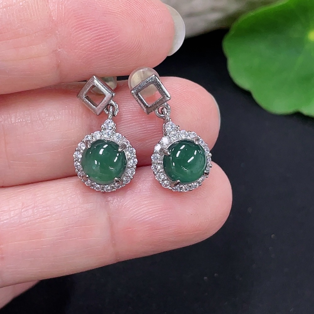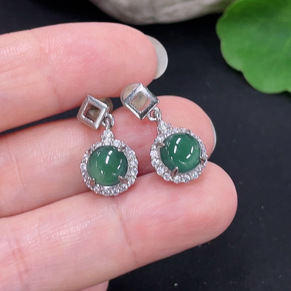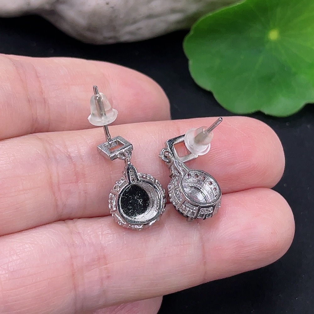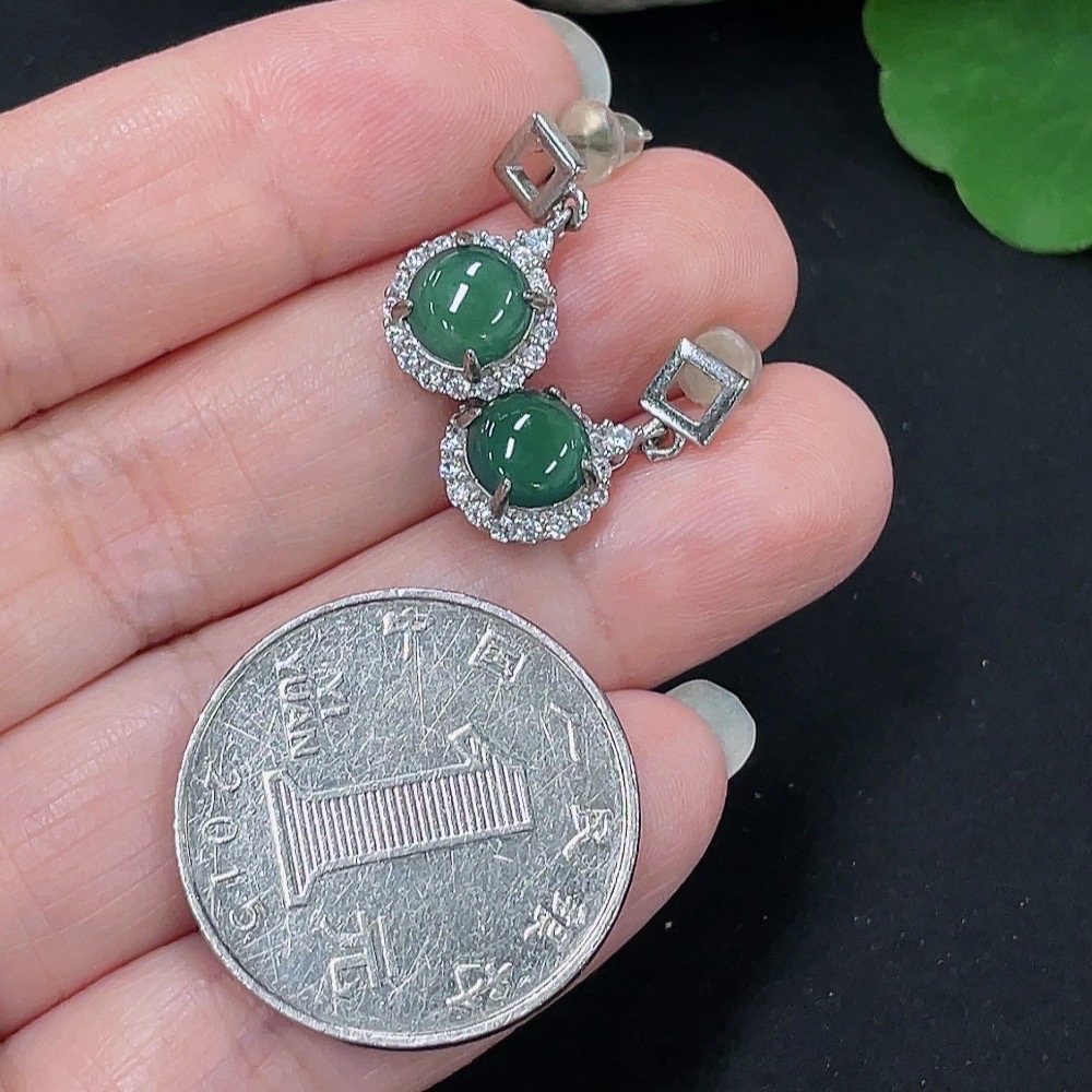 Jadeite Inlaid Earrings Non-Gold Inlaid Total Weight Approx.2.2g