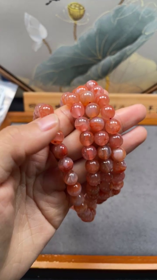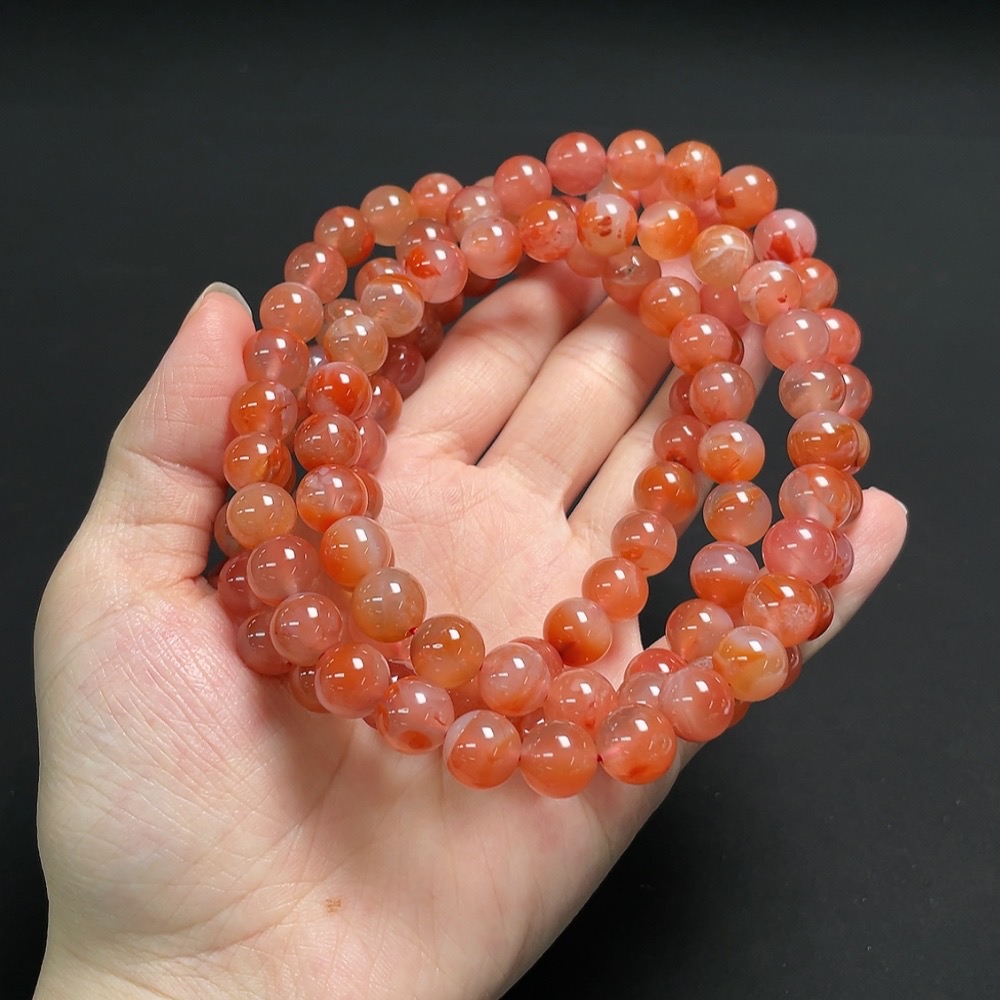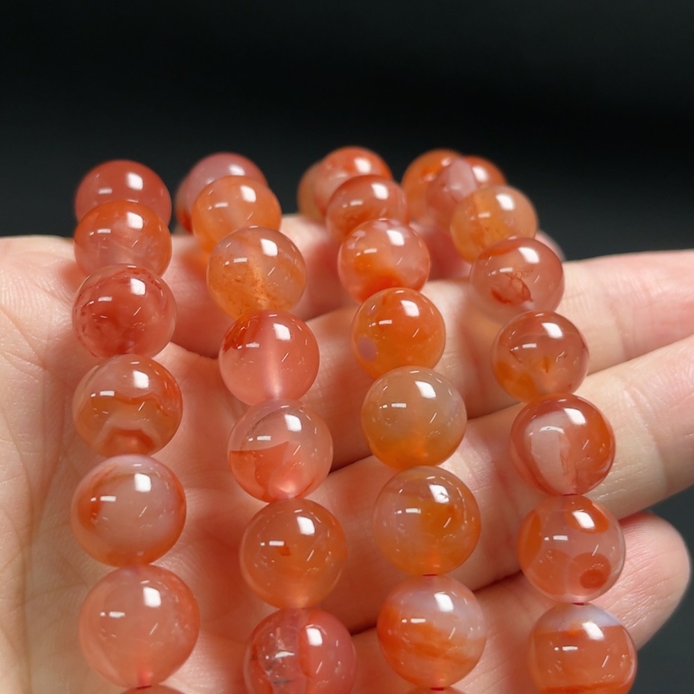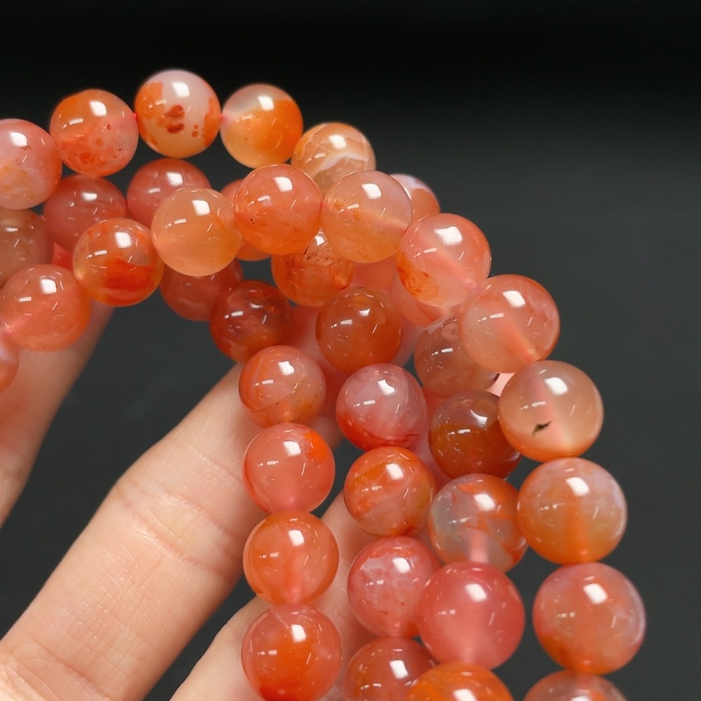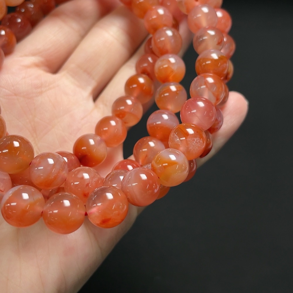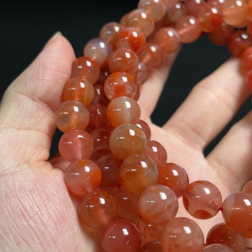 Red Agate Bead Necklace with Visible Organic Matter, Total Weight Approx. 115.7g, Size About 9.2mm