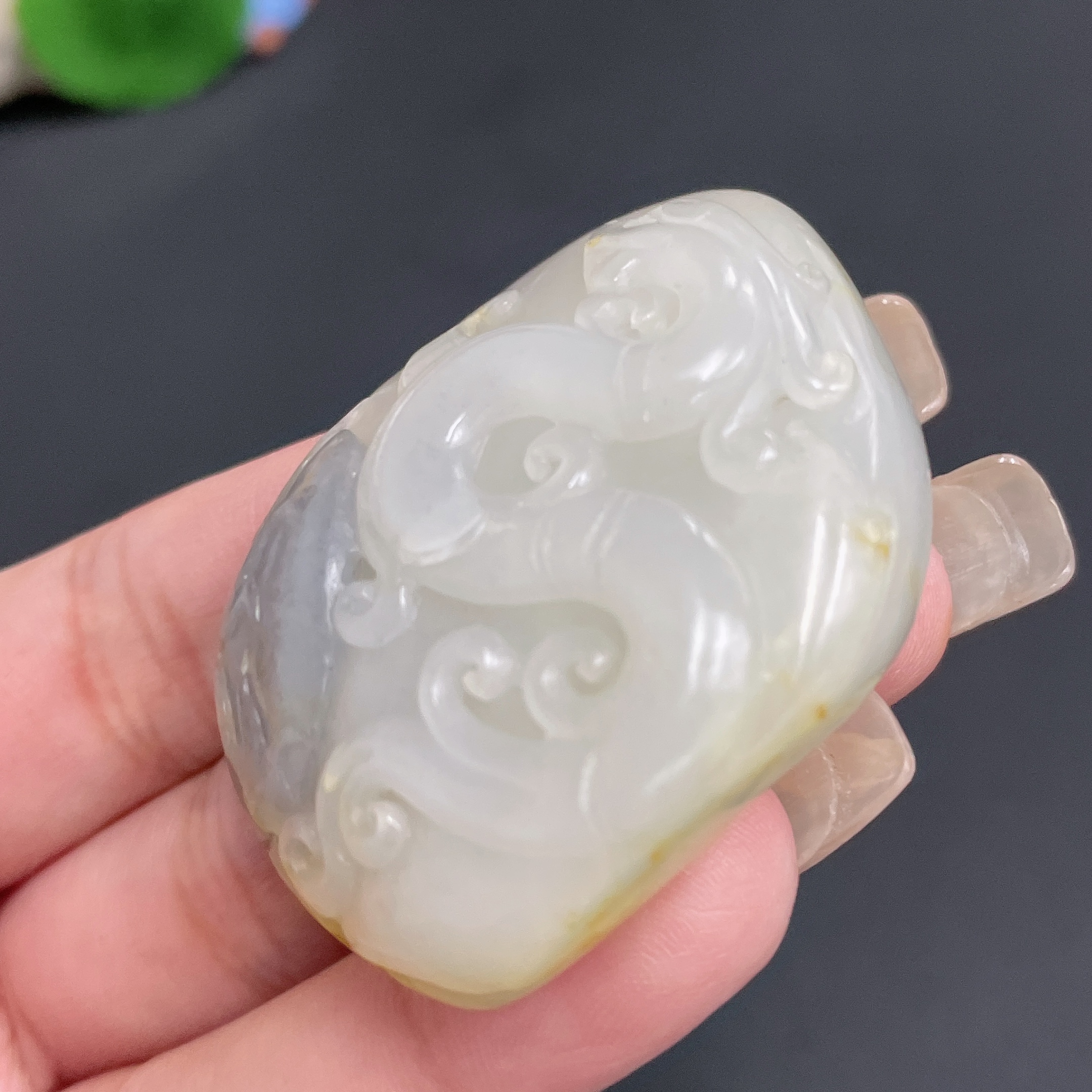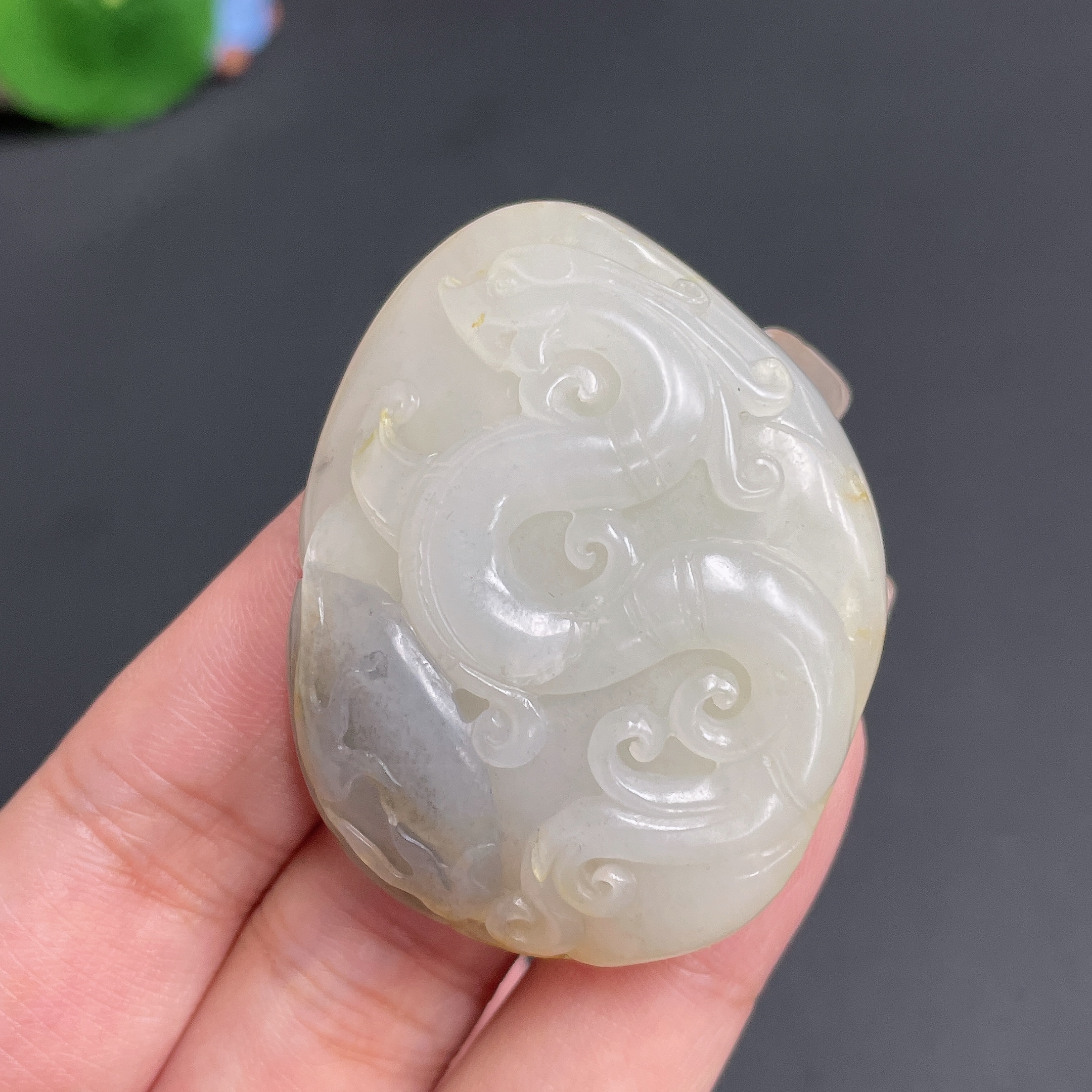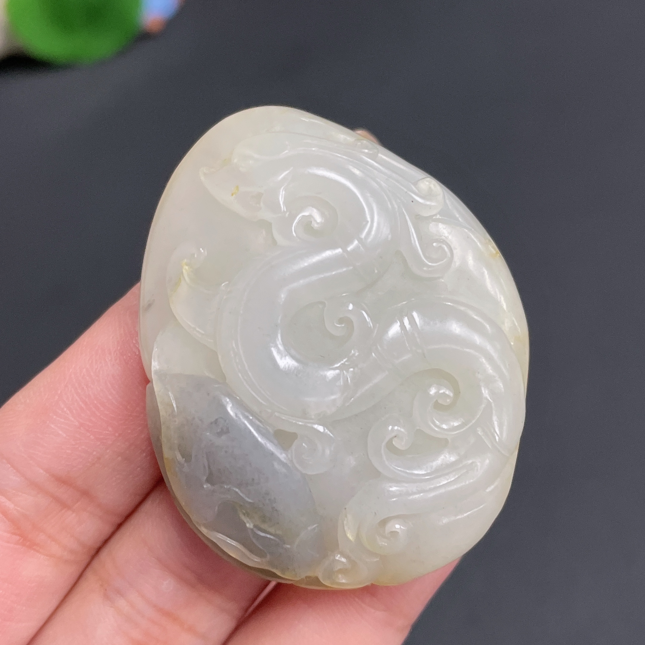 Hetian Jade Pendant Antique Dragon Style Total Weight Approx. 50.51g Undetermined Skin Color Origin