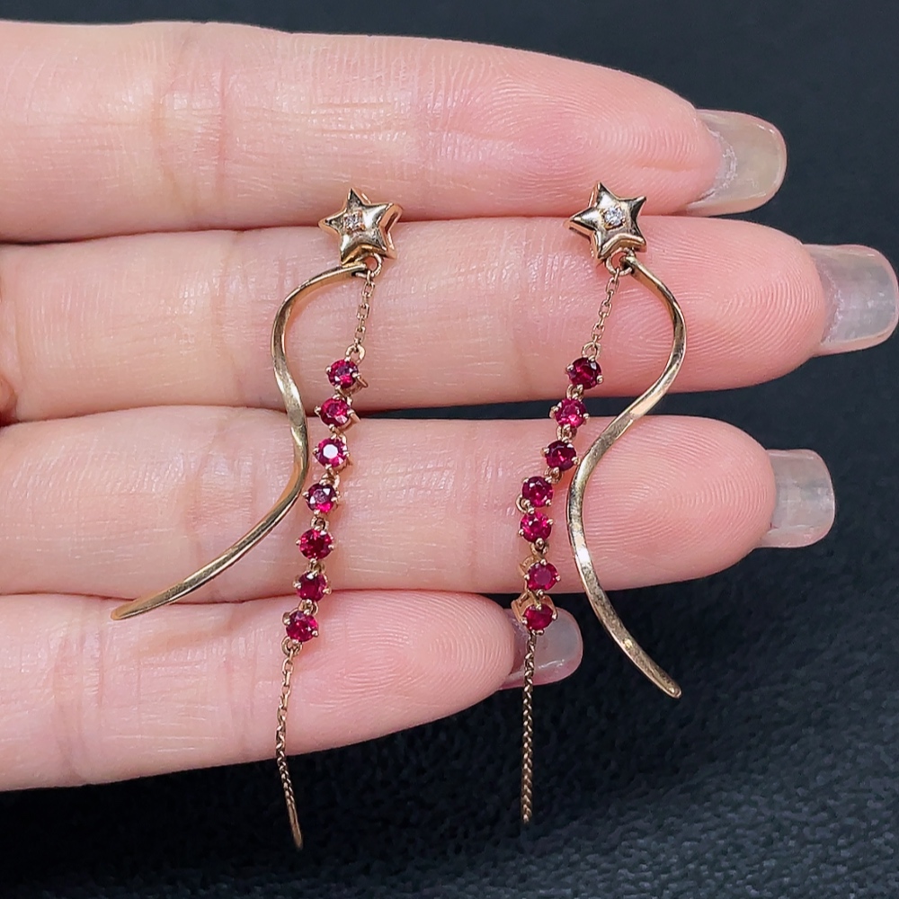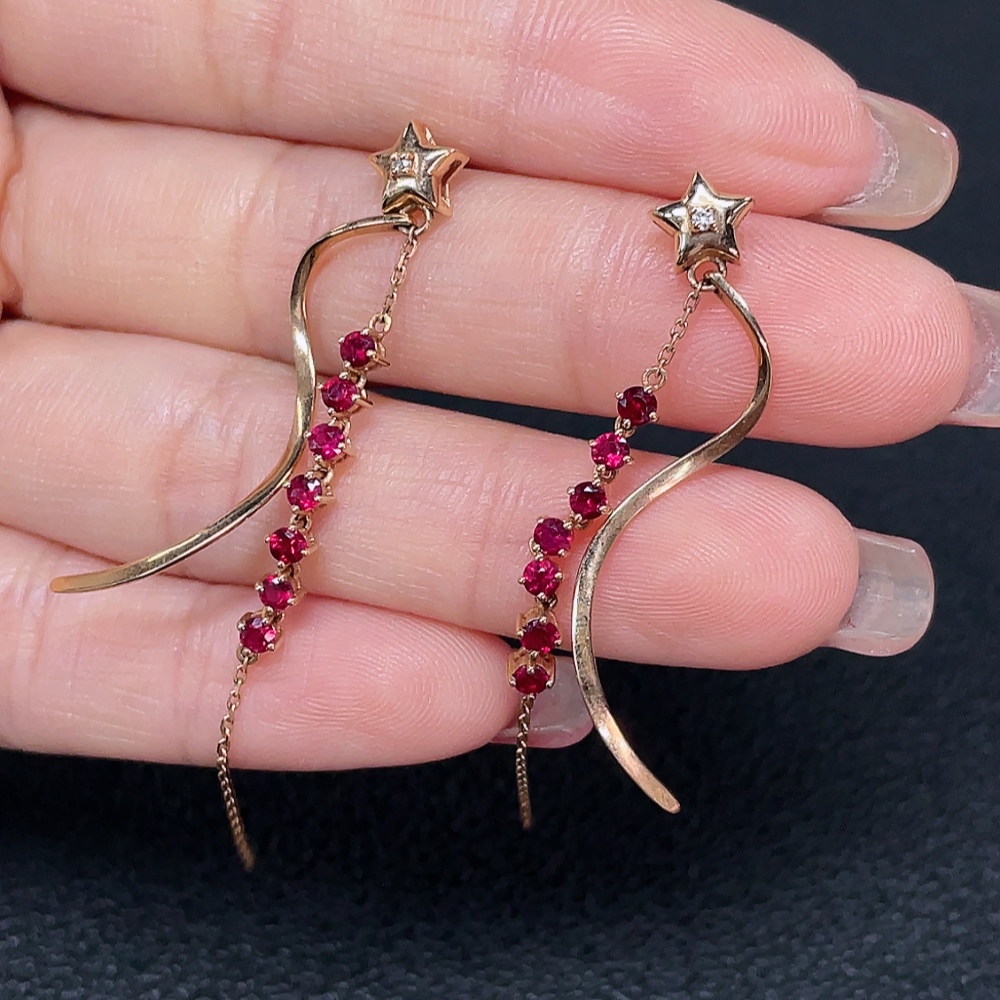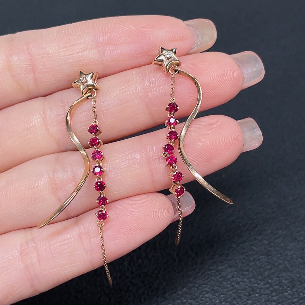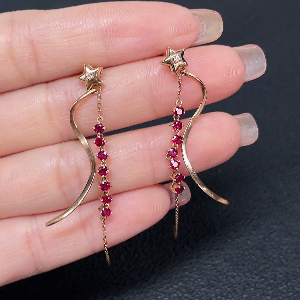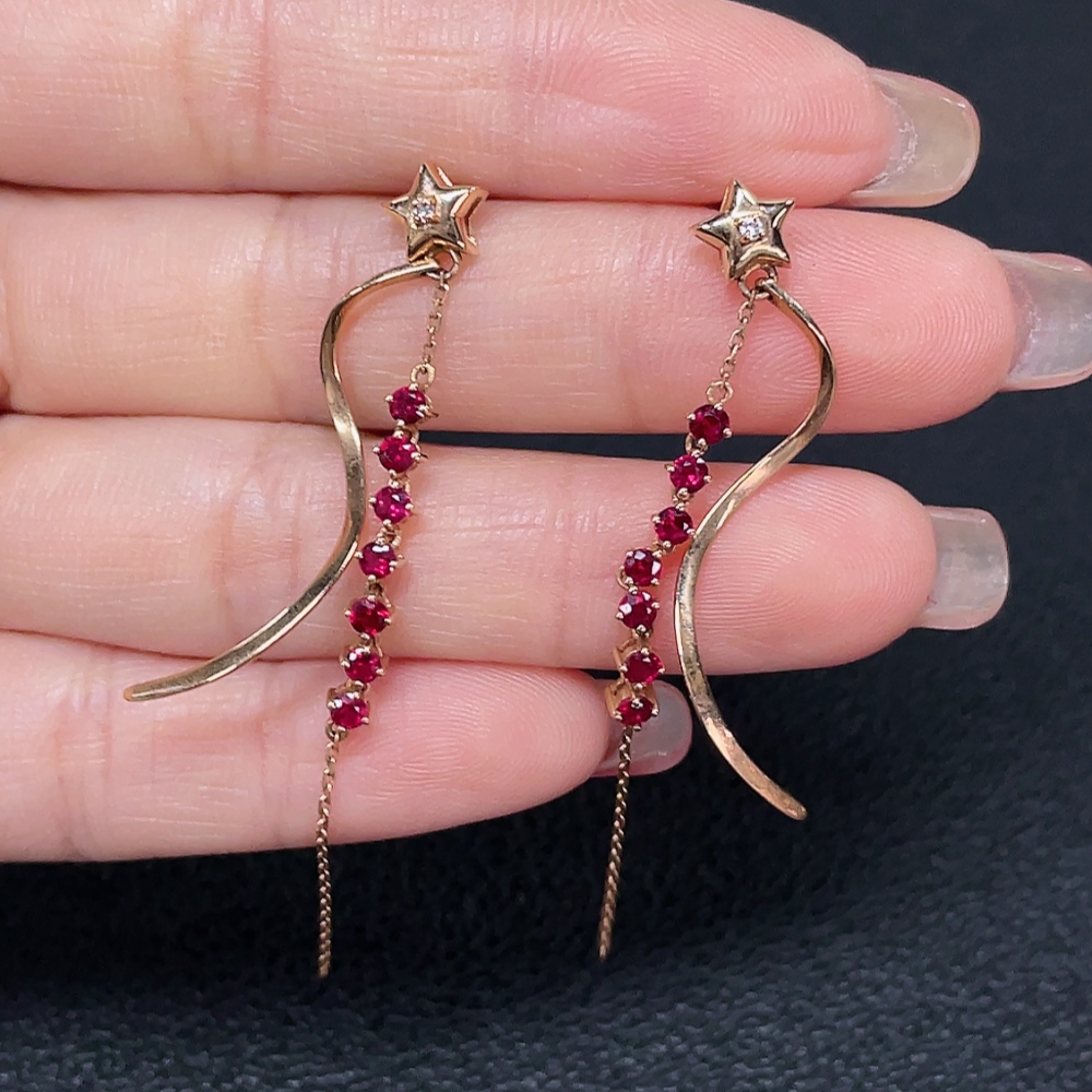 Ruby earrings, 18k gold, set with diamonds, total weight approximately 3.27g