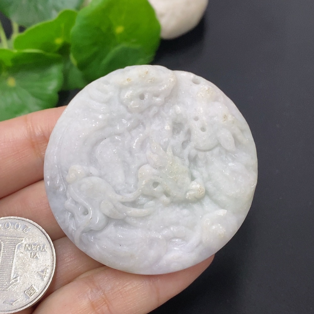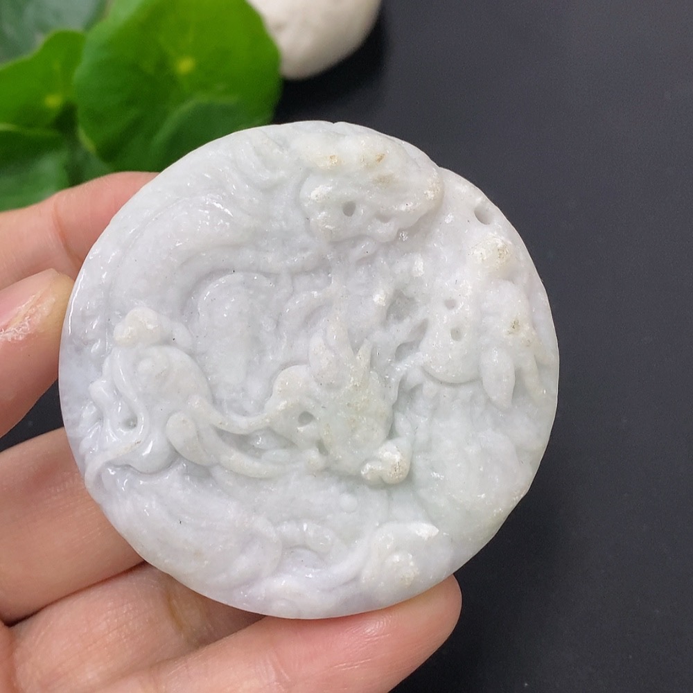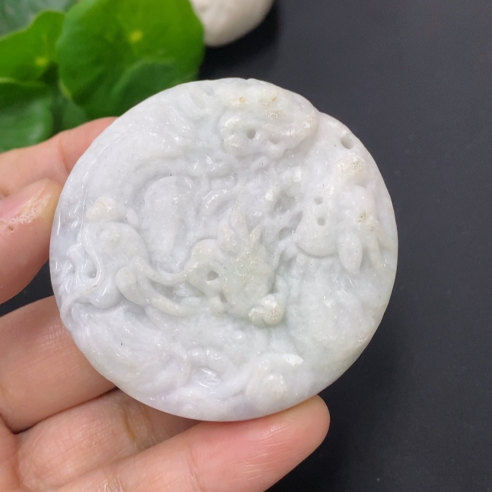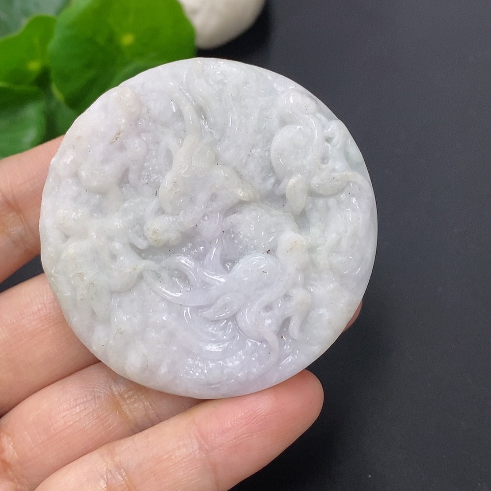 Jadeite Nine Dragons Protecting the Master Pendant, Total Weight Approx. 80.6g