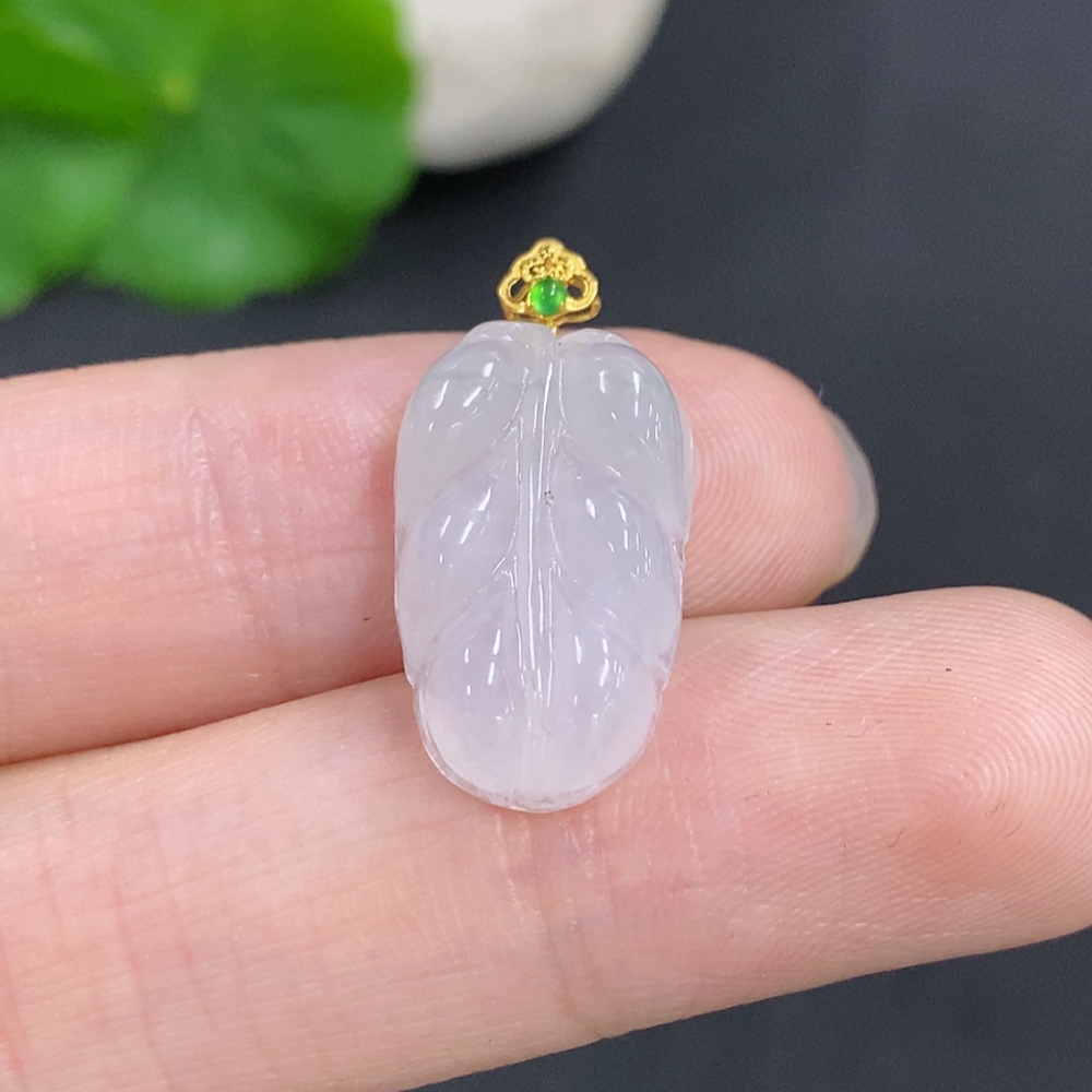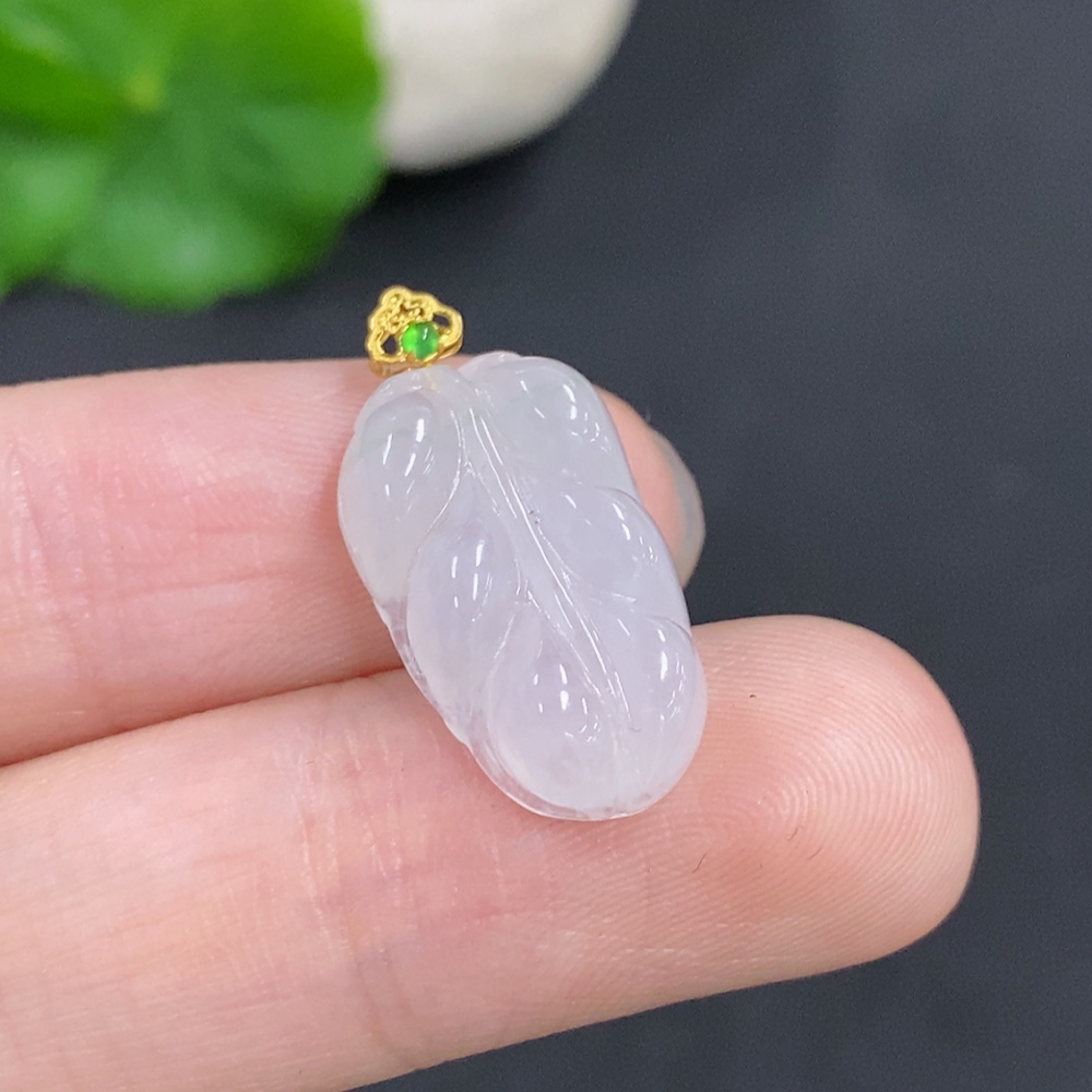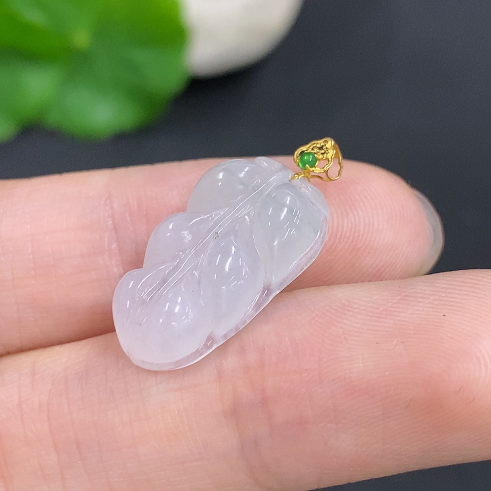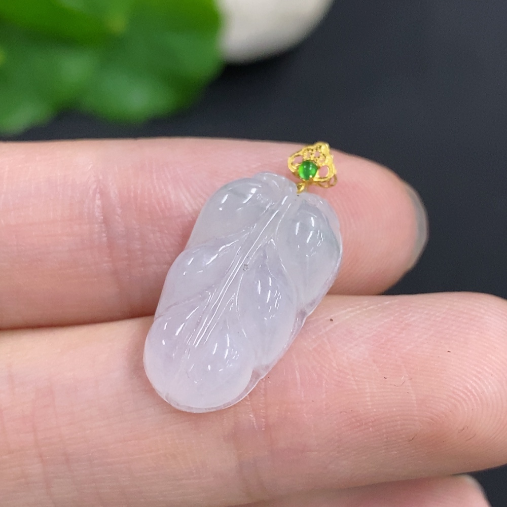 Jadeite Leaf Pendant with 18K Gold Clasp, Total Weight Approximately 2.3g