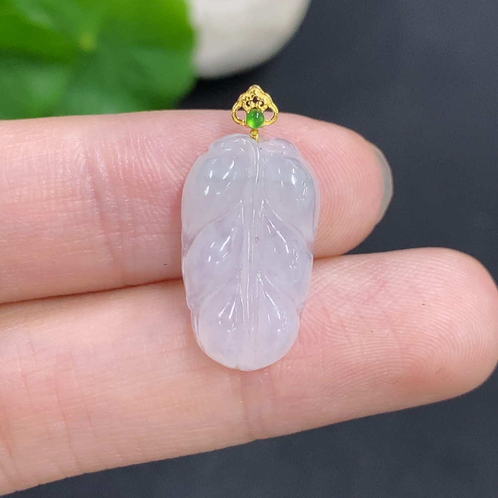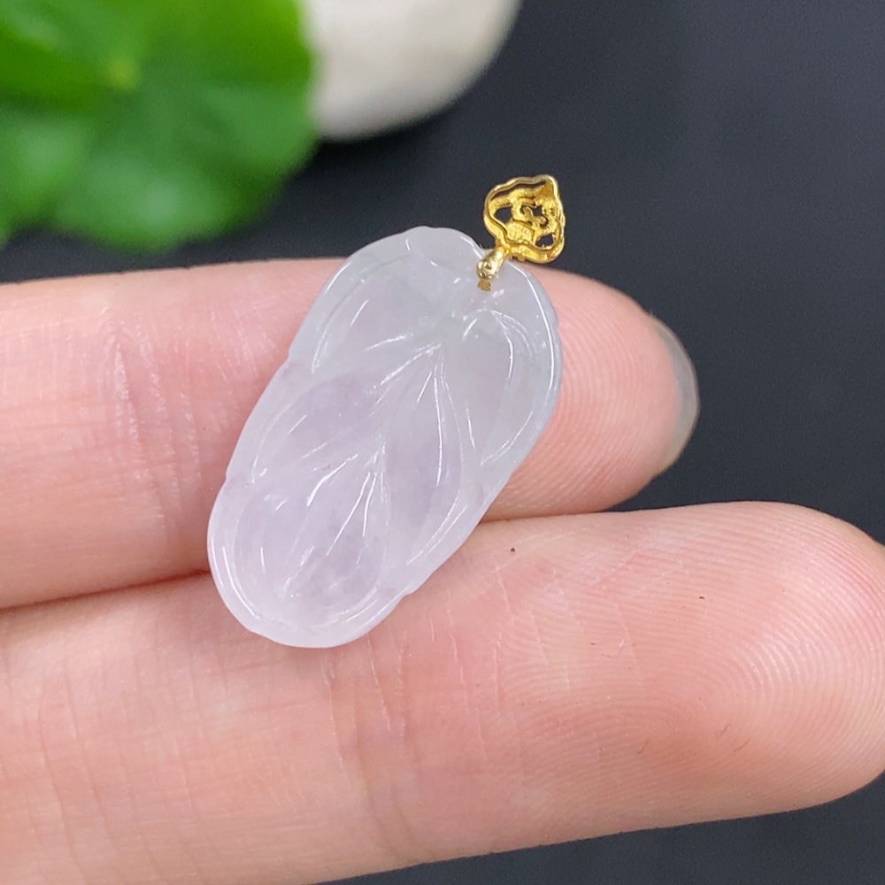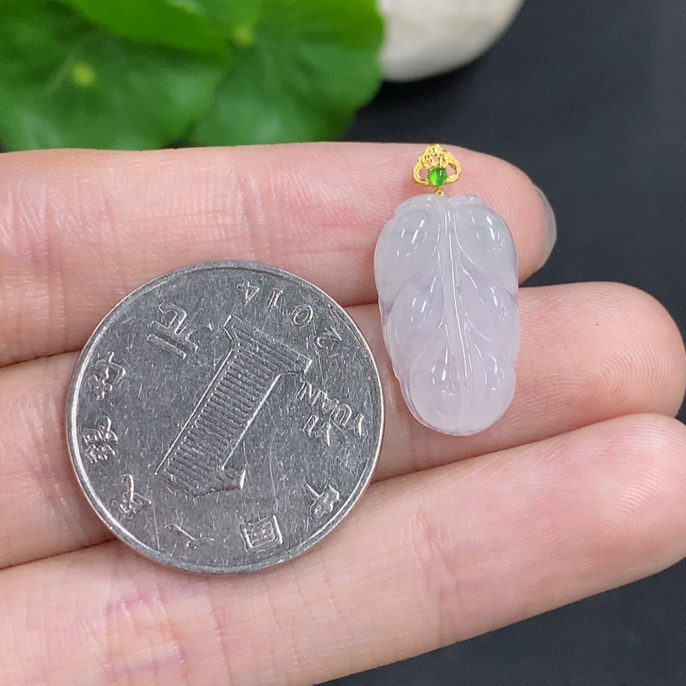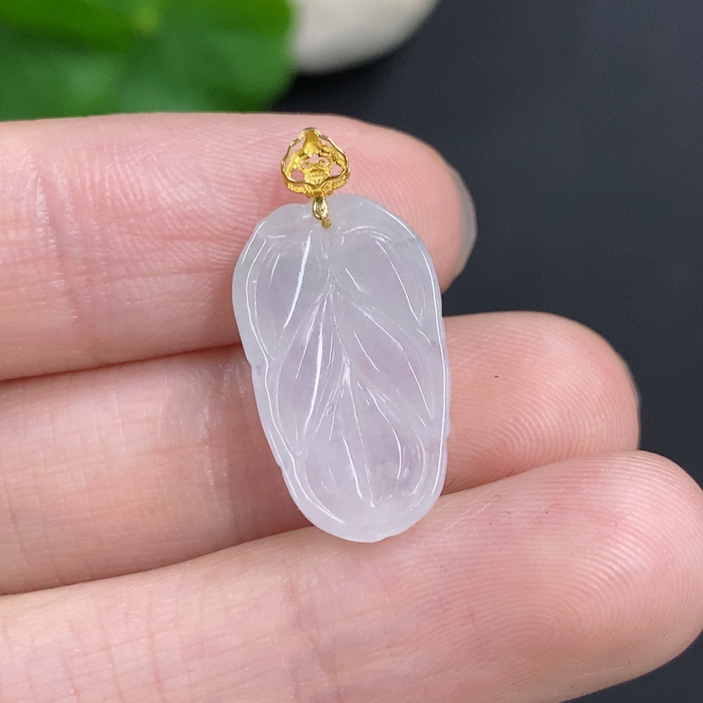 Jadeite Leaf Pendant with 18K Gold Clasp, Total Weight Approximately 2.3g