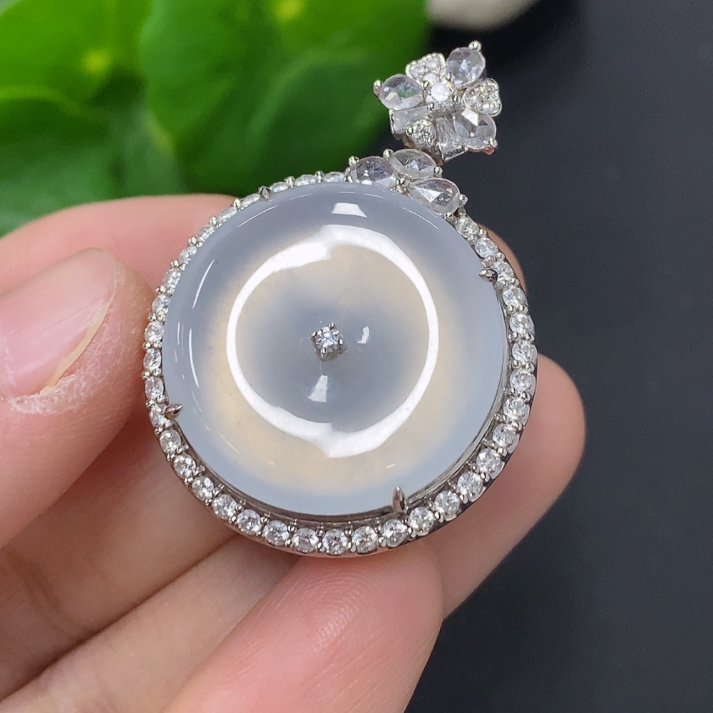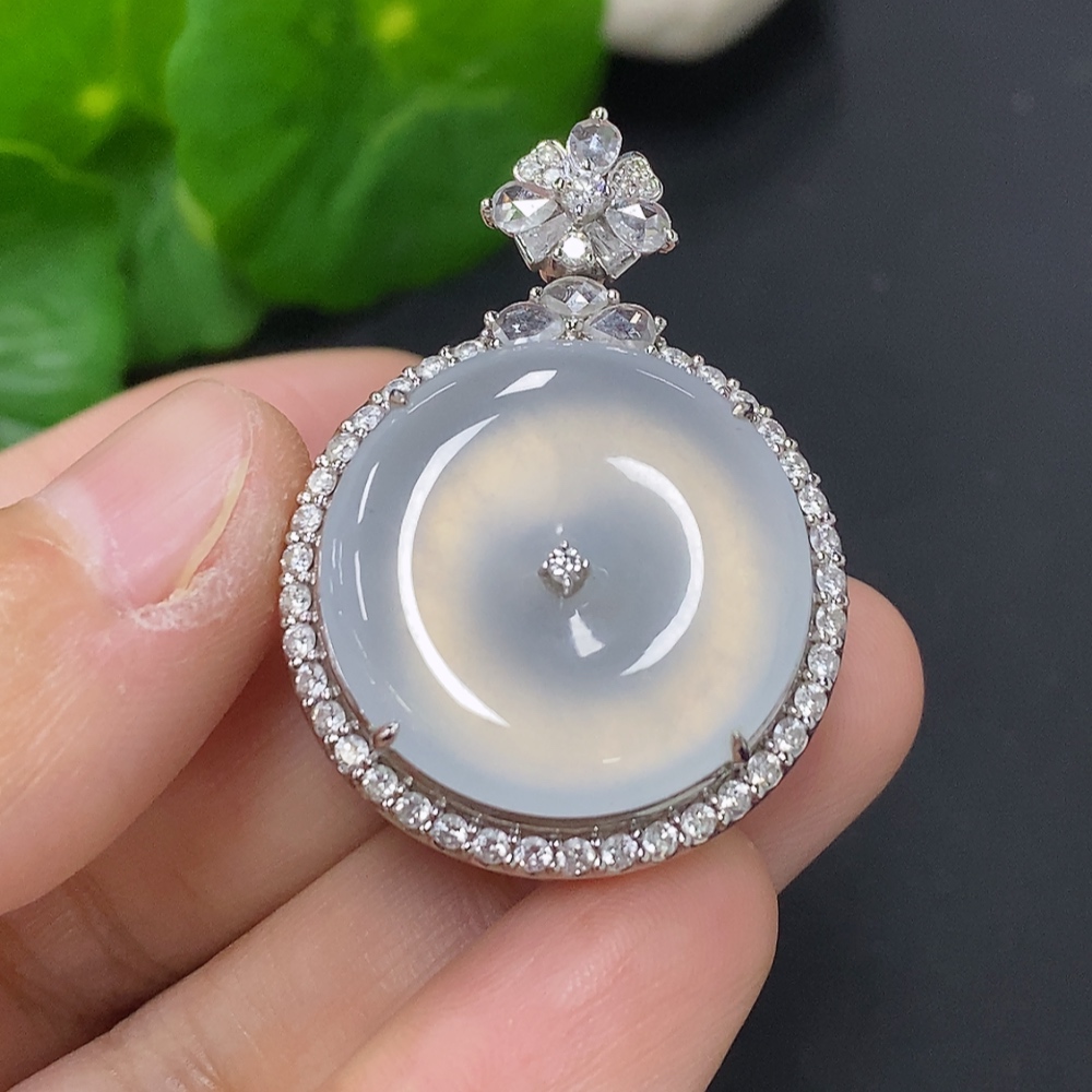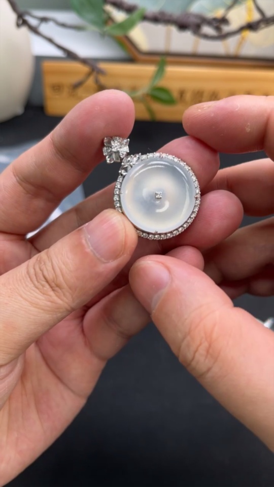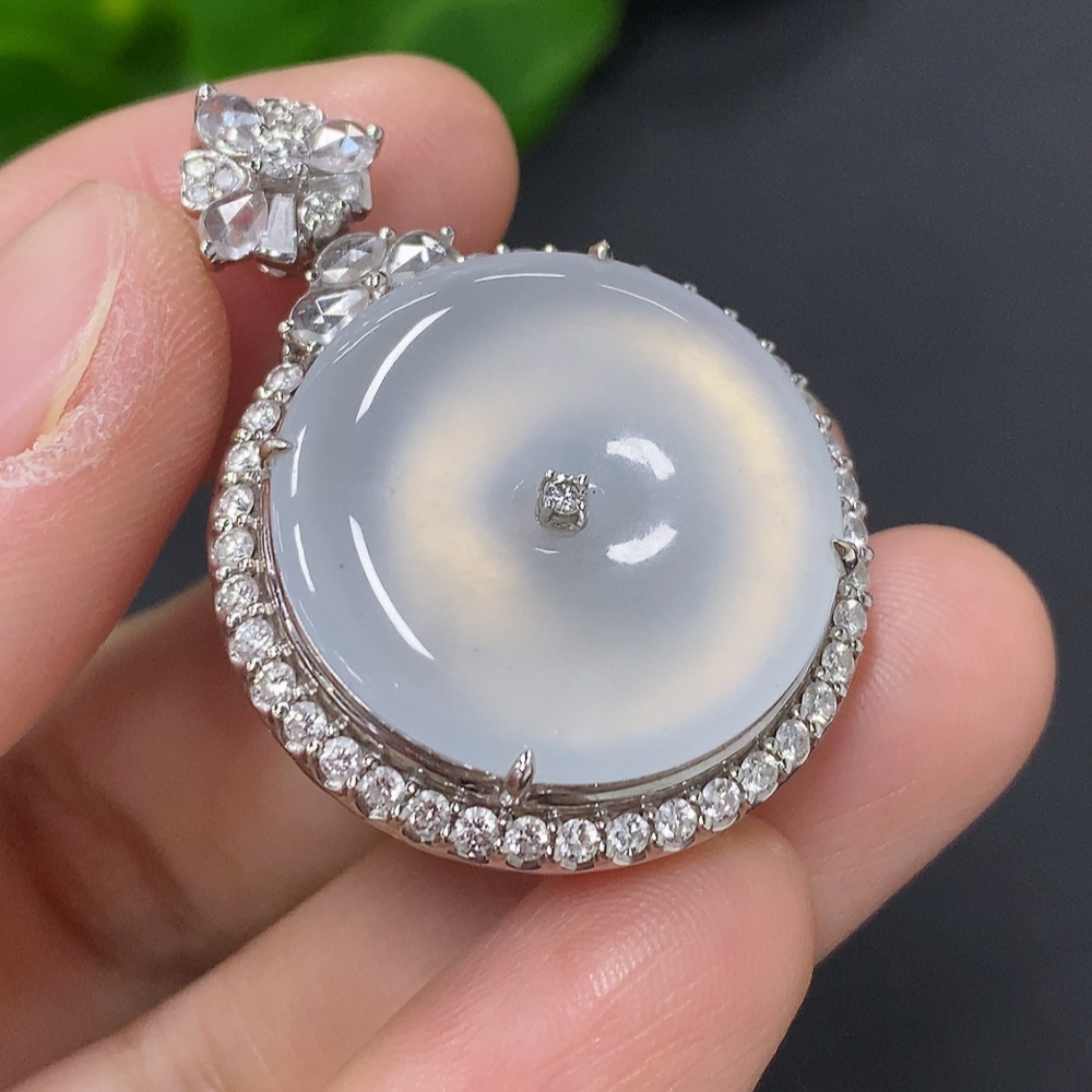 Jadeite Pendant with 18K Gold, Total Weight Approx. 11.7g (Accented with Diamonds, Non-diamond Quantity: Large 1pc)