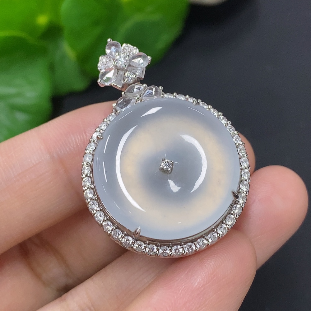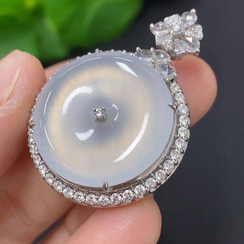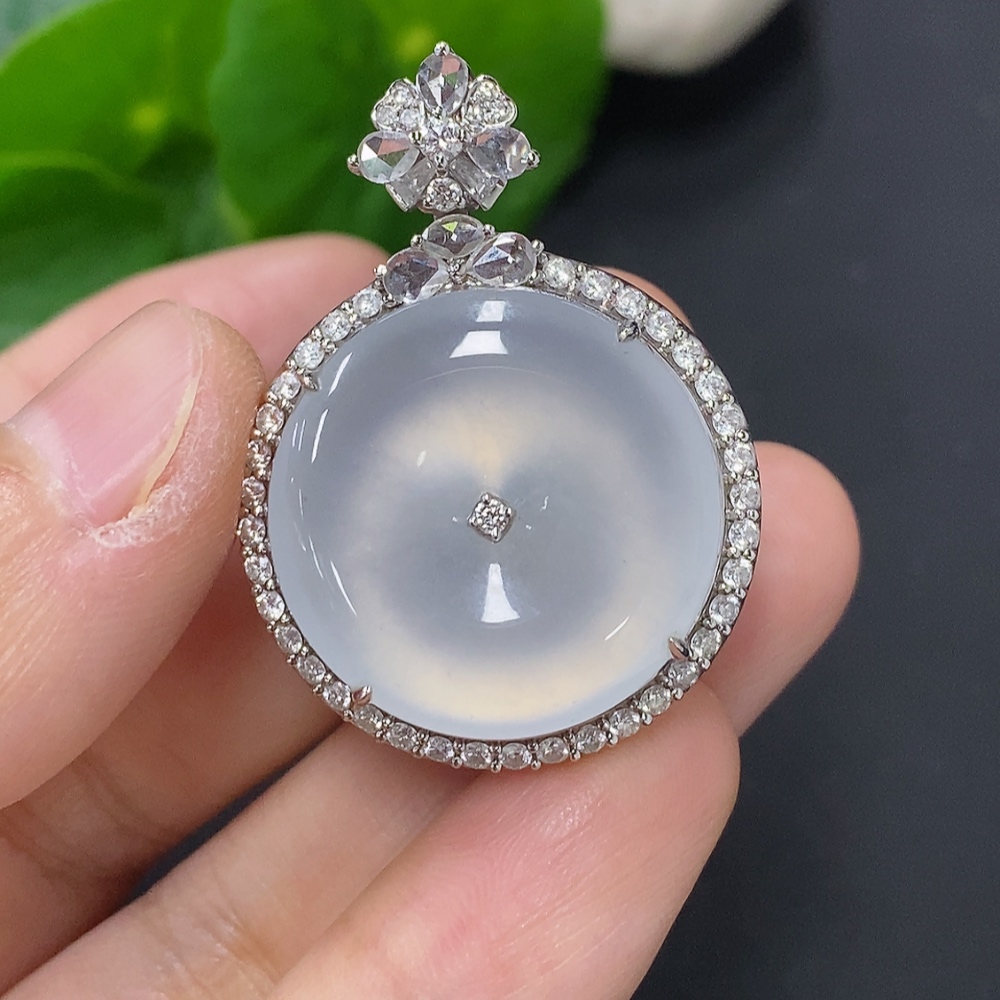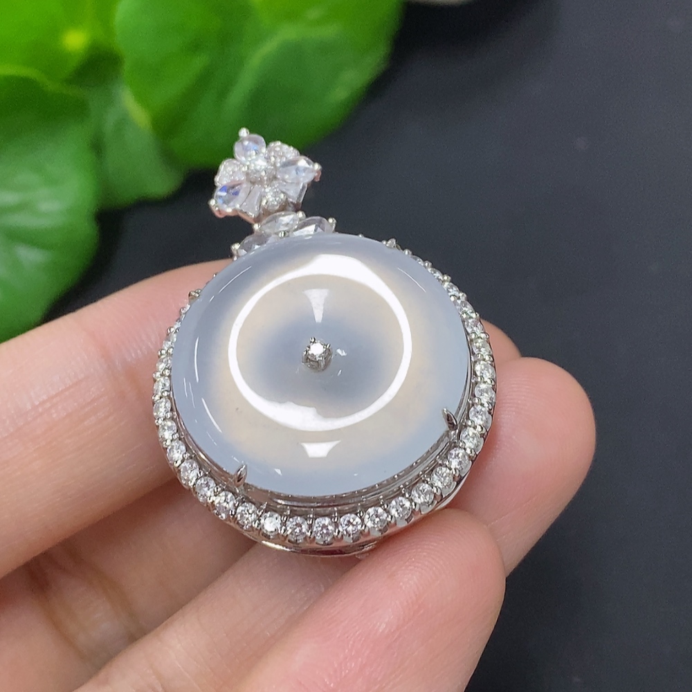 Jadeite Pendant with 18K Gold, Total Weight Approx. 11.7g (Accented with Diamonds, Non-diamond Quantity: Large 1pc)