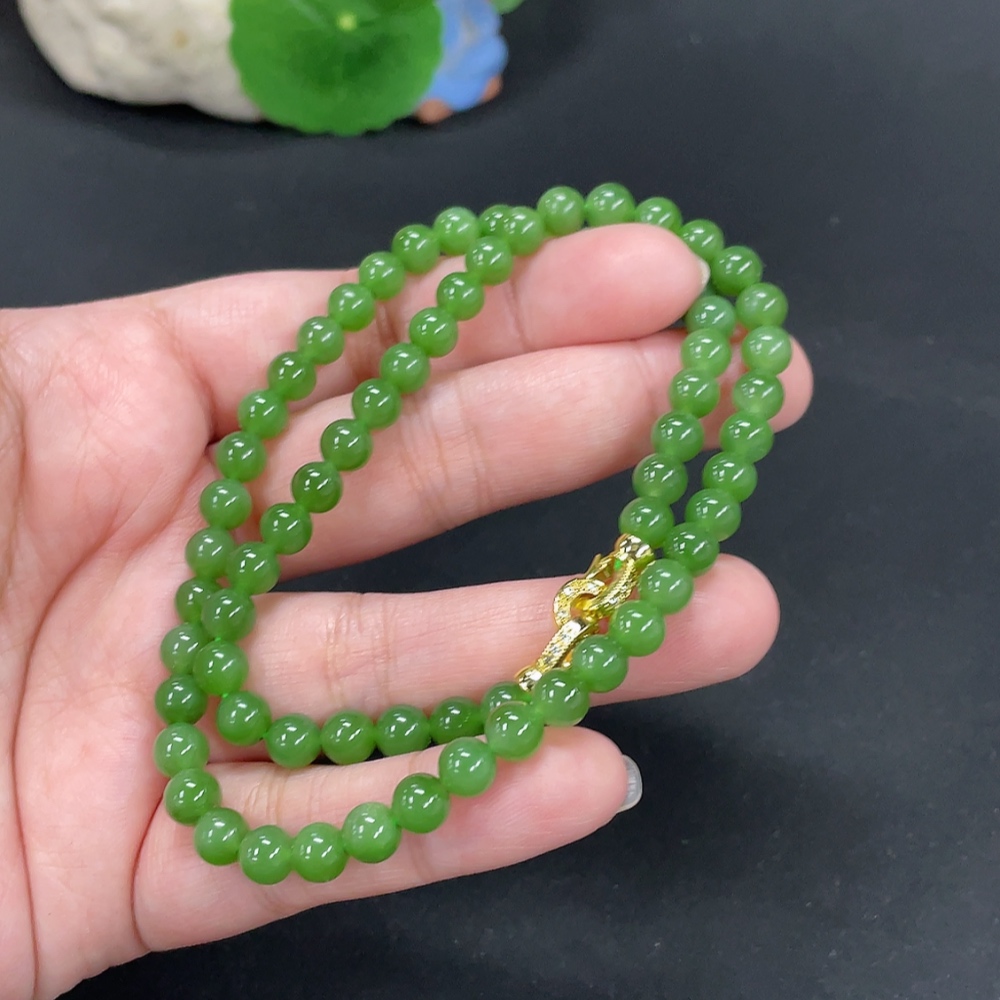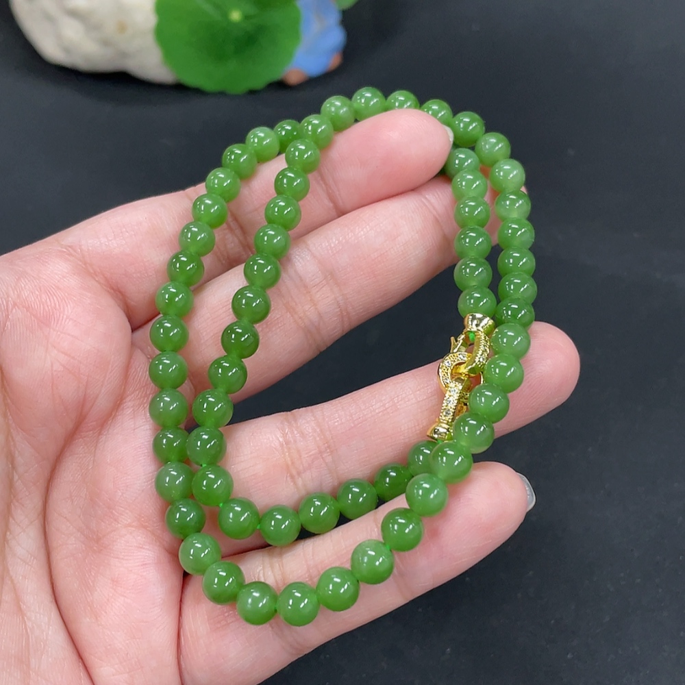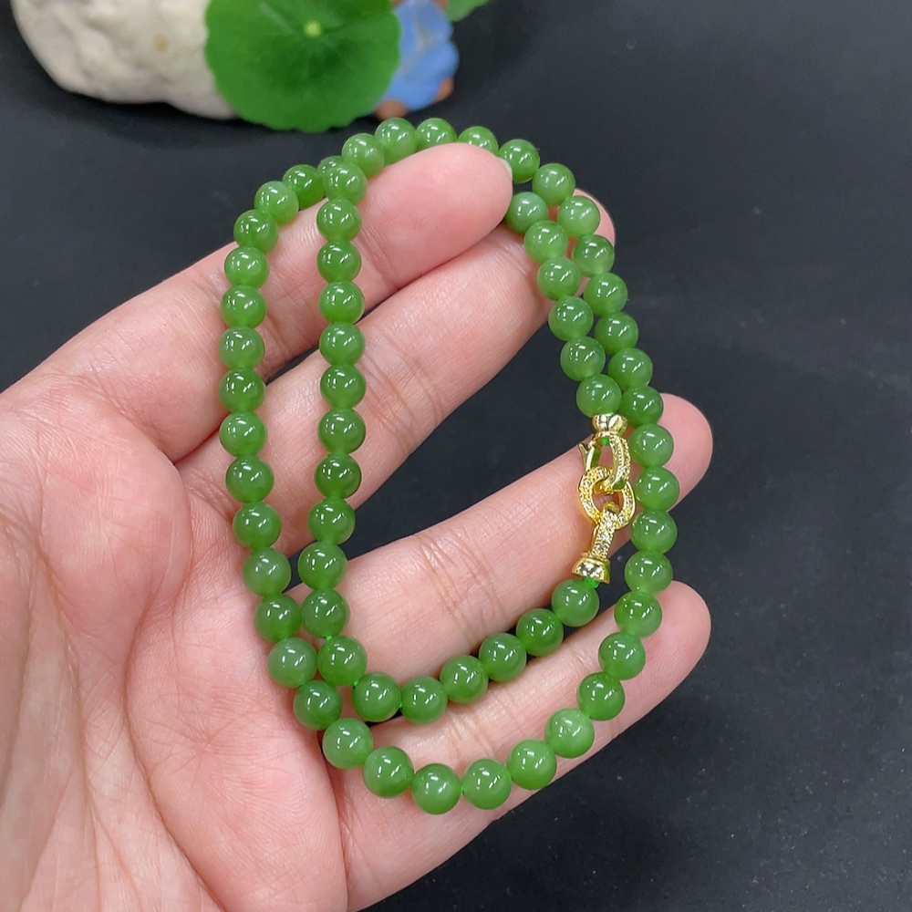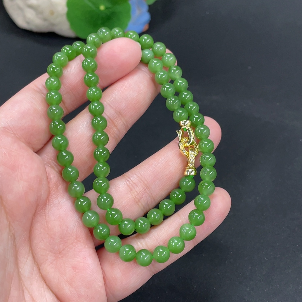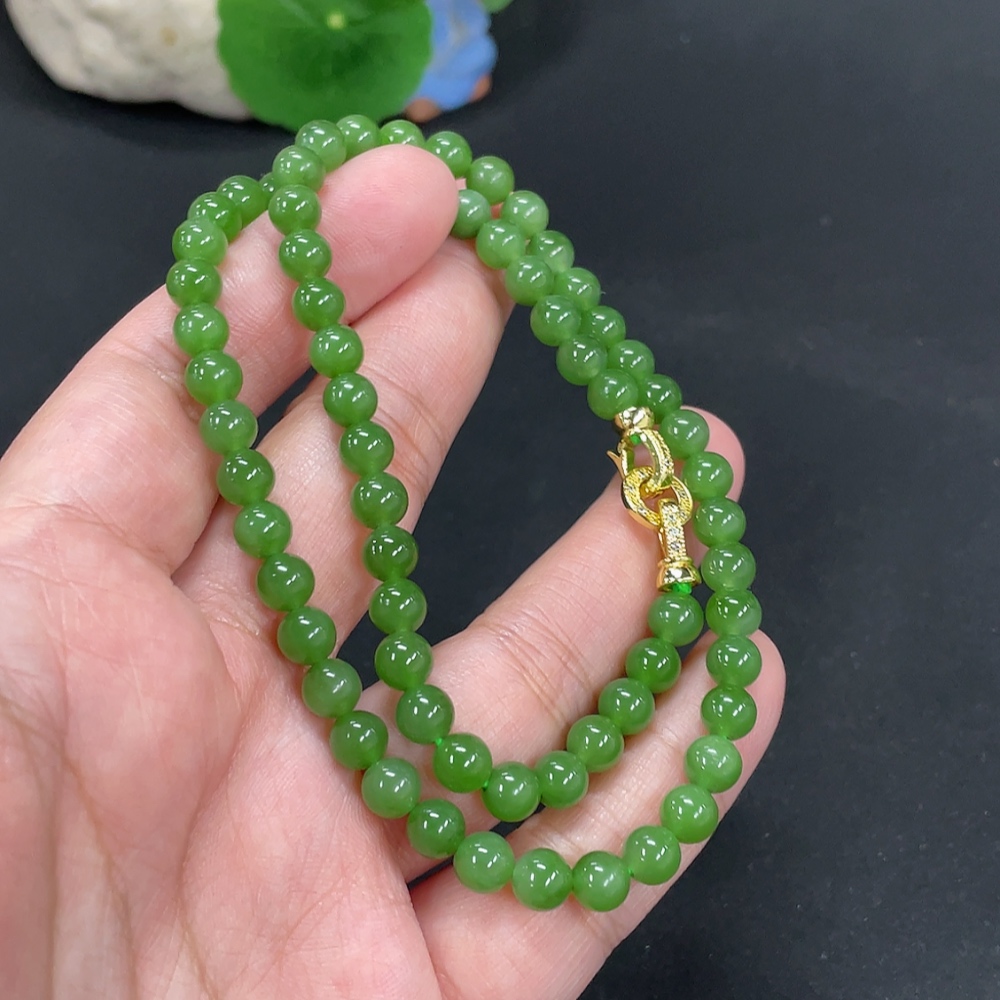 Hetian Jade Jasper Bead Necklace Approx. 5.8mm Total Weight About 24.7g Non-Gold